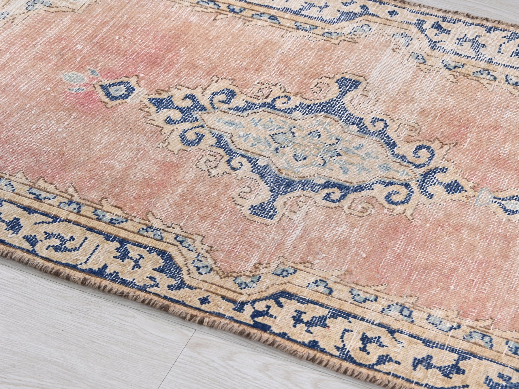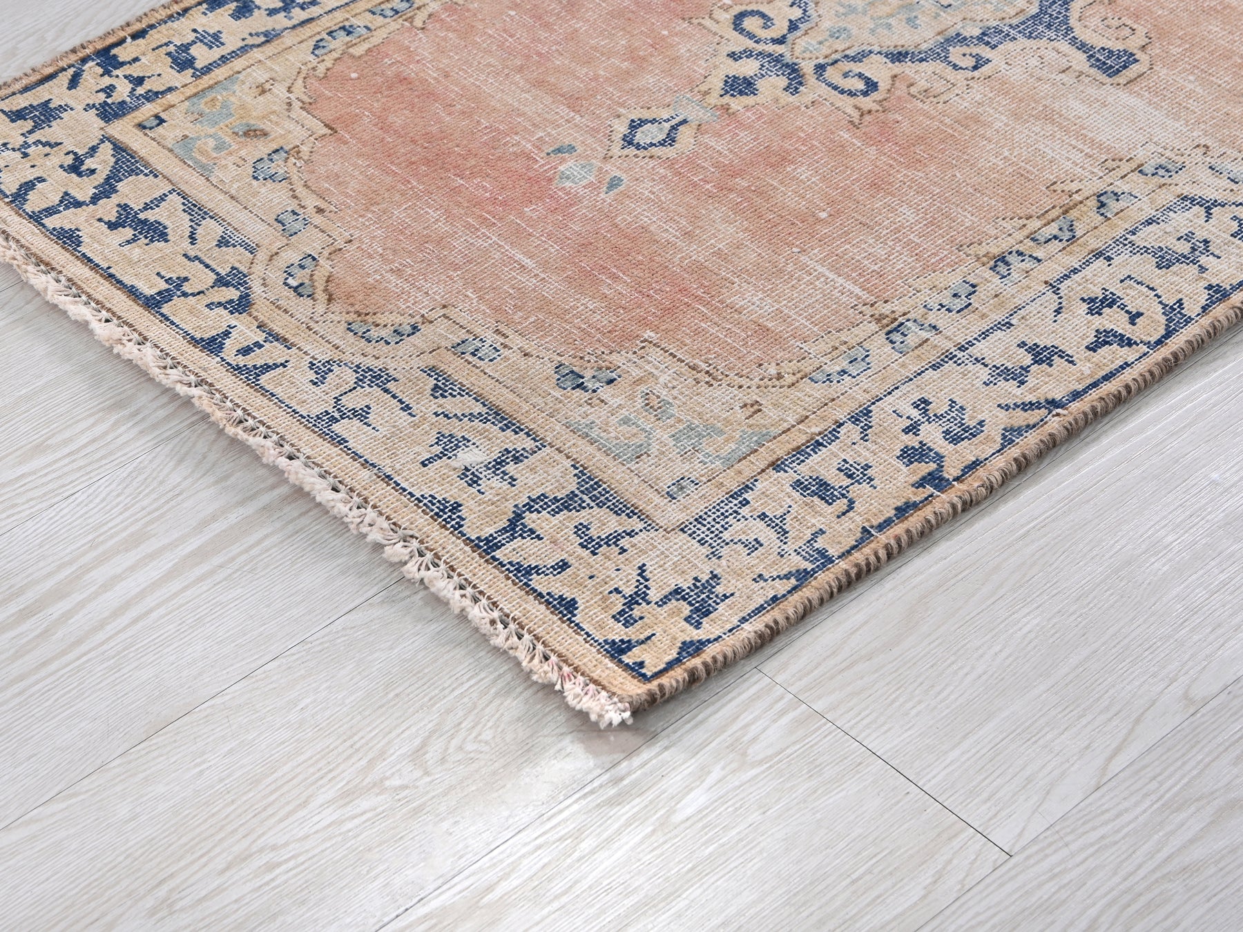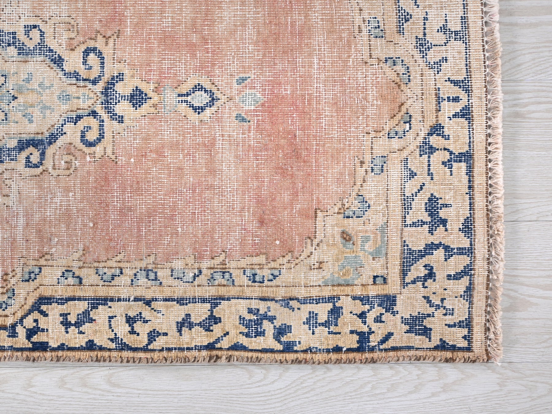 This is a hand-knotted, one-of-a-kind vintage rug. Due to the nature of this piece, there may be slight imperfections in its wear, shape, dimensions, and color. All of our rugs are professionally cleaned and repaired.