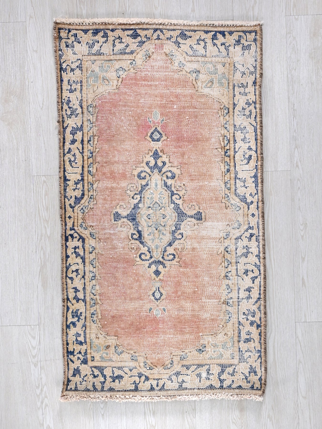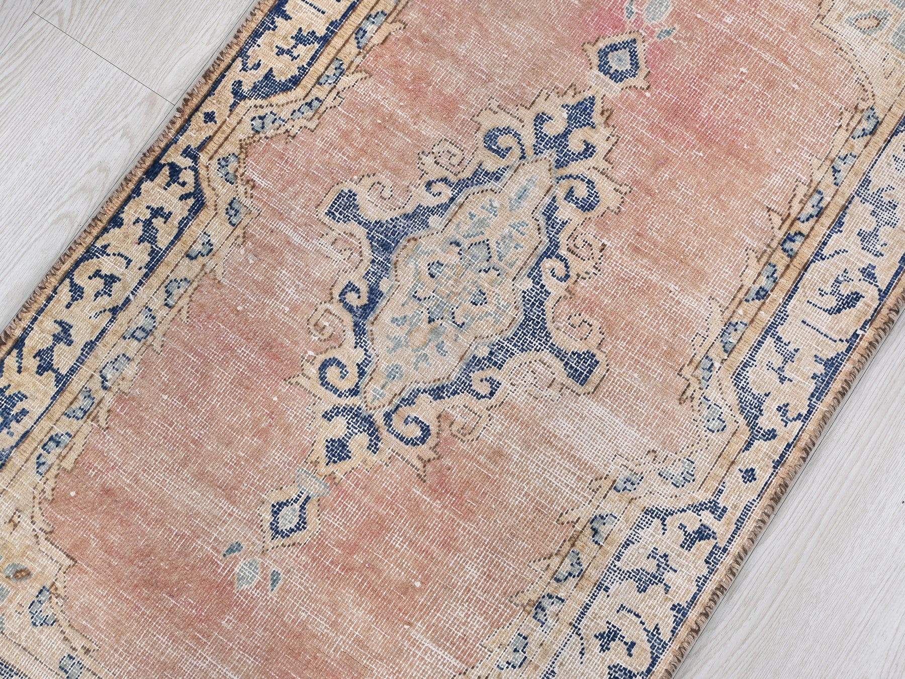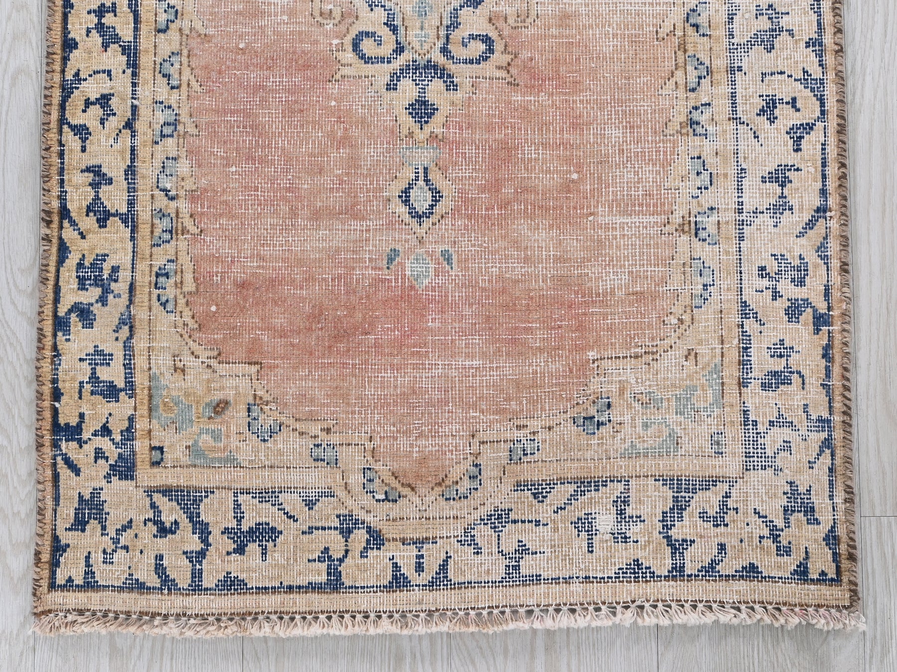 This is a hand-knotted, one-of-a-kind vintage rug. Due to the nature of this piece, there may be slight imperfections in its wear, shape, dimensions, and color. All of our rugs are professionally cleaned and repaired.