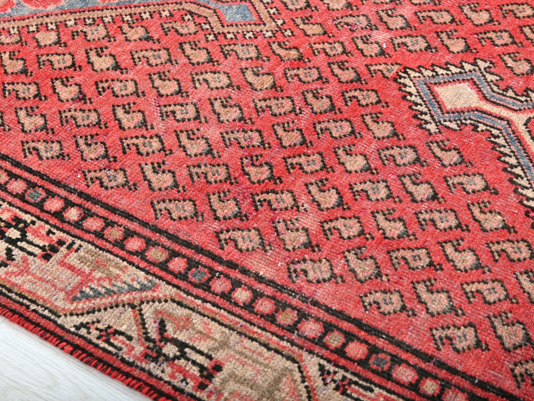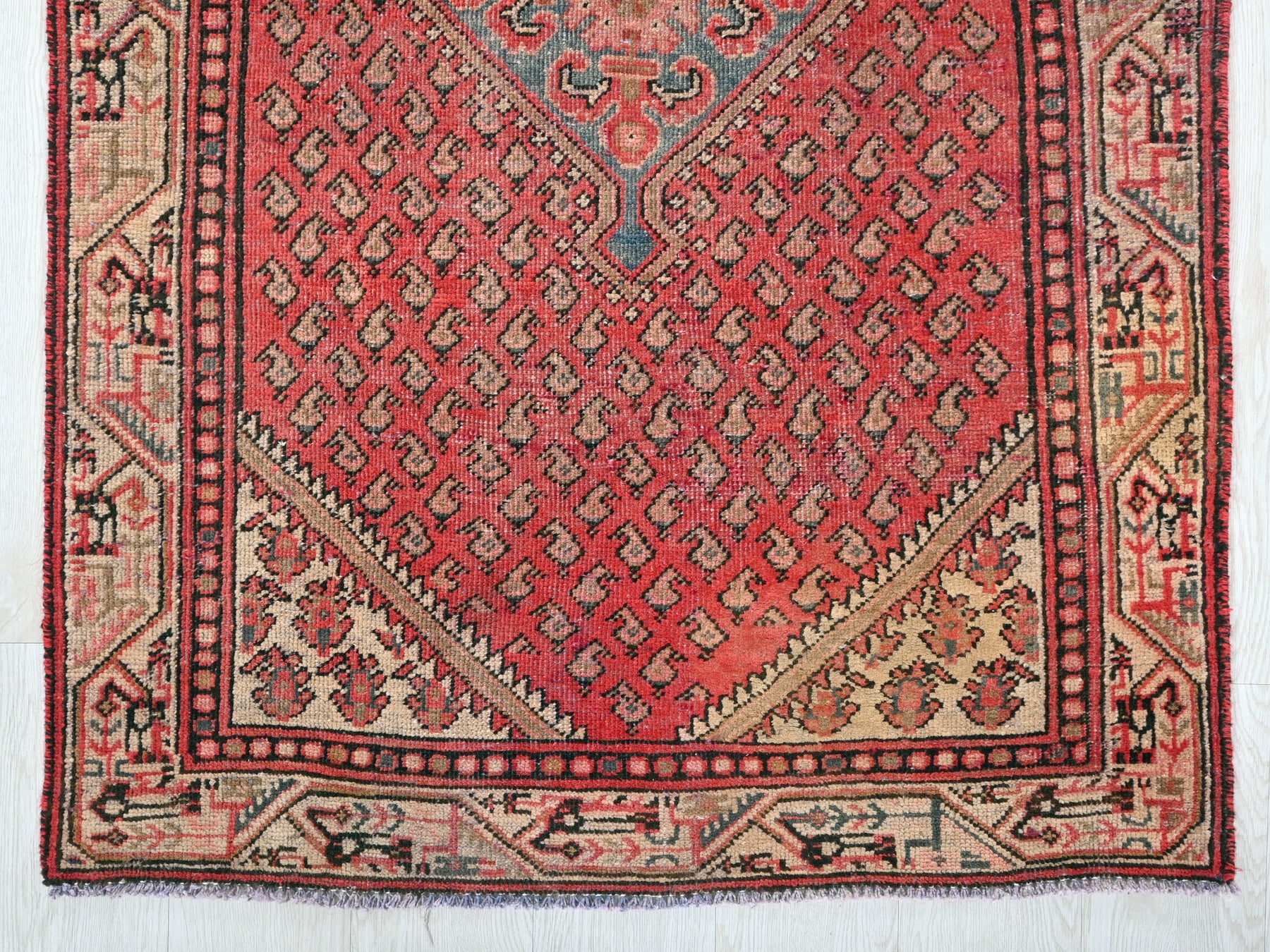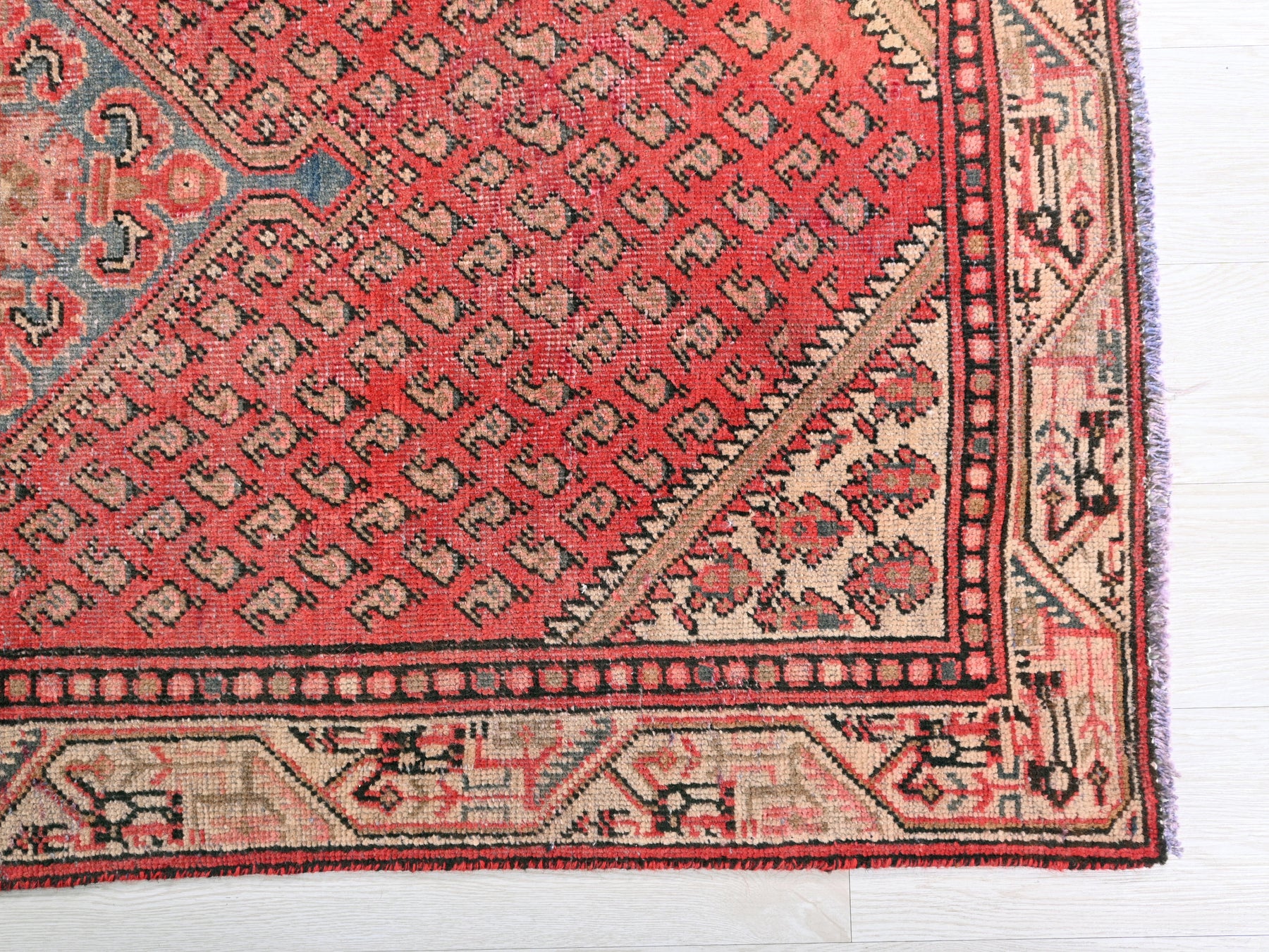 This is a hand-knotted, one-of-a-kind vintage rug. Due to the nature of this piece, there may be slight imperfections in its wear, shape, dimensions, and color. All of our rugs are professionally cleaned and repaired.