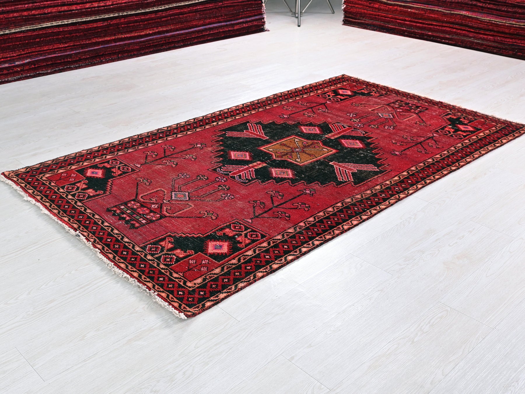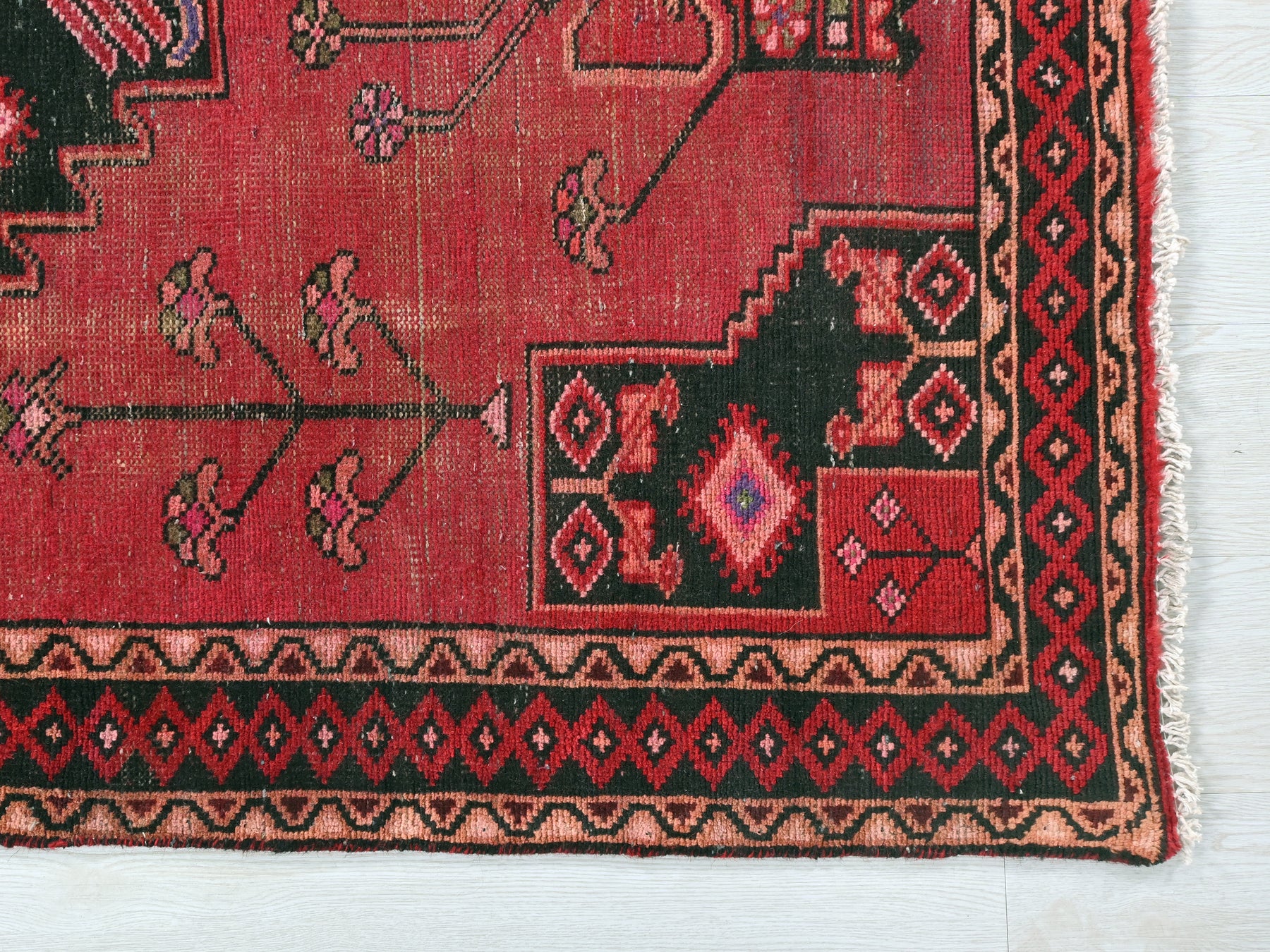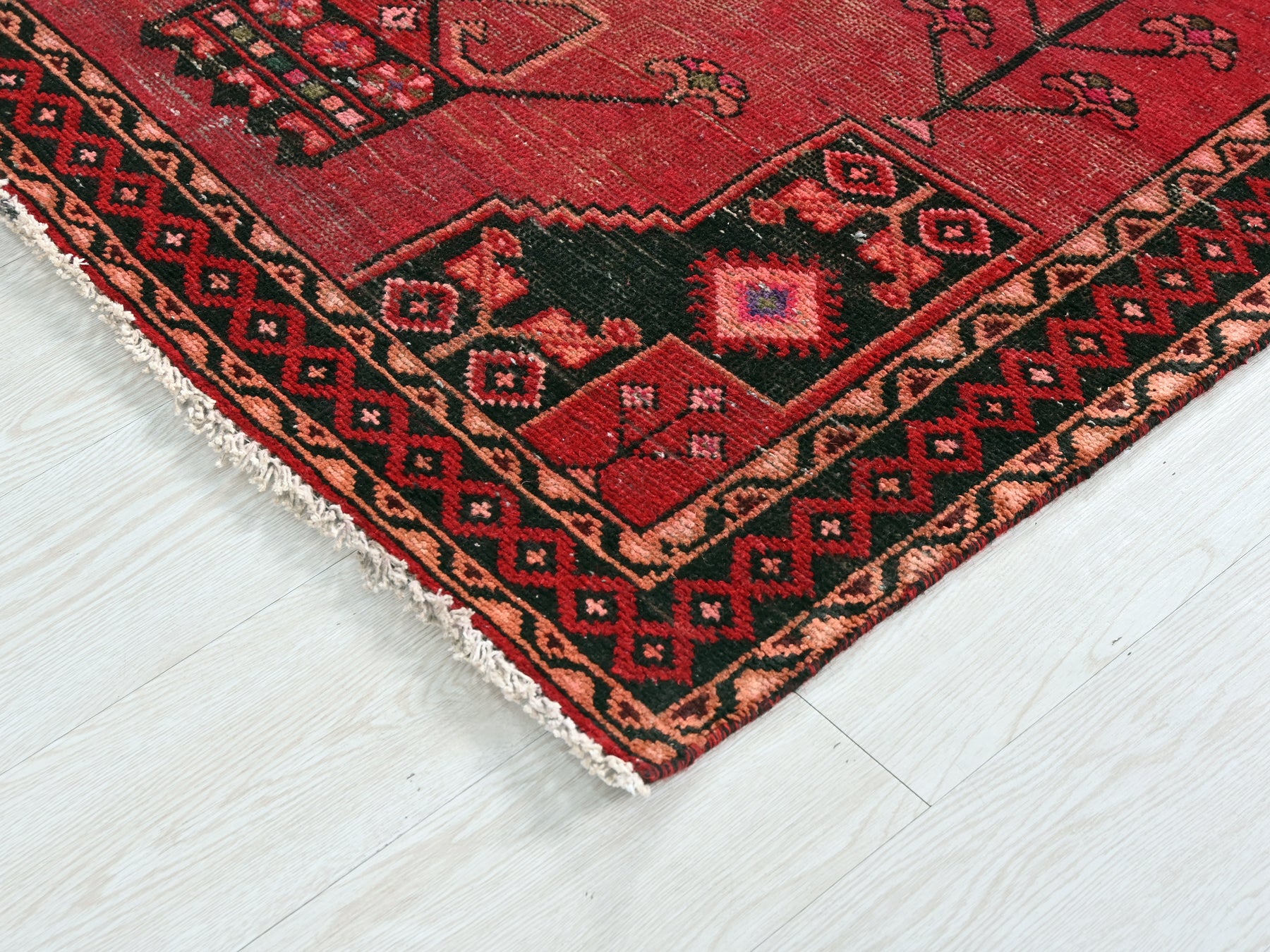 This is a hand-knotted, one-of-a-kind vintage rug. Due to the nature of this piece, there may be slight imperfections in its wear, shape, dimensions, and color. All of our rugs are professionally cleaned and repaired.