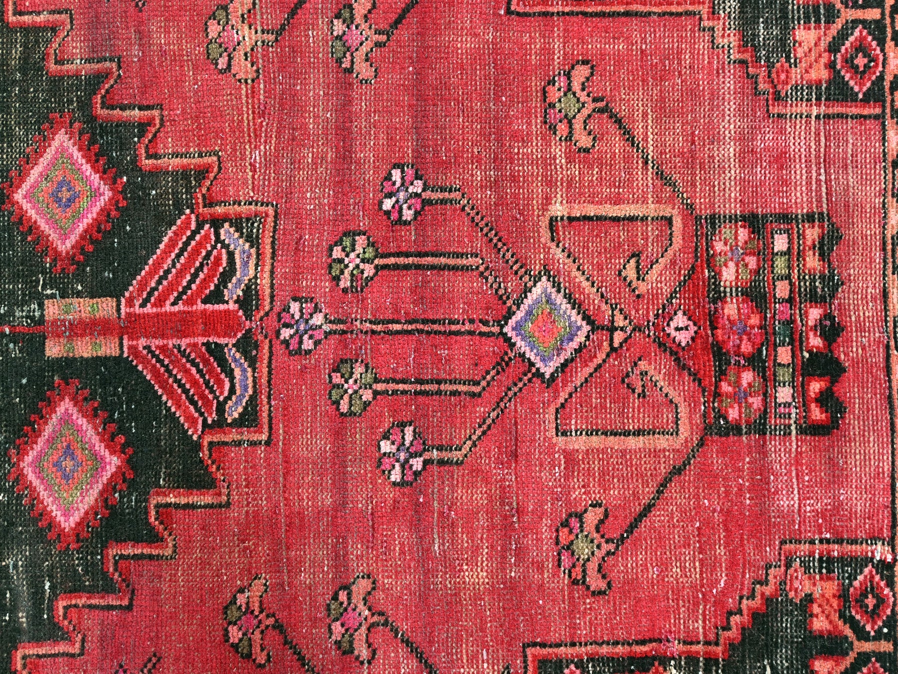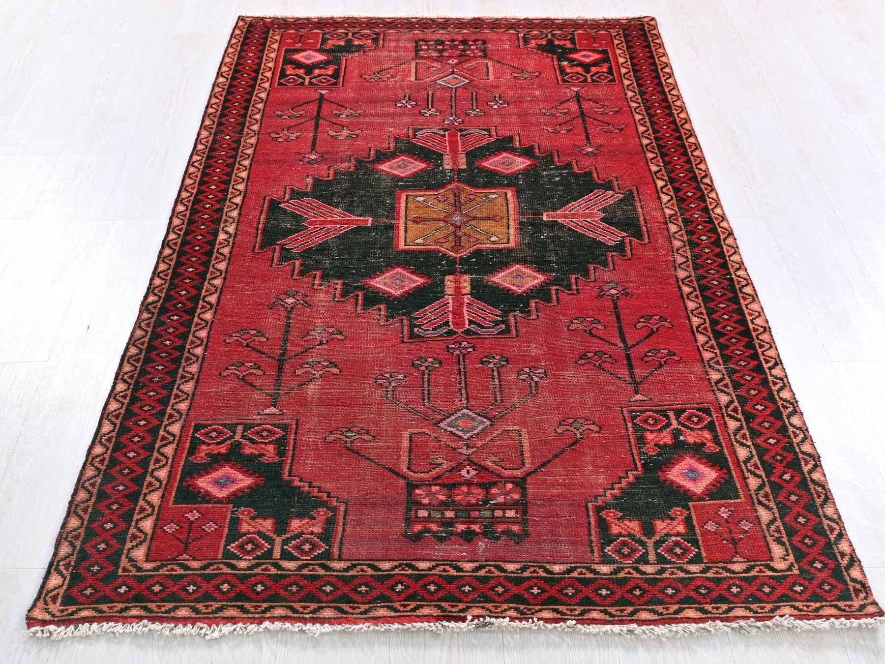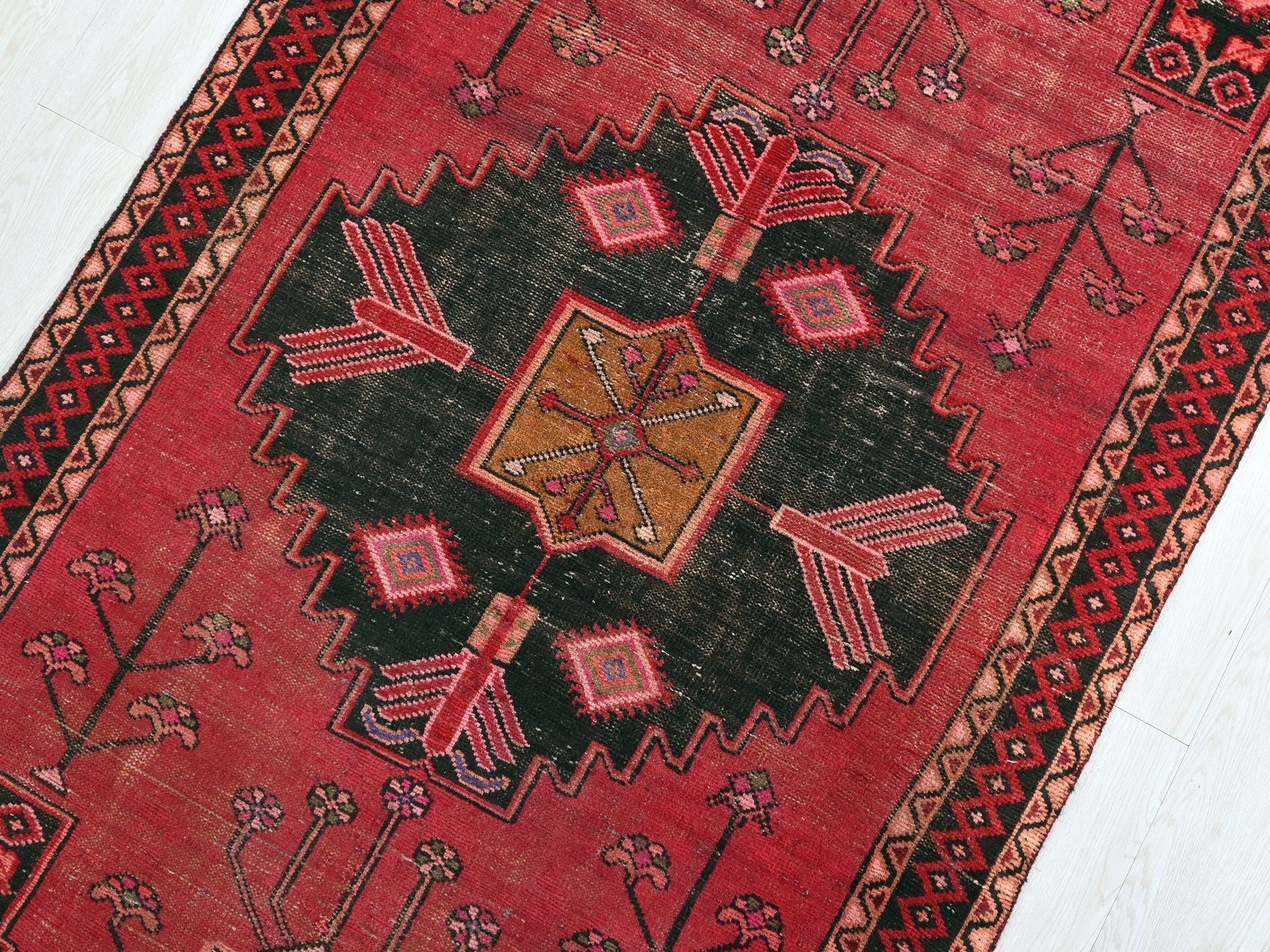 This is a hand-knotted, one-of-a-kind vintage rug. Due to the nature of this piece, there may be slight imperfections in its wear, shape, dimensions, and color. All of our rugs are professionally cleaned and repaired.