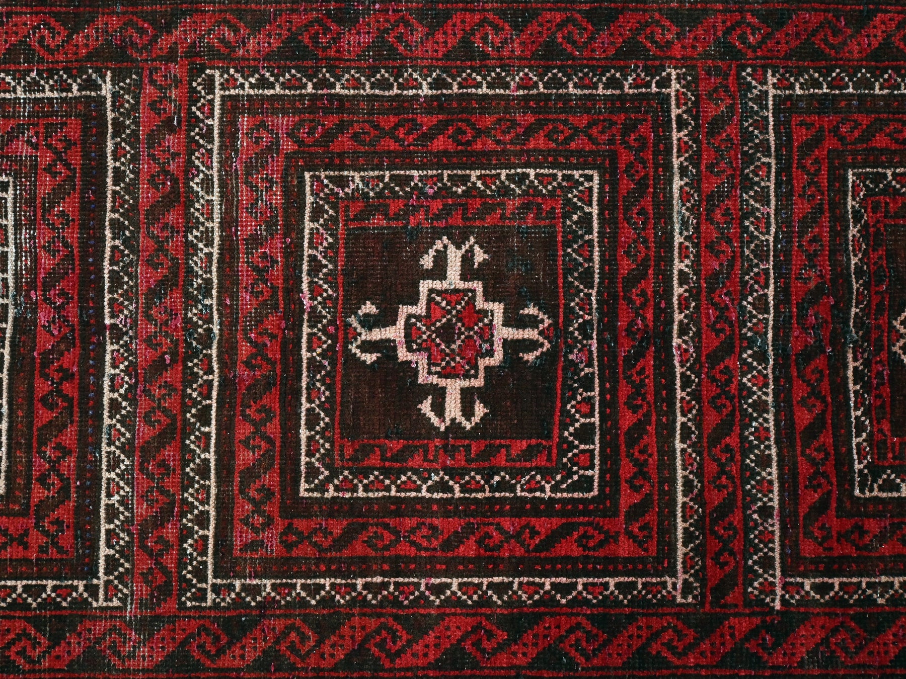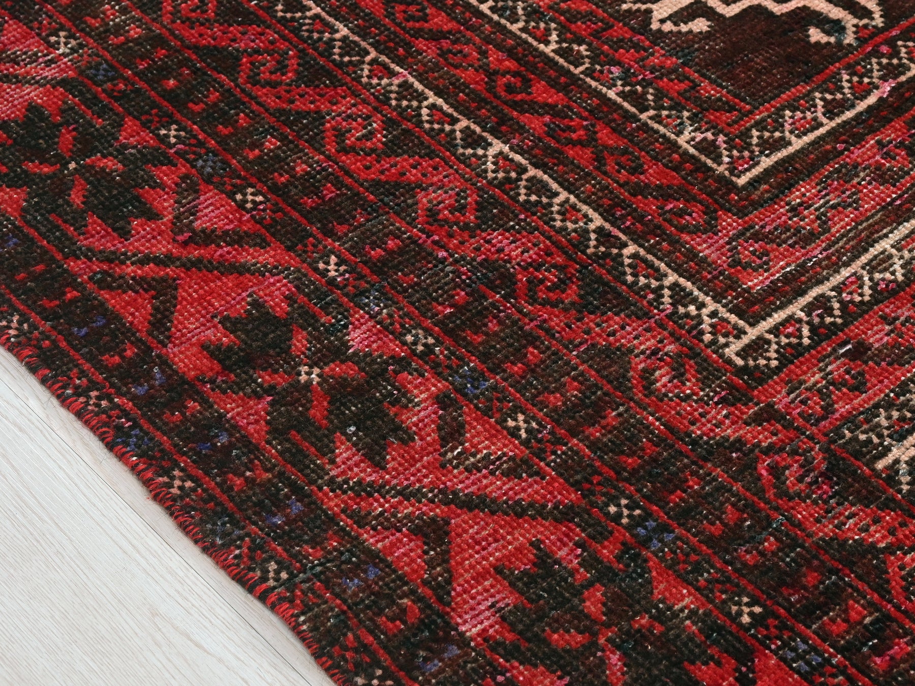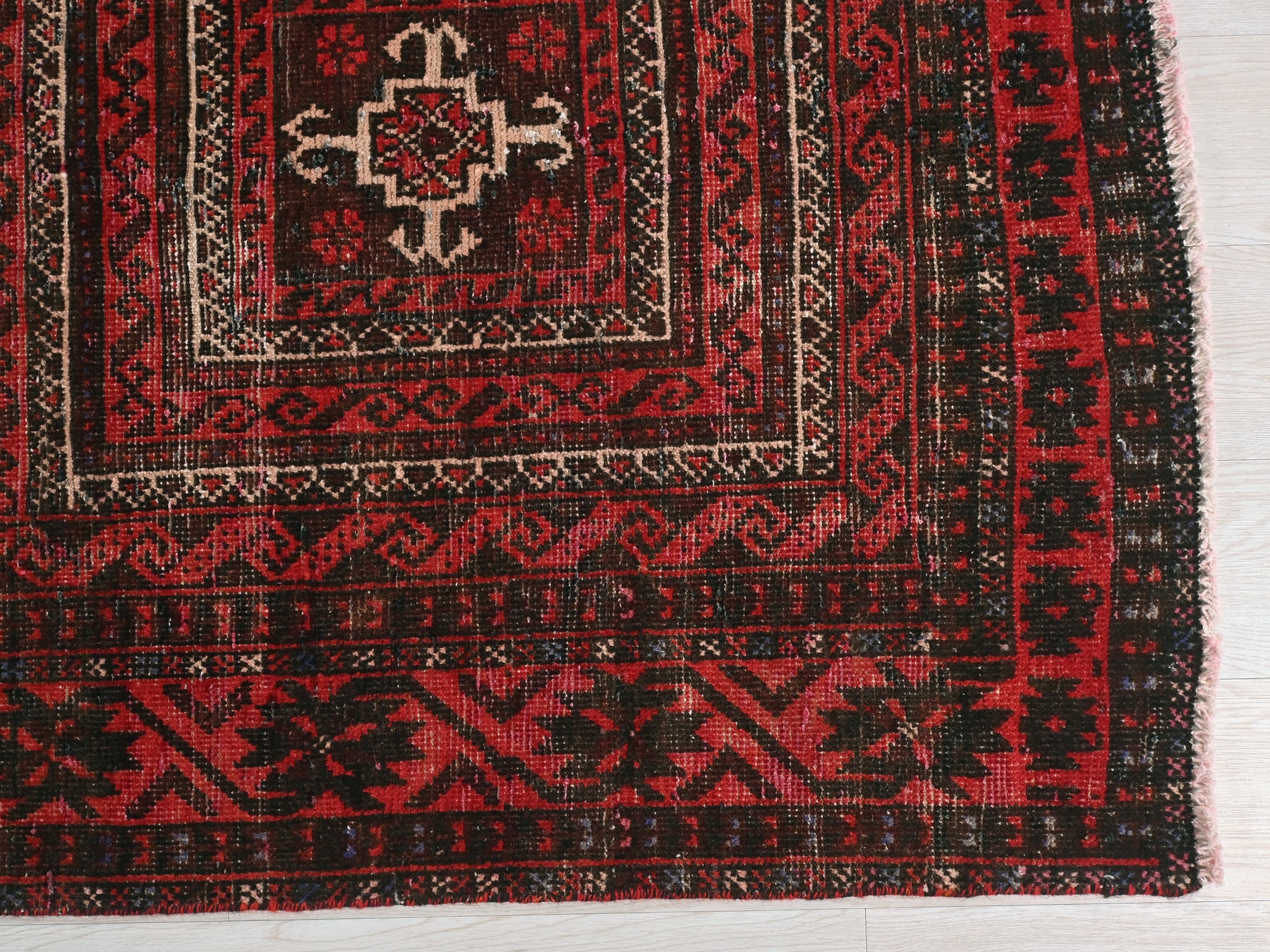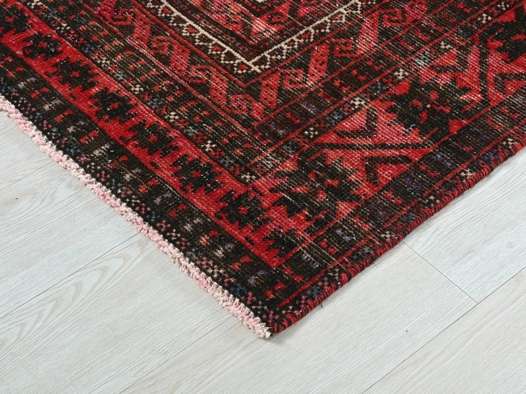 This is a hand-knotted, one-of-a-kind vintage rug. Due to the nature of this piece, there may be slight imperfections in its wear, shape, dimensions, and color. All of our rugs are professionally cleaned and repaired.