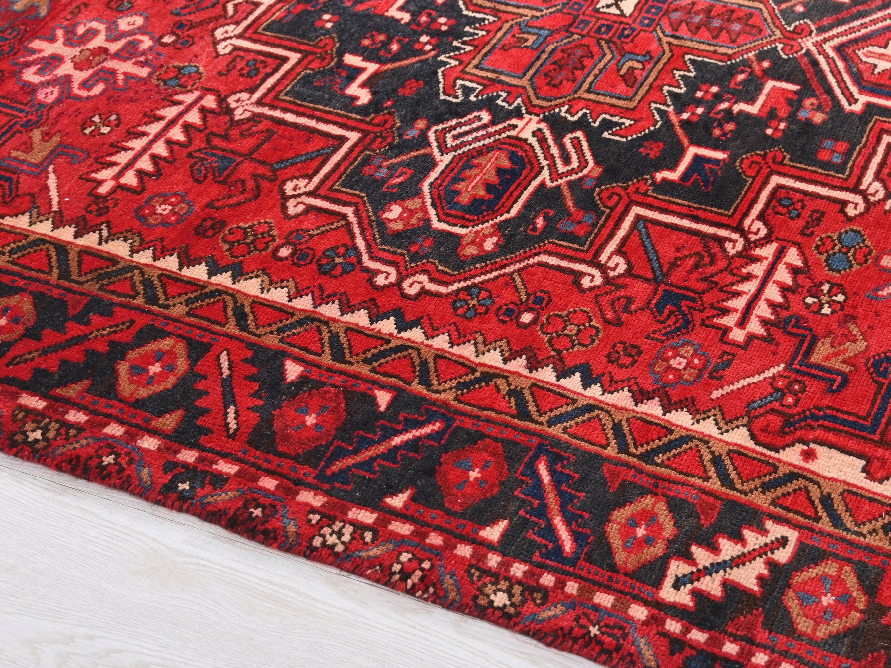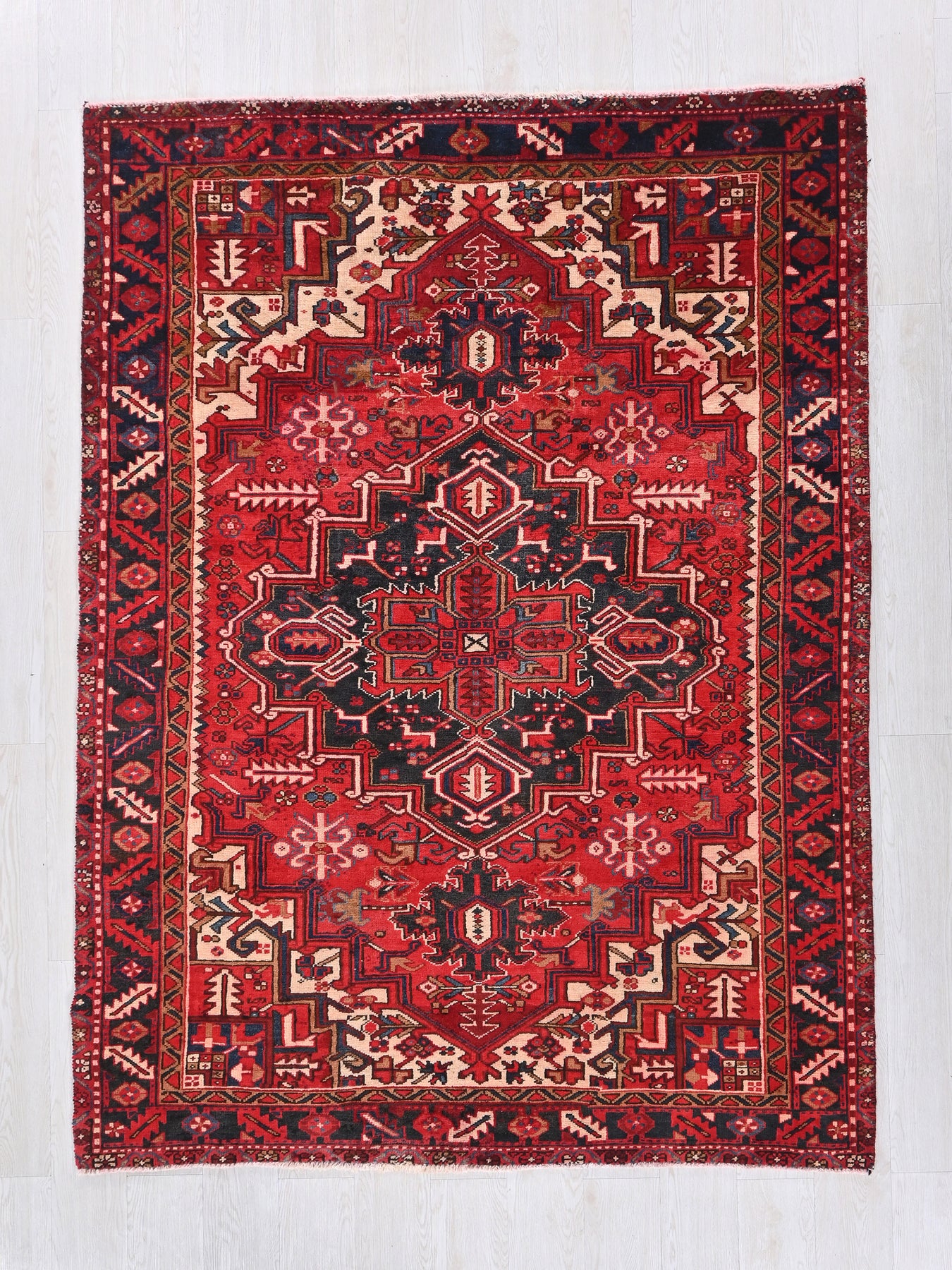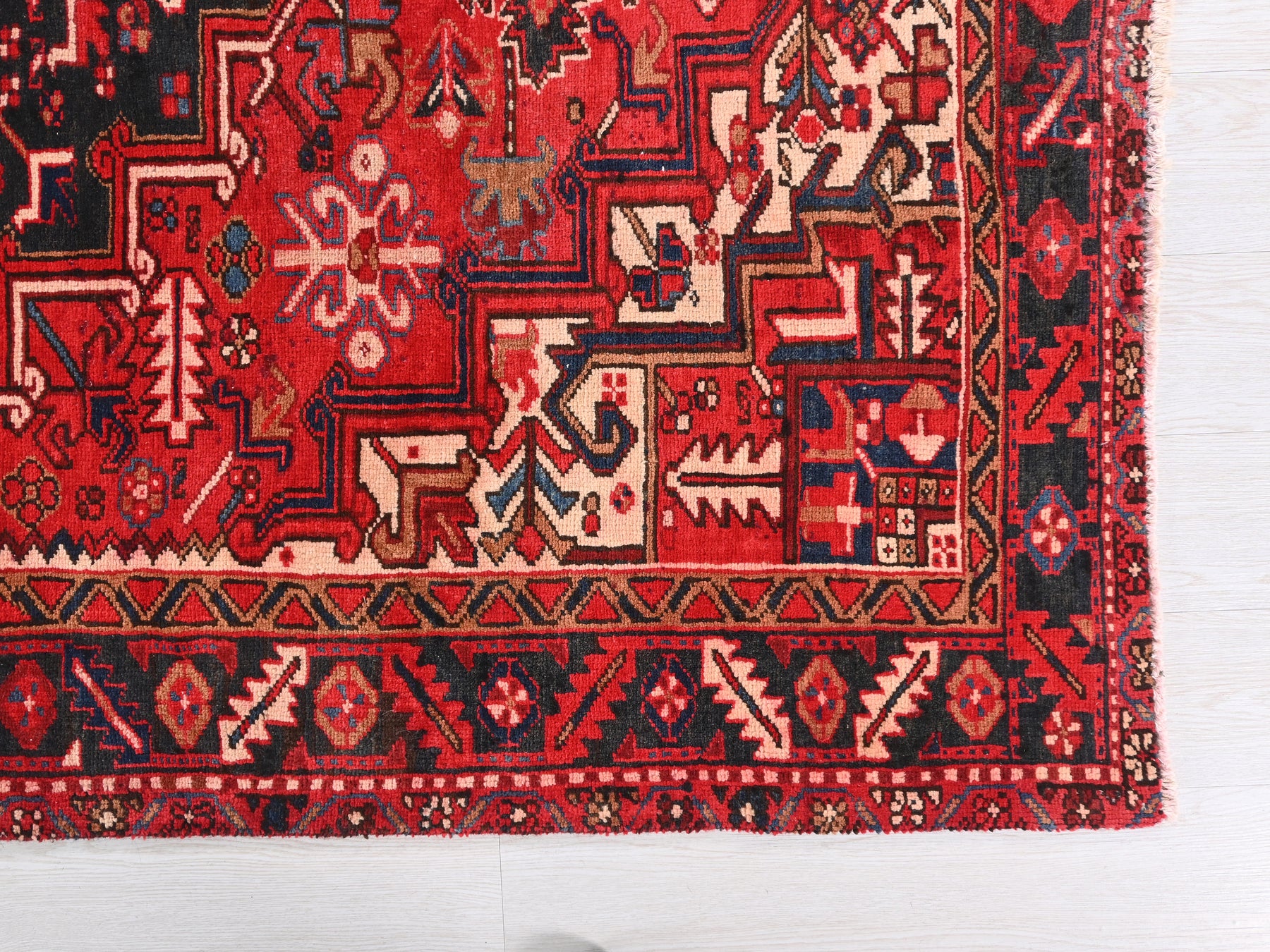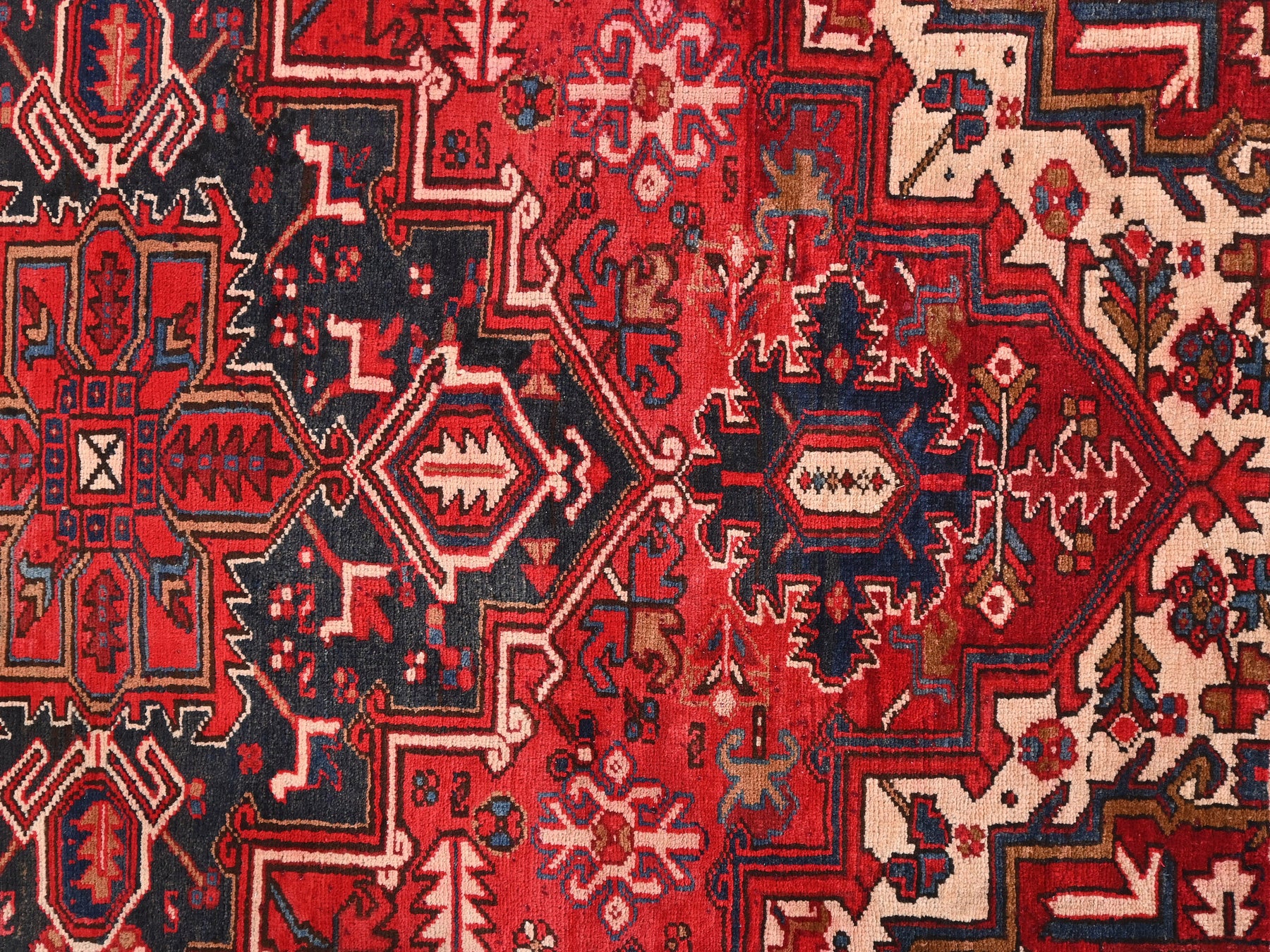 This is a hand-knotted, one-of-a-kind vintage rug. Due to the nature of this piece, there may be slight imperfections in its wear, shape, dimensions, and color. All of our rugs are professionally cleaned and repaired.