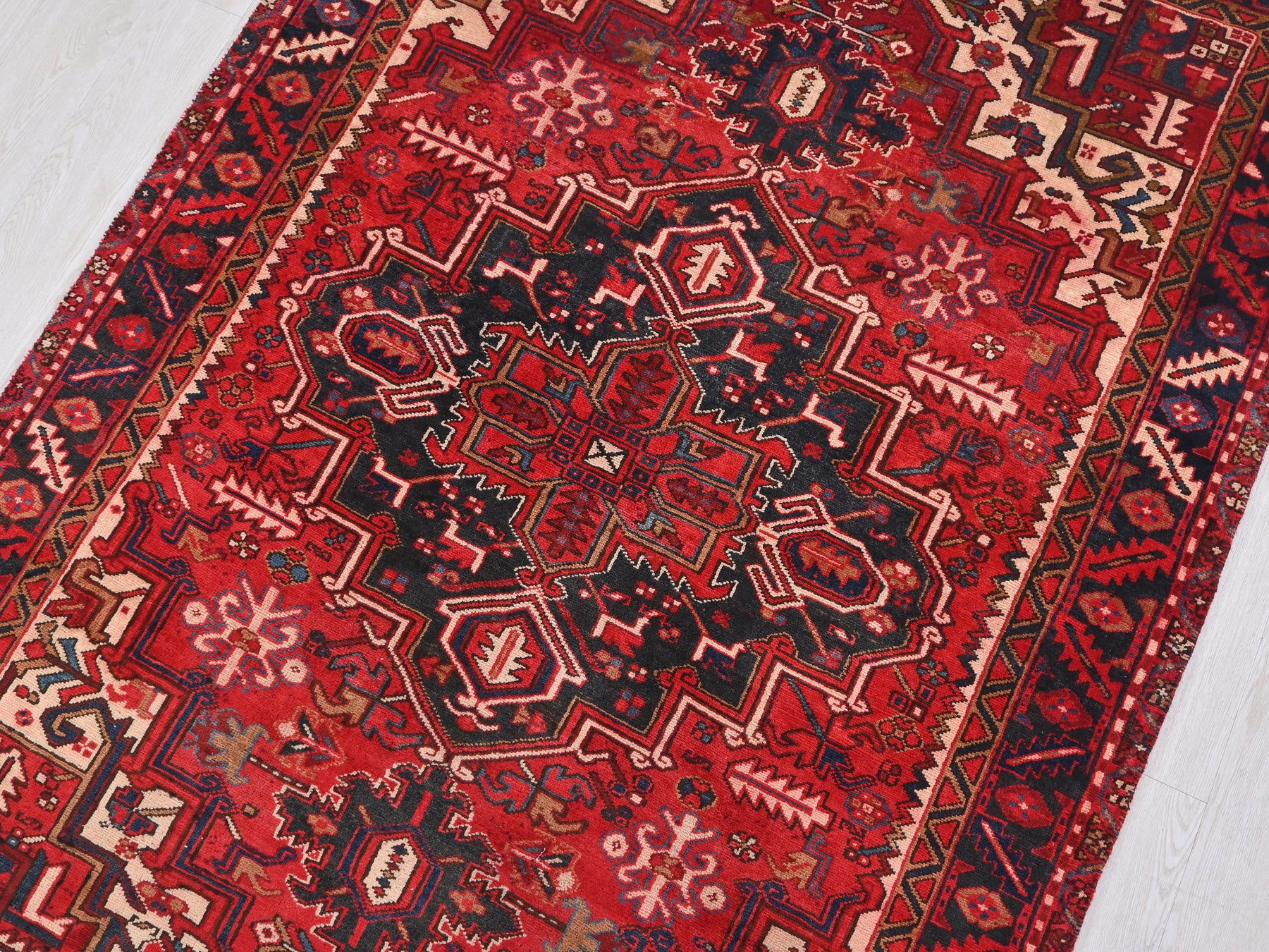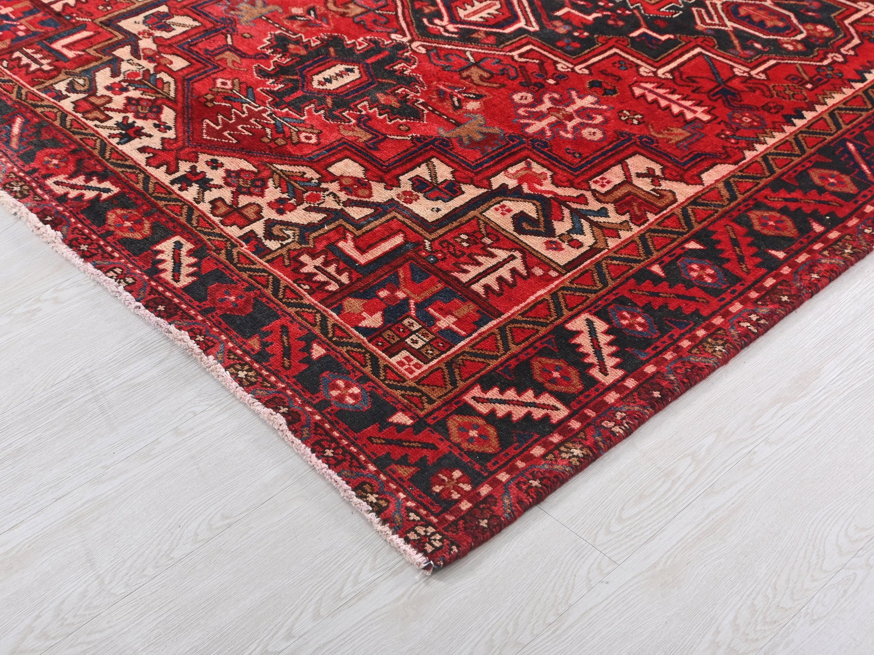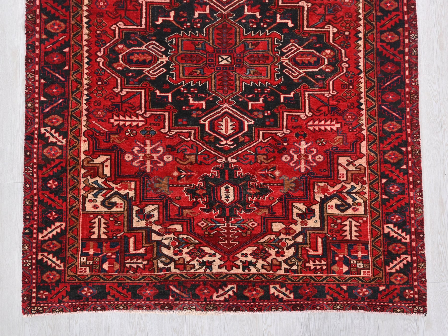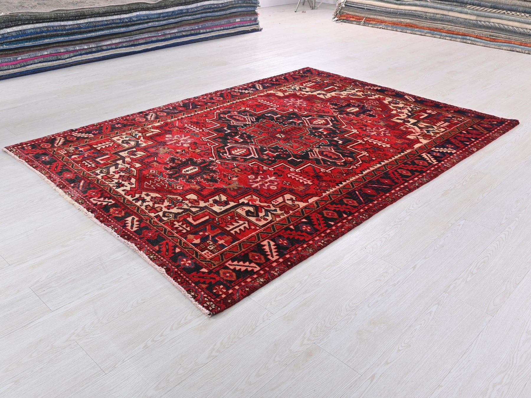 This is a hand-knotted, one-of-a-kind vintage rug. Due to the nature of this piece, there may be slight imperfections in its wear, shape, dimensions, and color. All of our rugs are professionally cleaned and repaired.