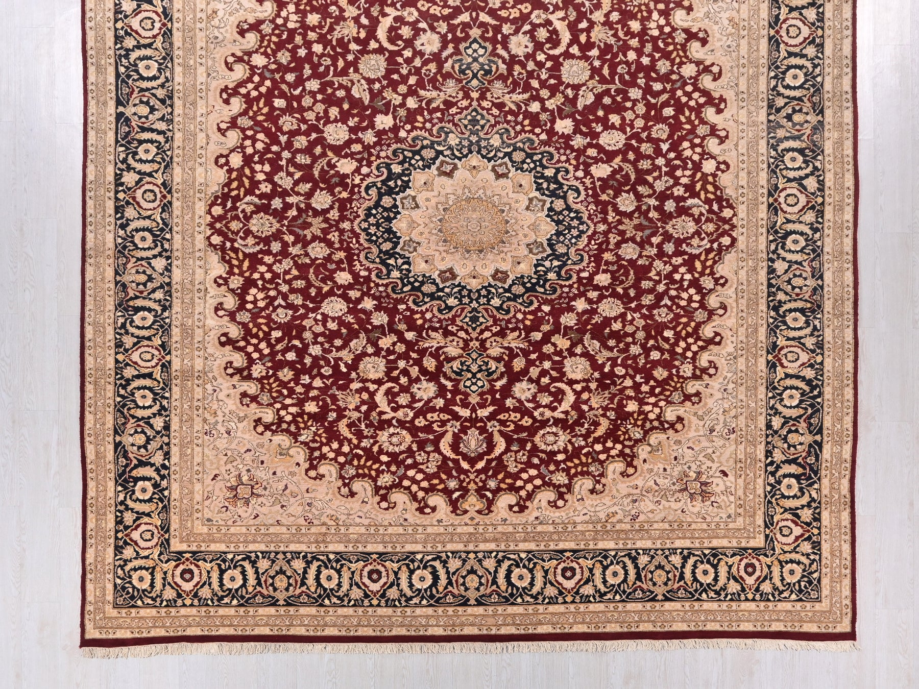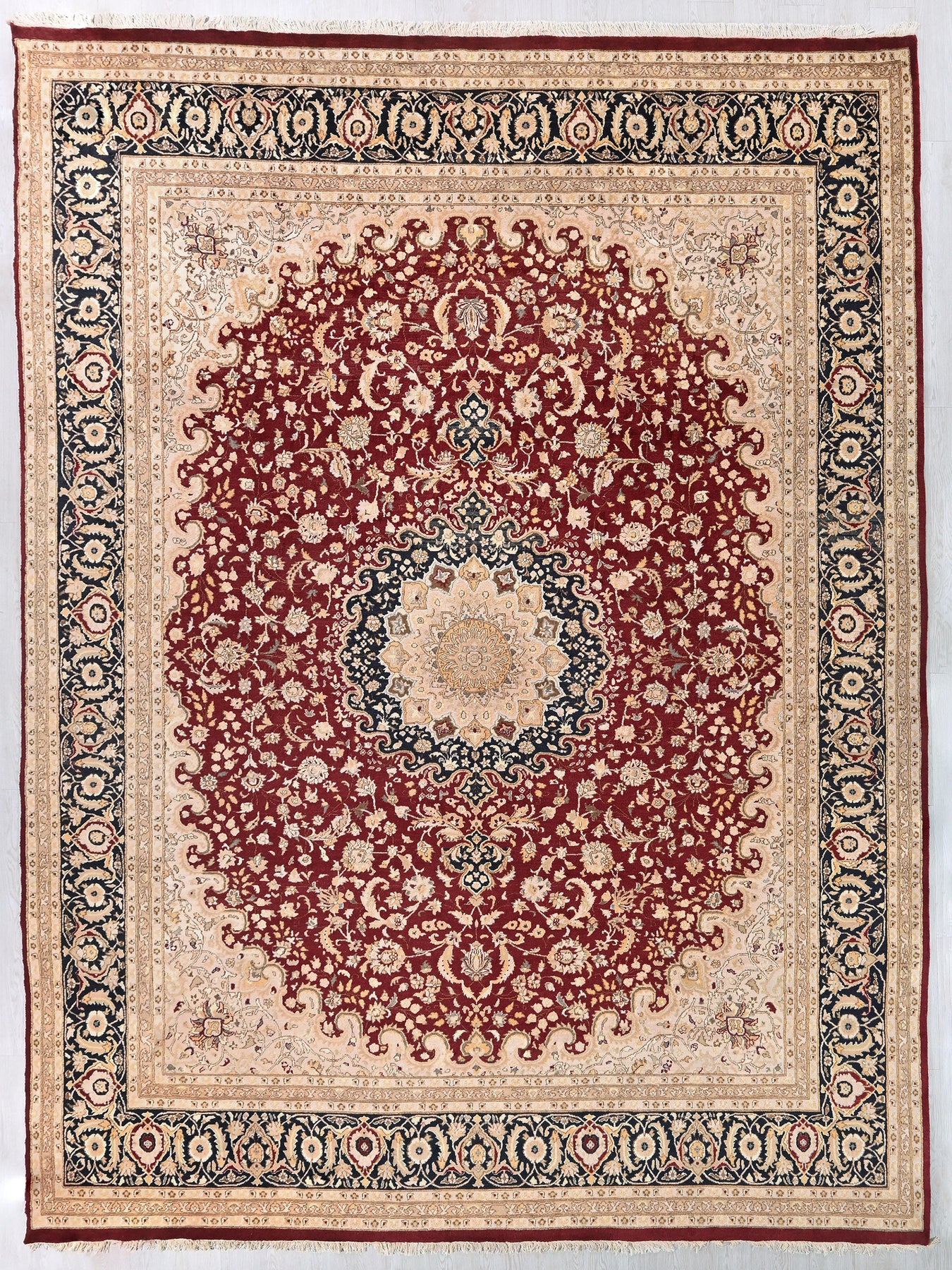This is a hand-knotted, one-of-a-kind vintage rug. Due to the nature of this piece, there may be slight imperfections in its wear, shape, dimensions, and color. All of our rugs are professionally cleaned and repaired.