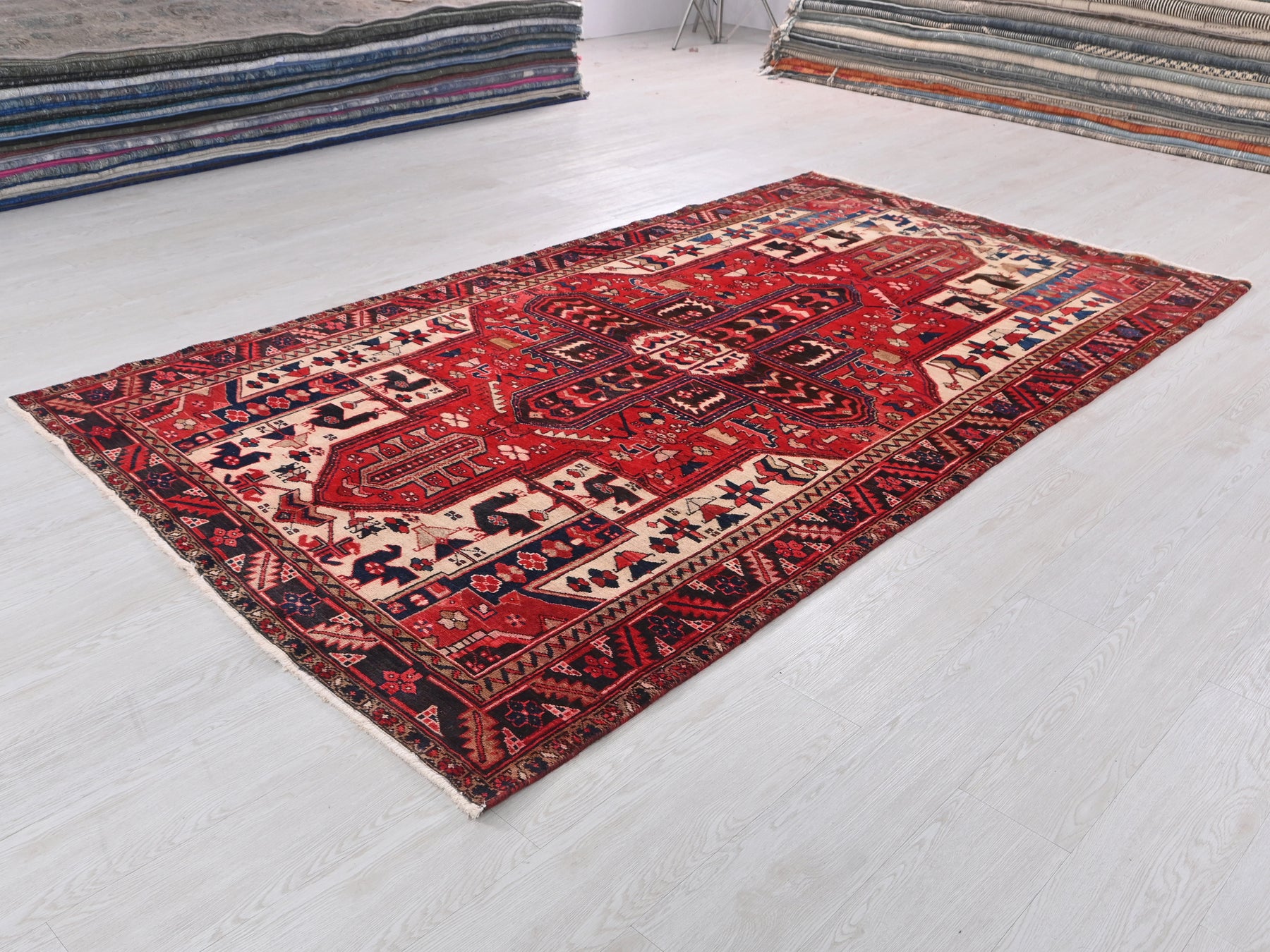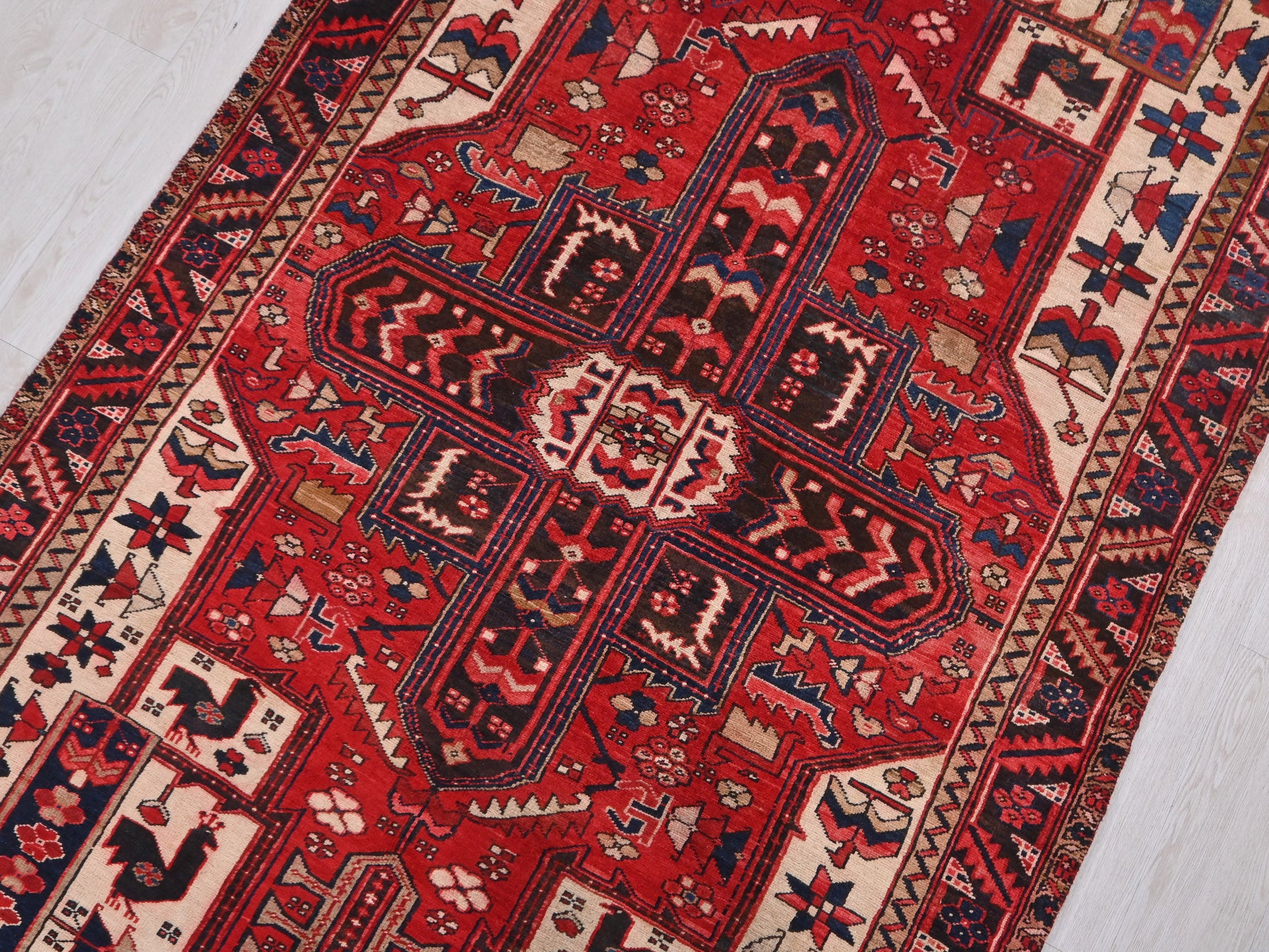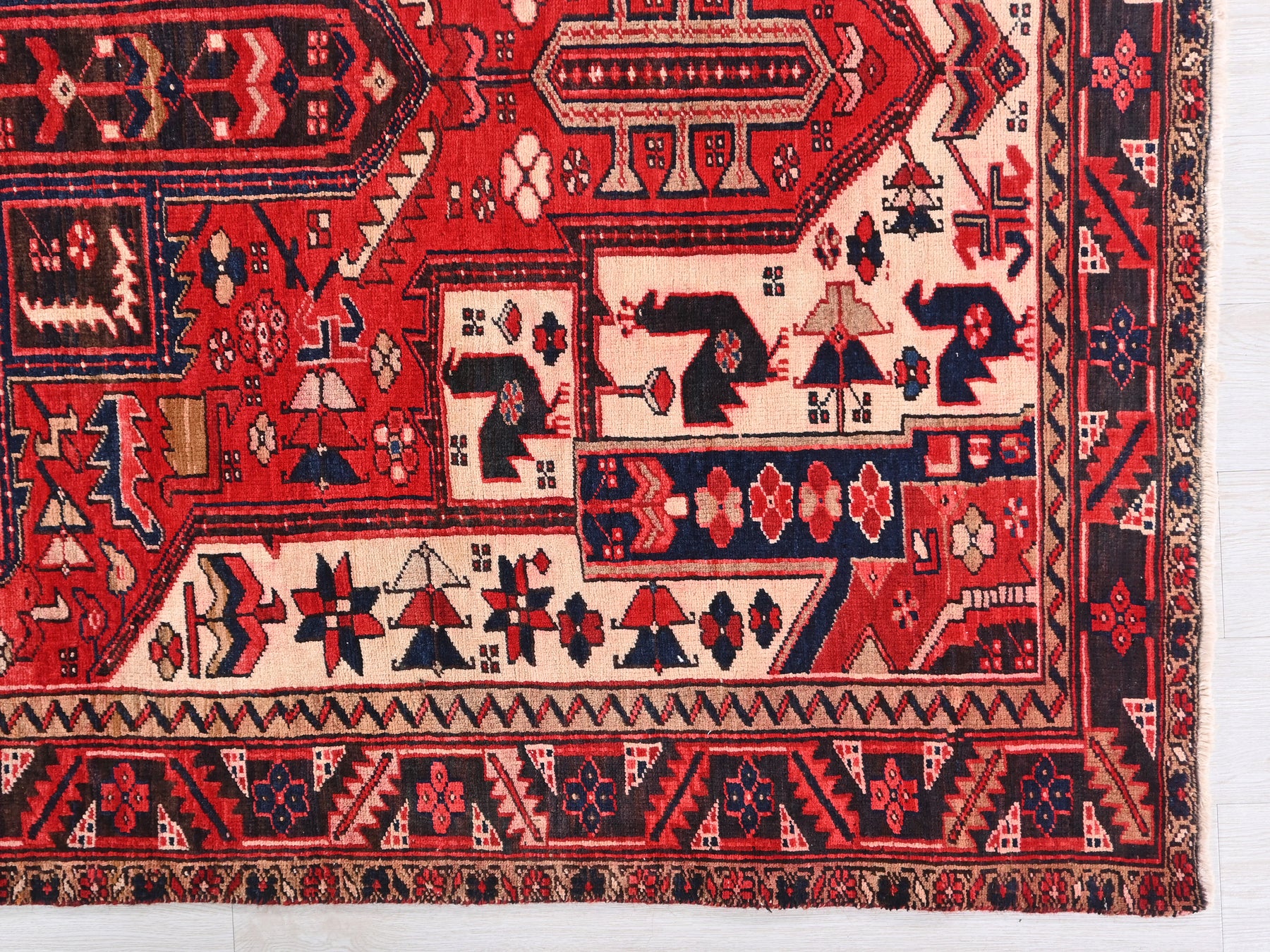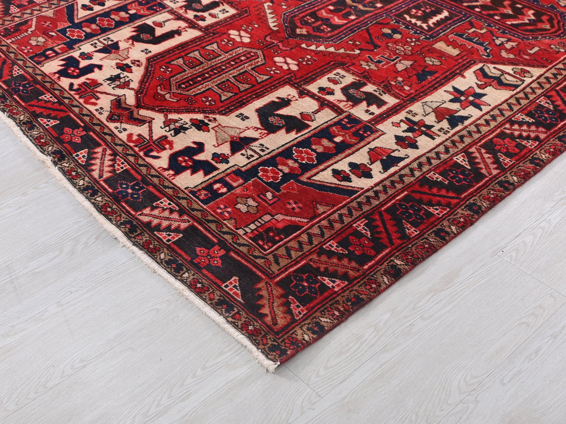 This is a hand-knotted, one-of-a-kind vintage rug. Due to the nature of this piece, there may be slight imperfections in its wear, shape, dimensions, and color. All of our rugs are professionally cleaned and repaired.