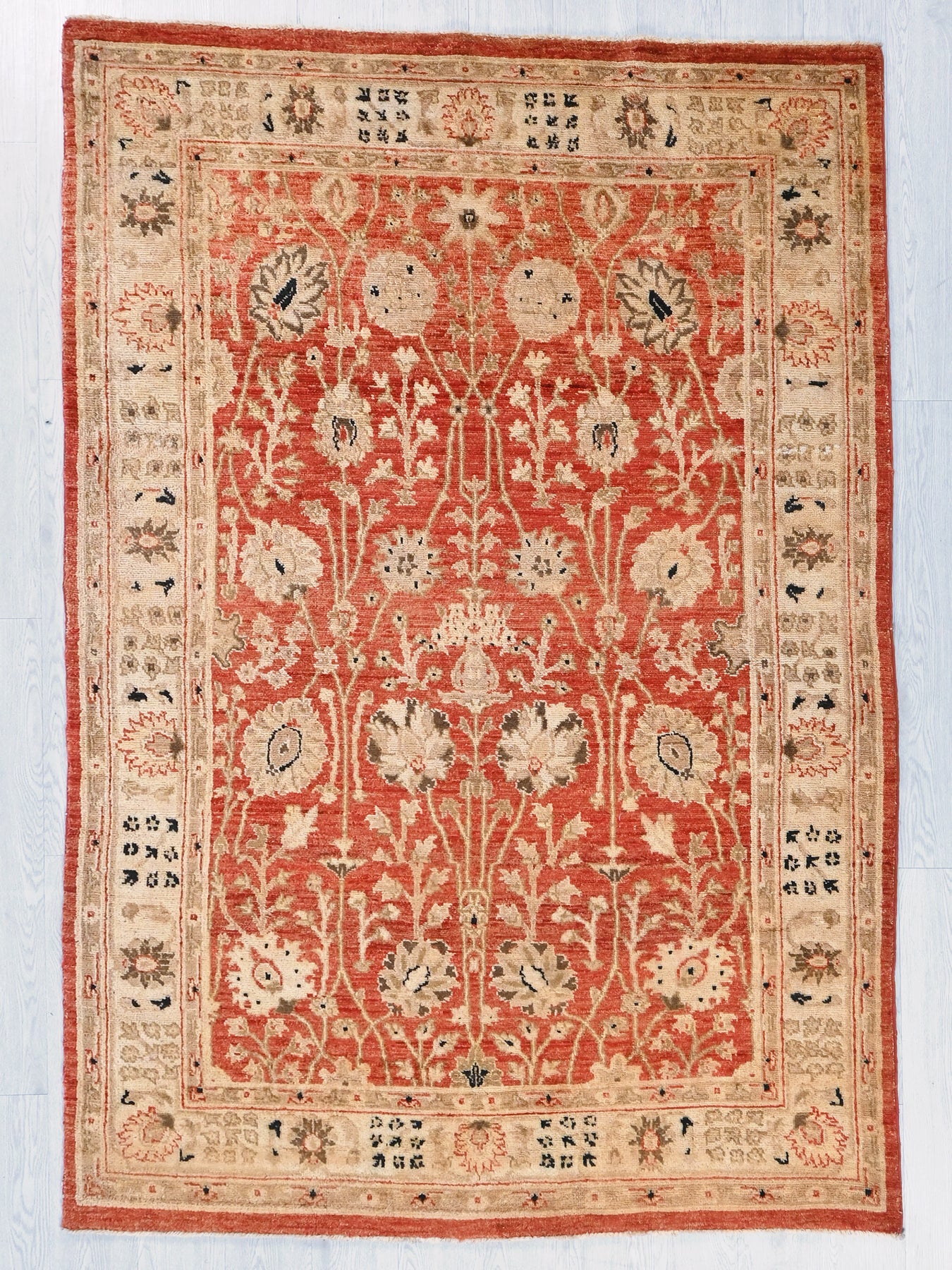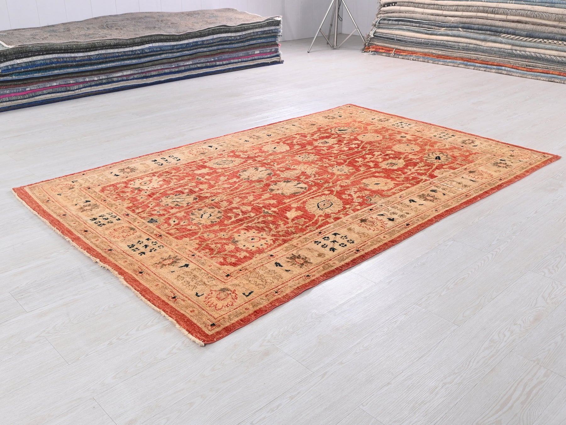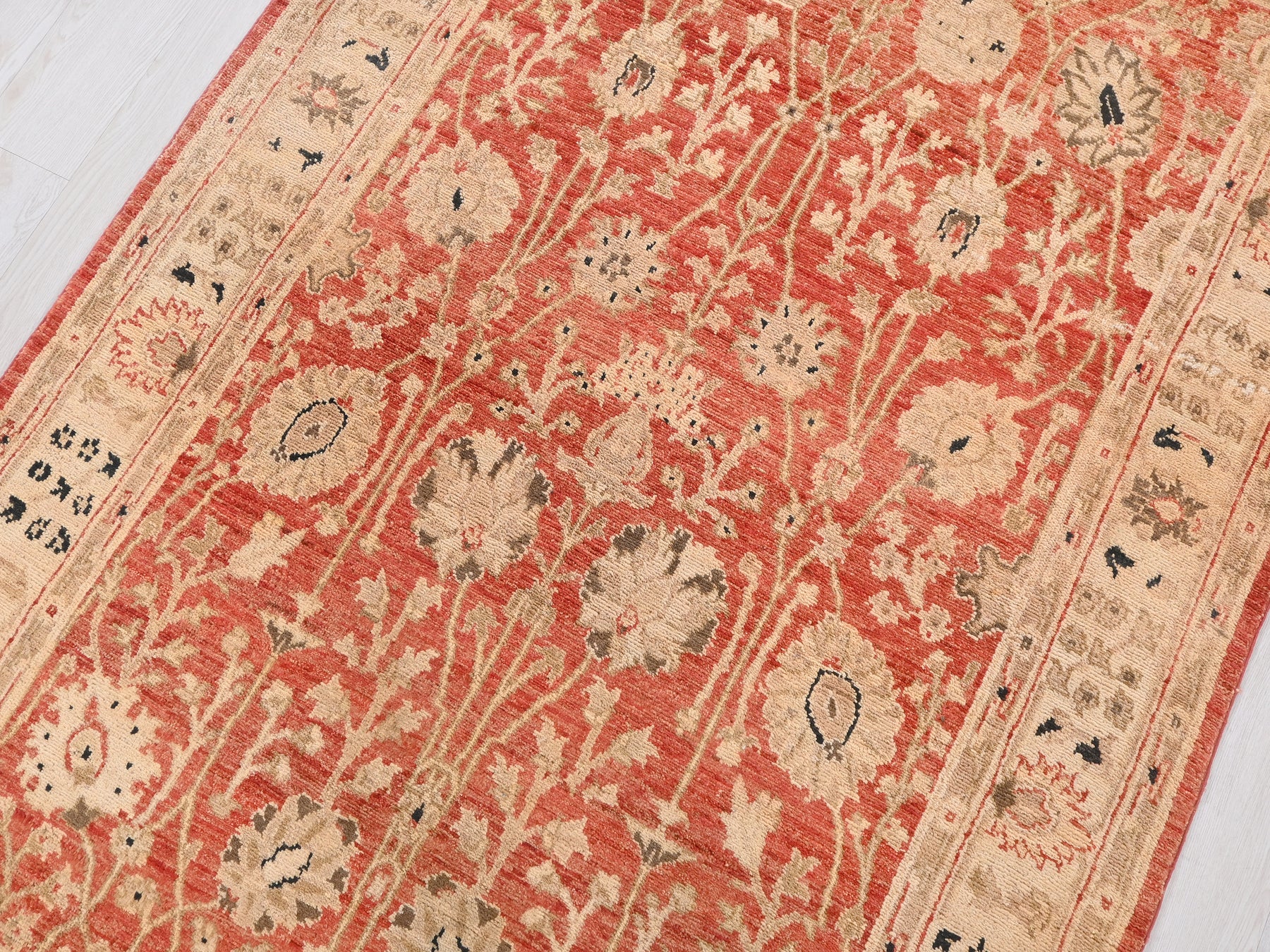 This is a hand-knotted, one-of-a-kind vintage rug. Due to the nature of this piece, there may be slight imperfections in its wear, shape, dimensions, and color. All of our rugs are professionally cleaned and repaired.