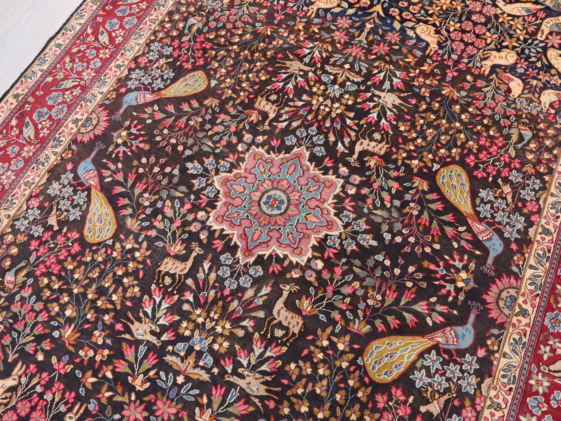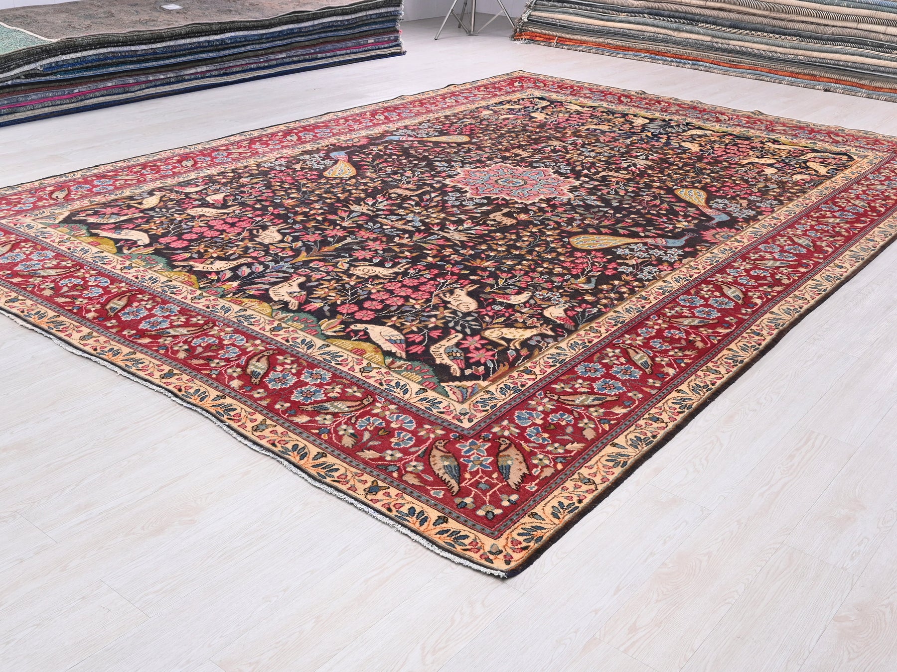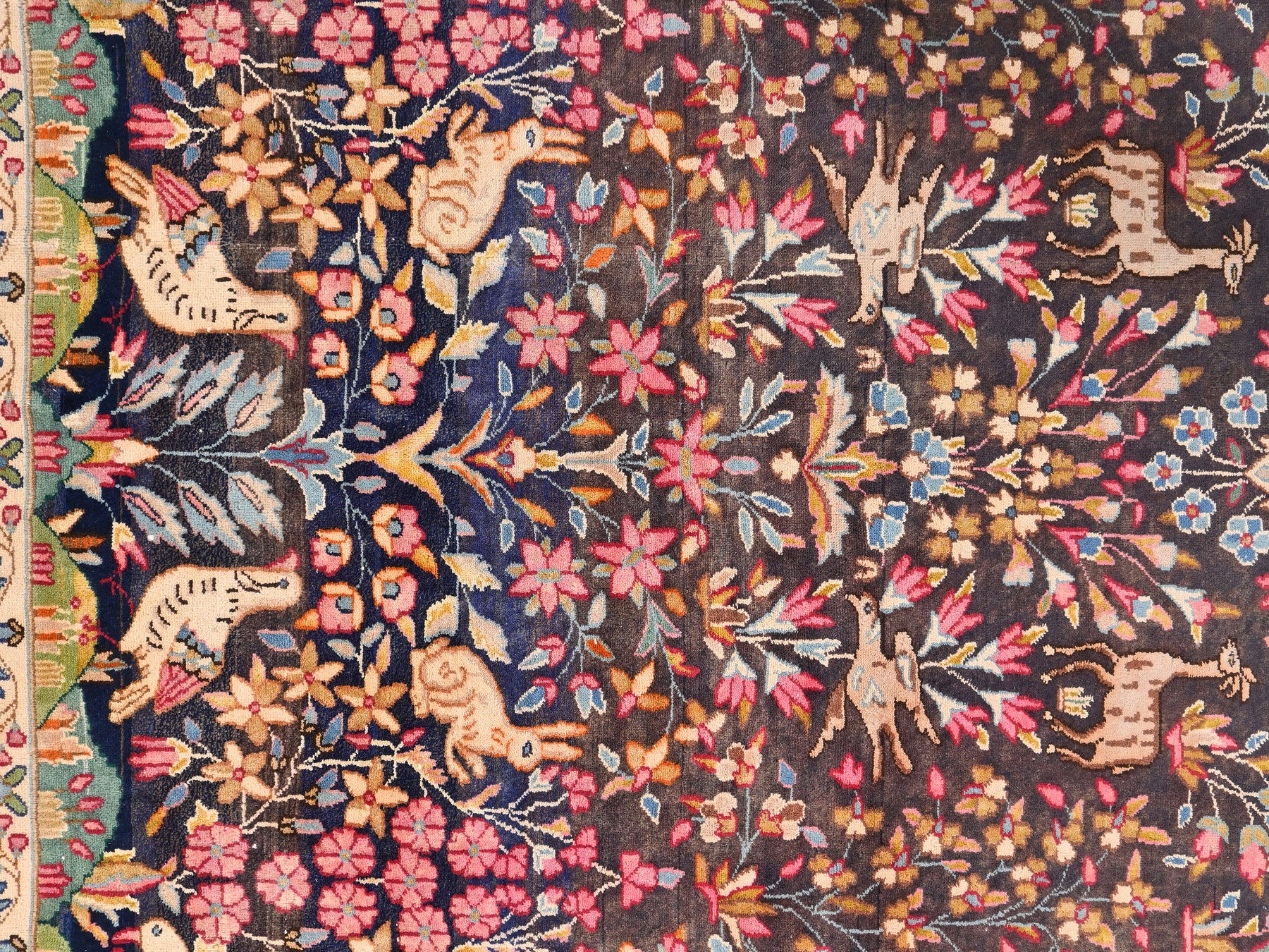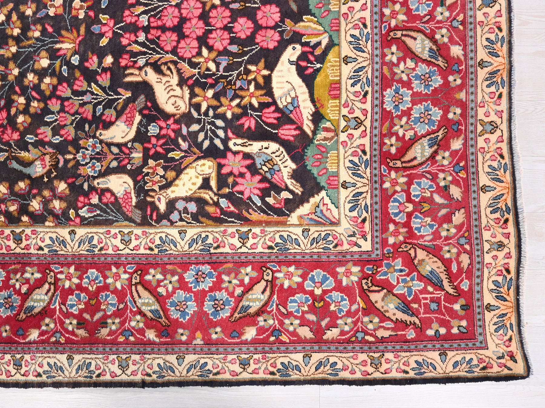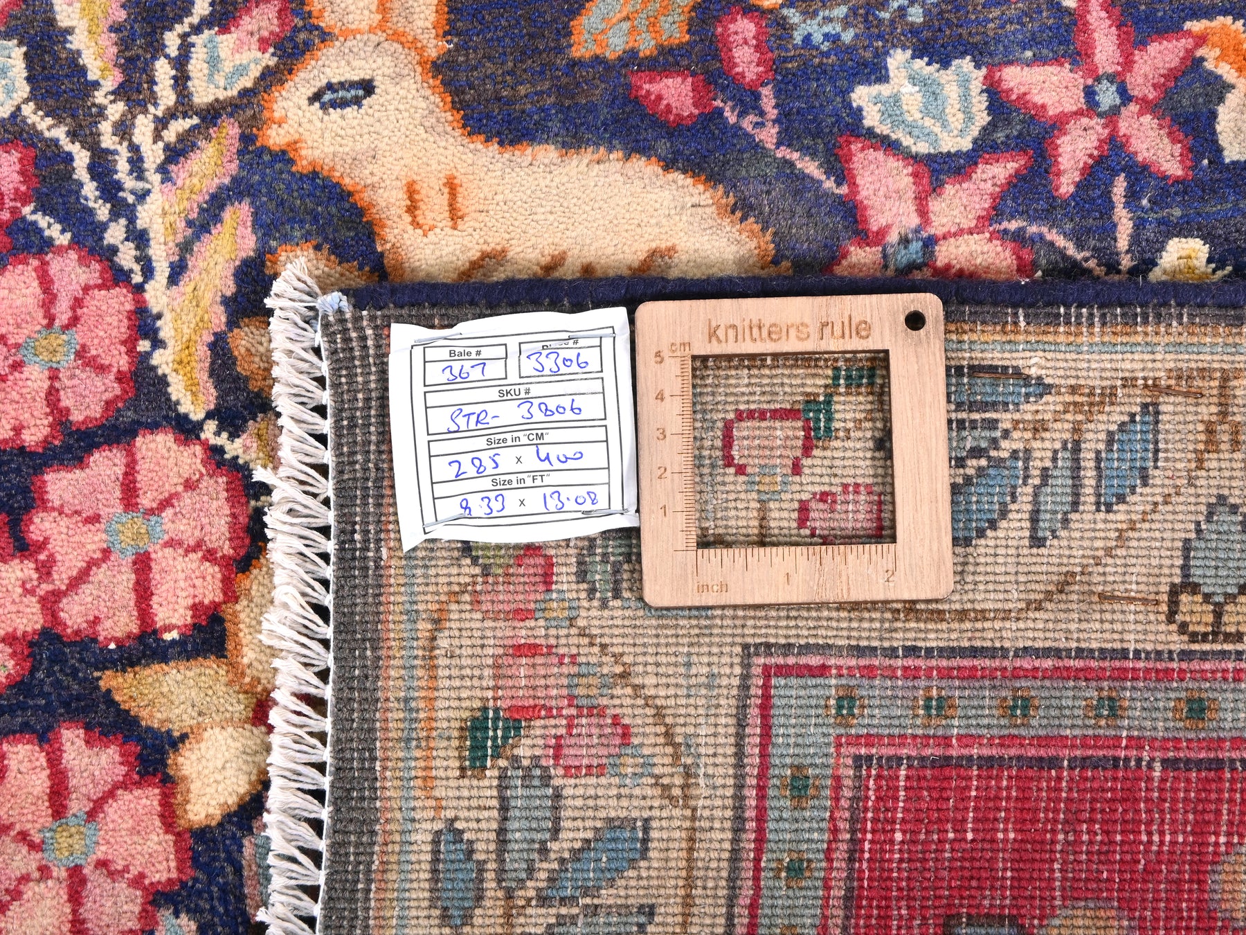 This is a hand-knotted, one-of-a-kind vintage rug. Due to the nature of this piece, there may be slight imperfections in its wear, shape, dimensions, and color. All of our rugs are professionally cleaned and repaired.