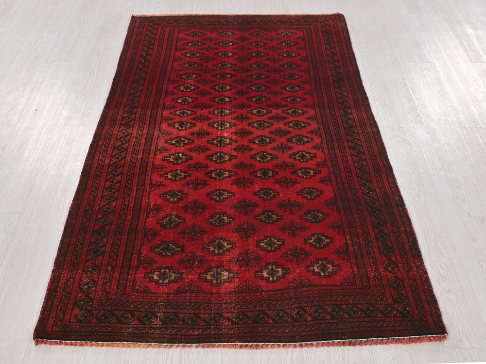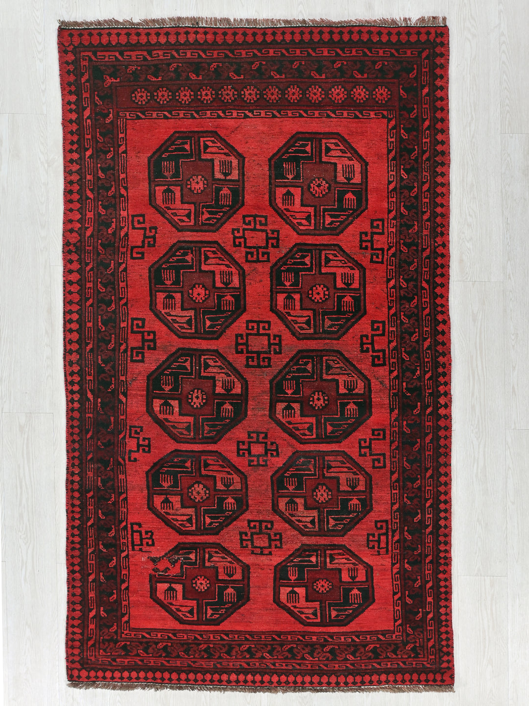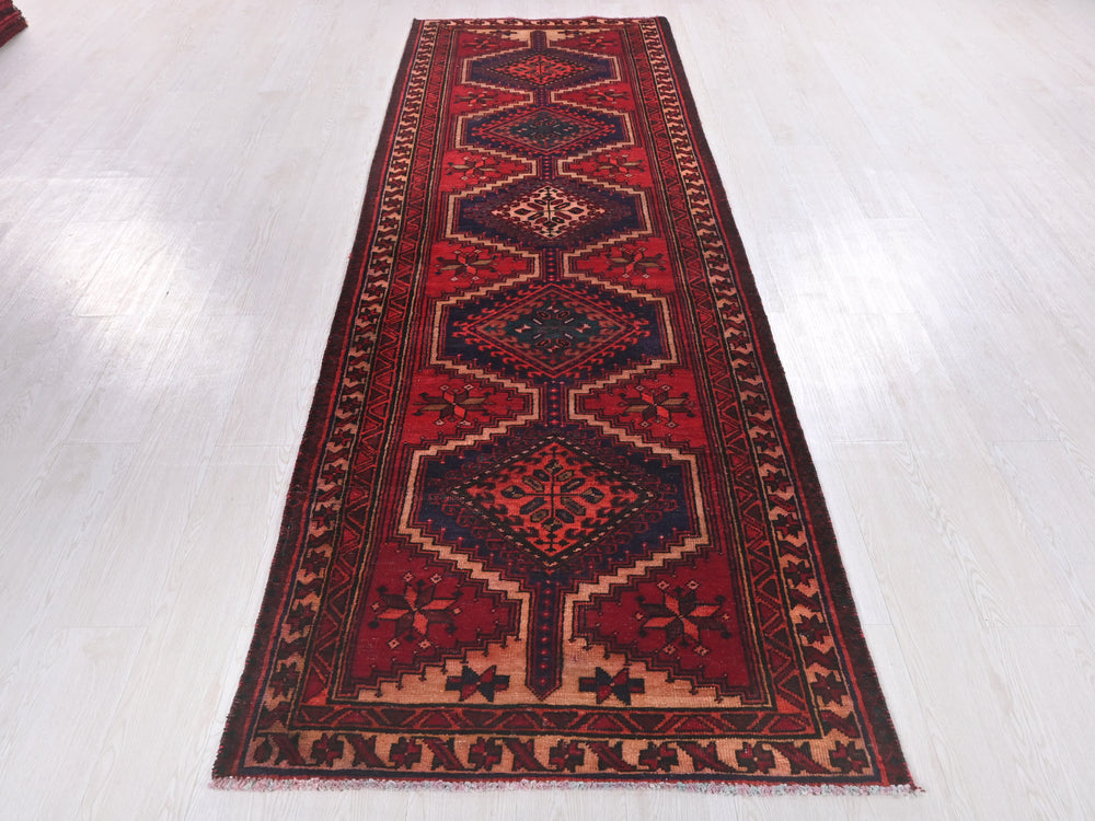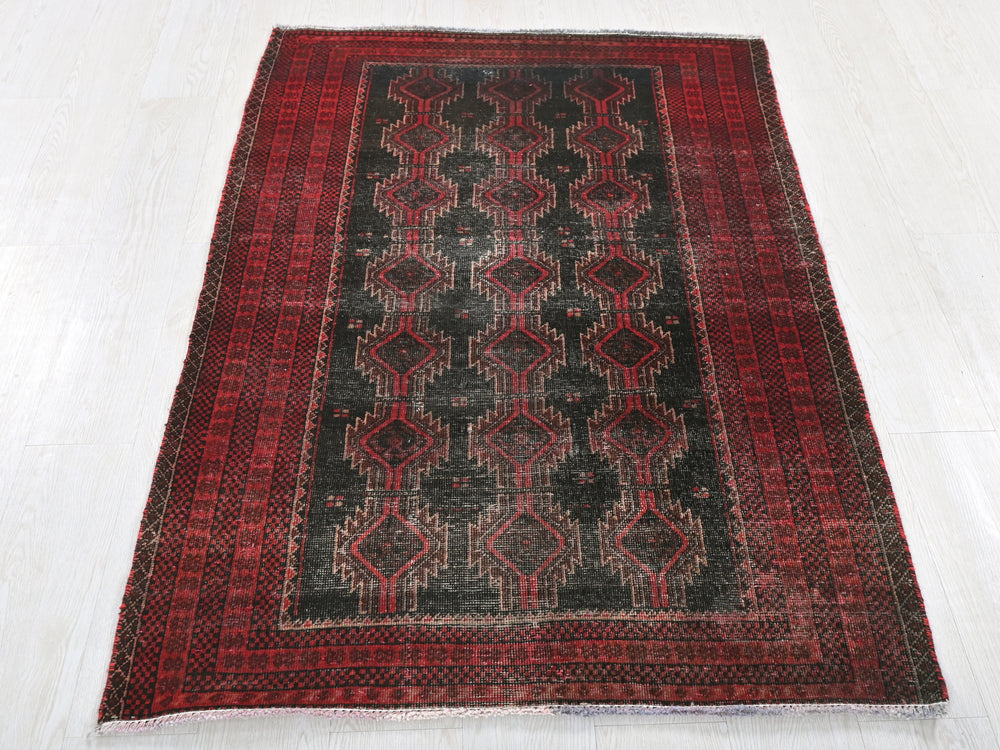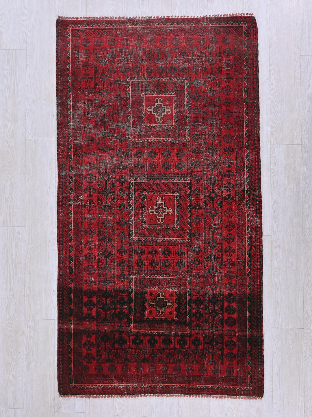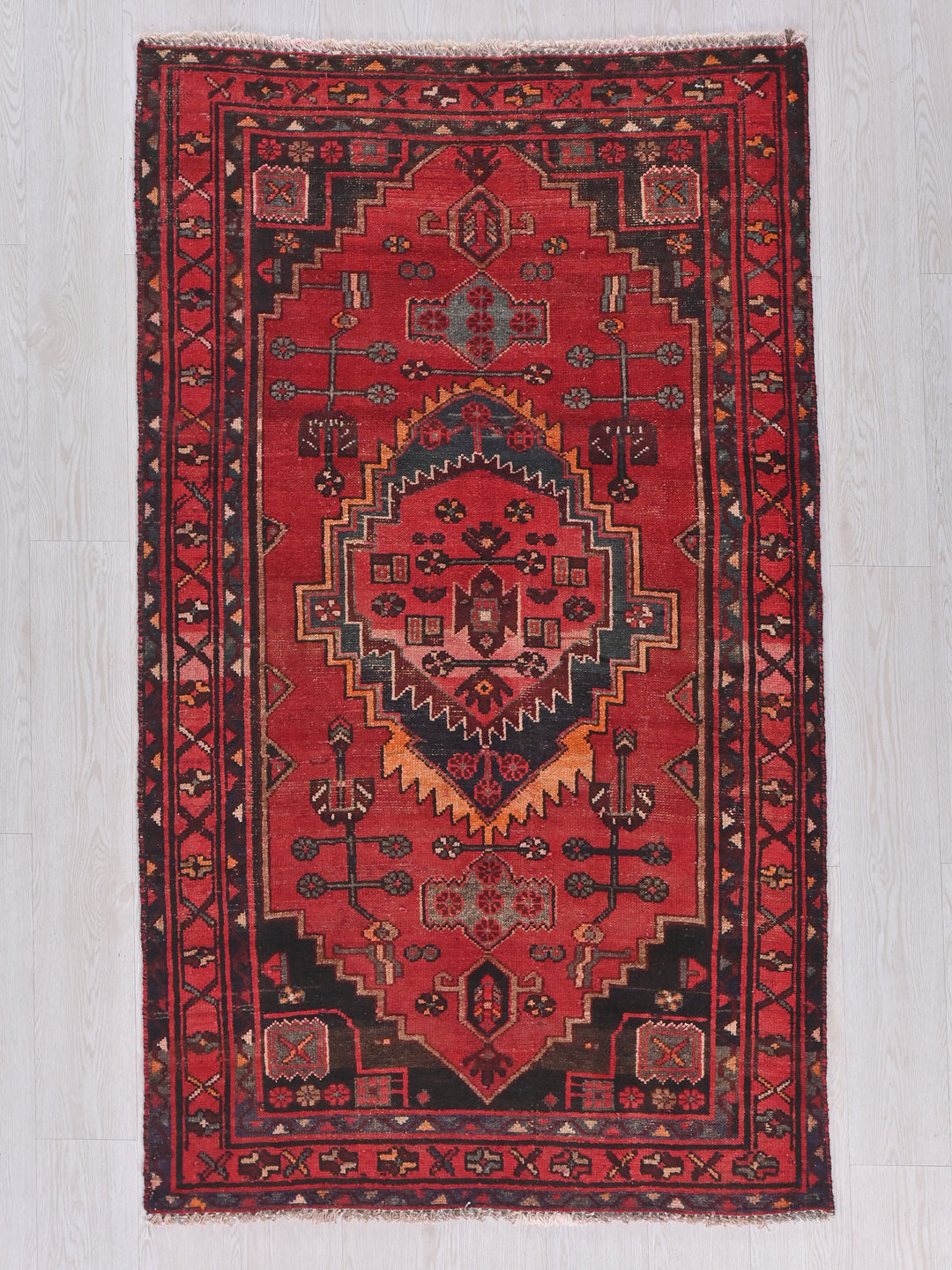 Vintage, hand‑knotted, repaired/restored wear