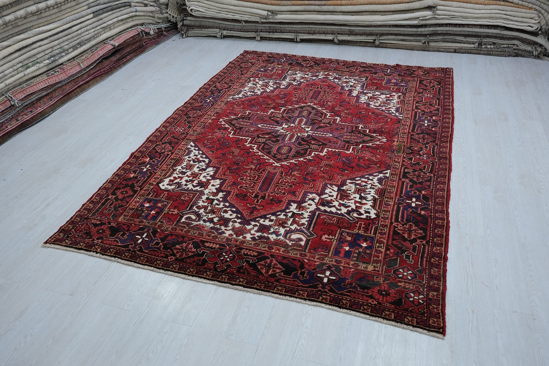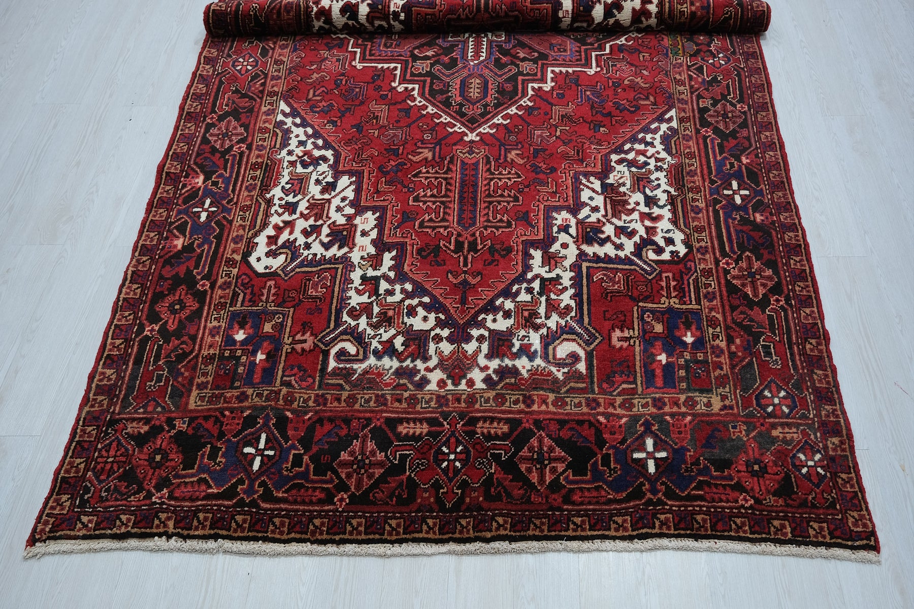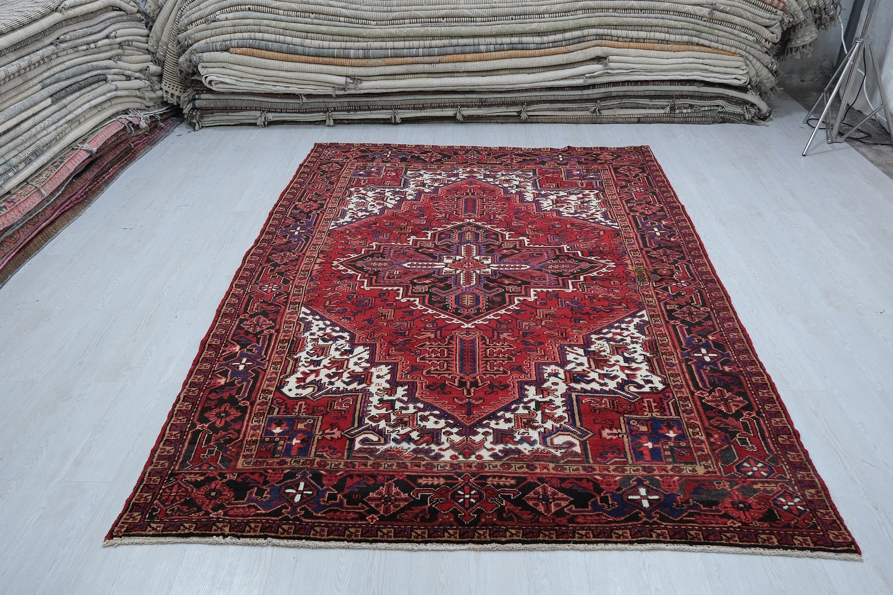 This is a hand-knotted, one-of-a-kind vintage rug. Due to the nature of this piece, there may be slight imperfections in its wear, shape, dimensions, and color. All of our rugs are professionally cleaned and repaired.