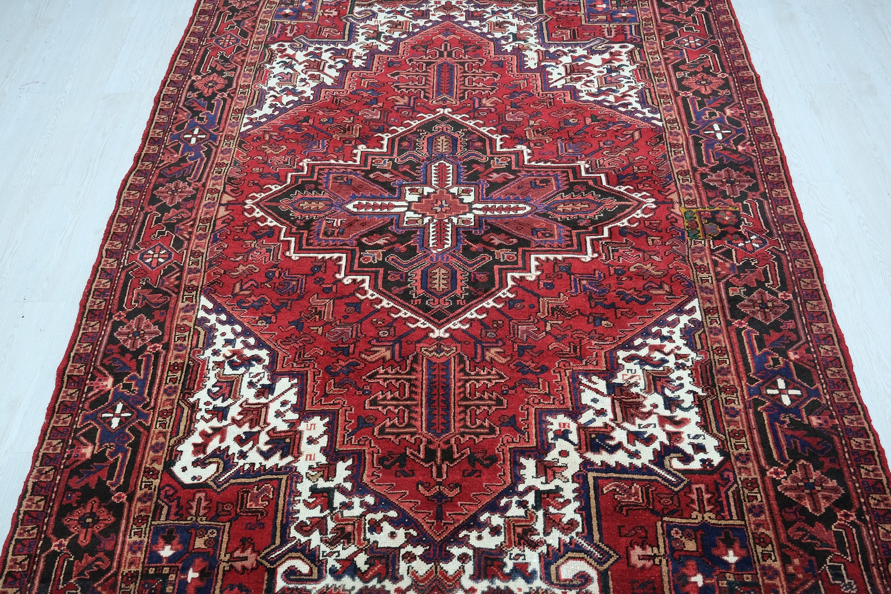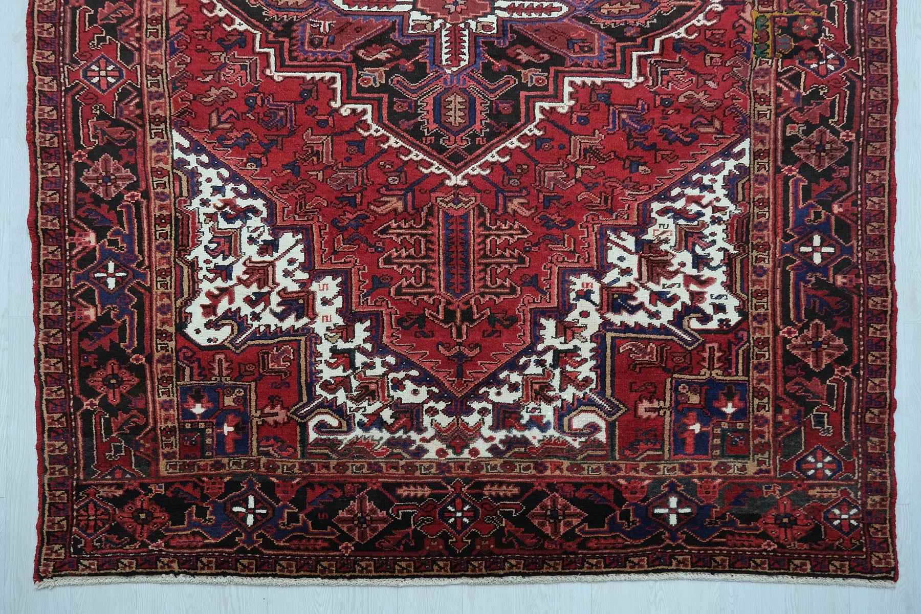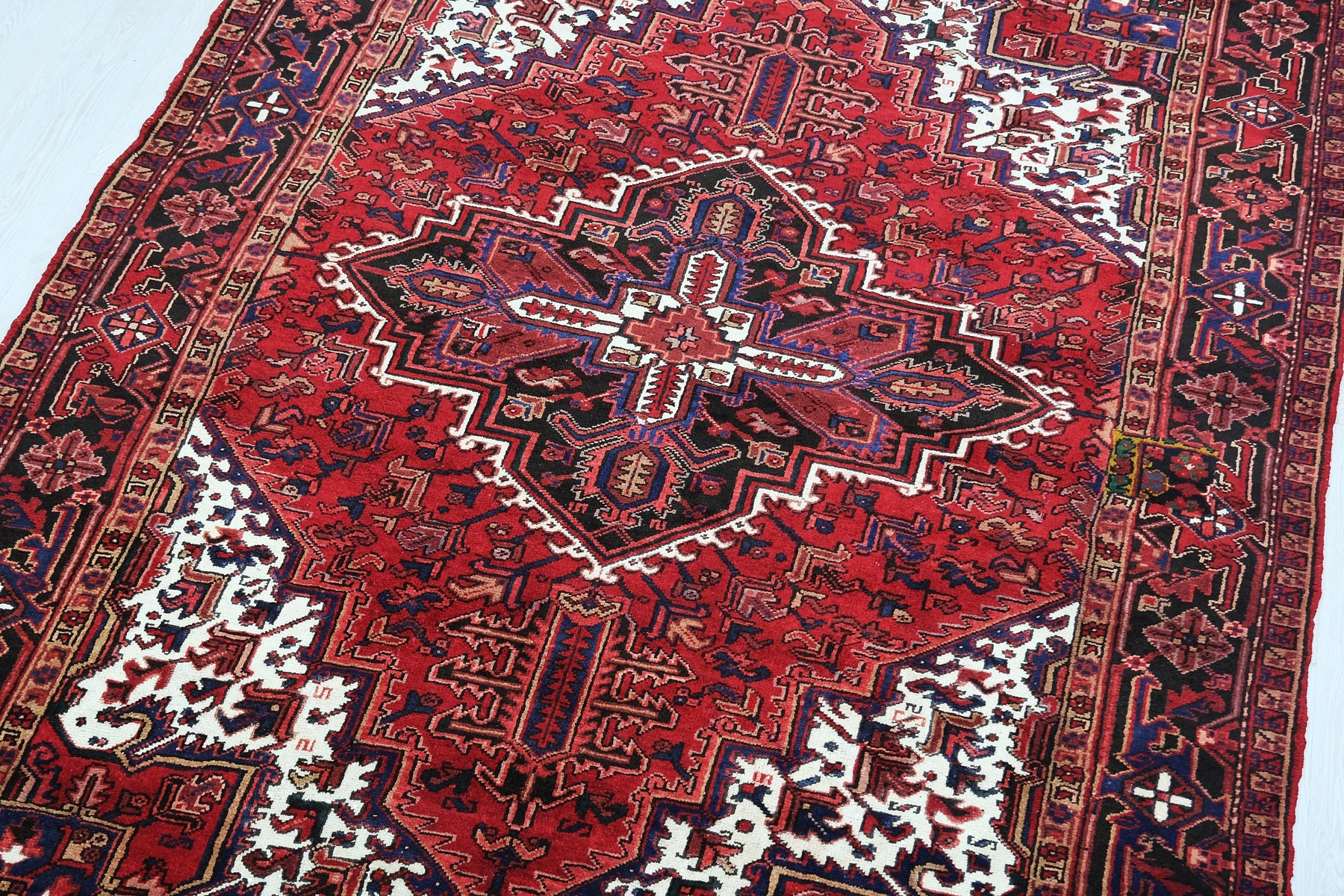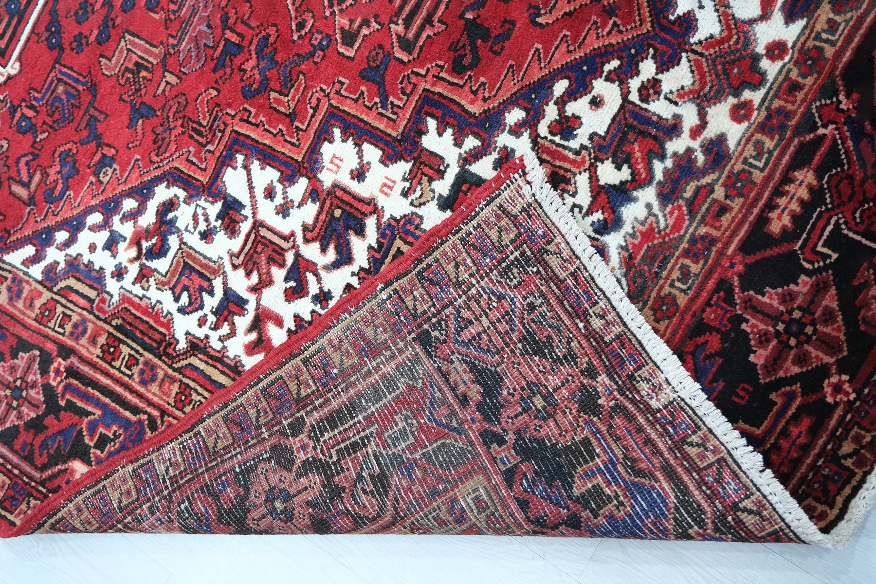 This is a hand-knotted, one-of-a-kind vintage rug. Due to the nature of this piece, there may be slight imperfections in its wear, shape, dimensions, and color. All of our rugs are professionally cleaned and repaired.