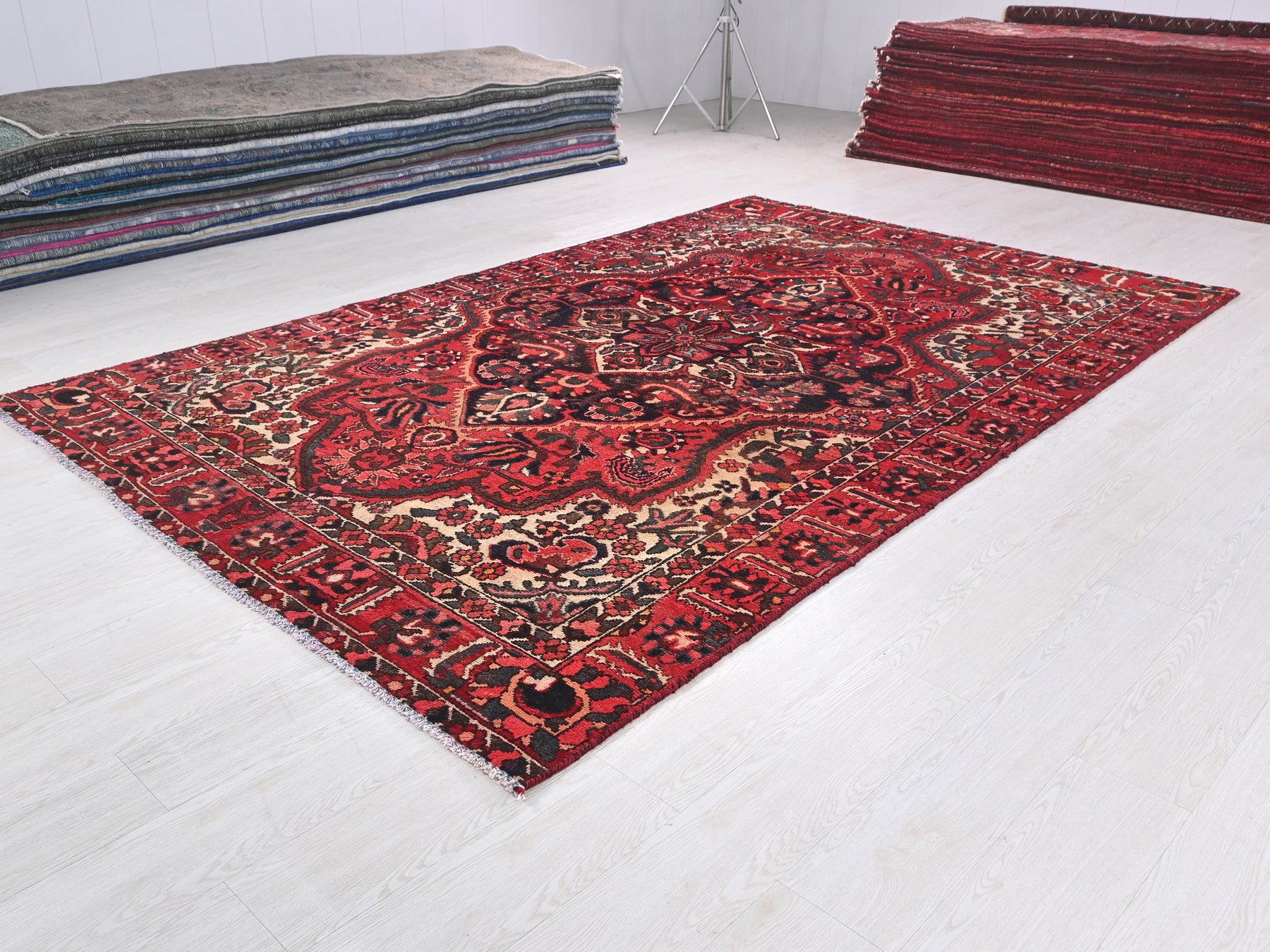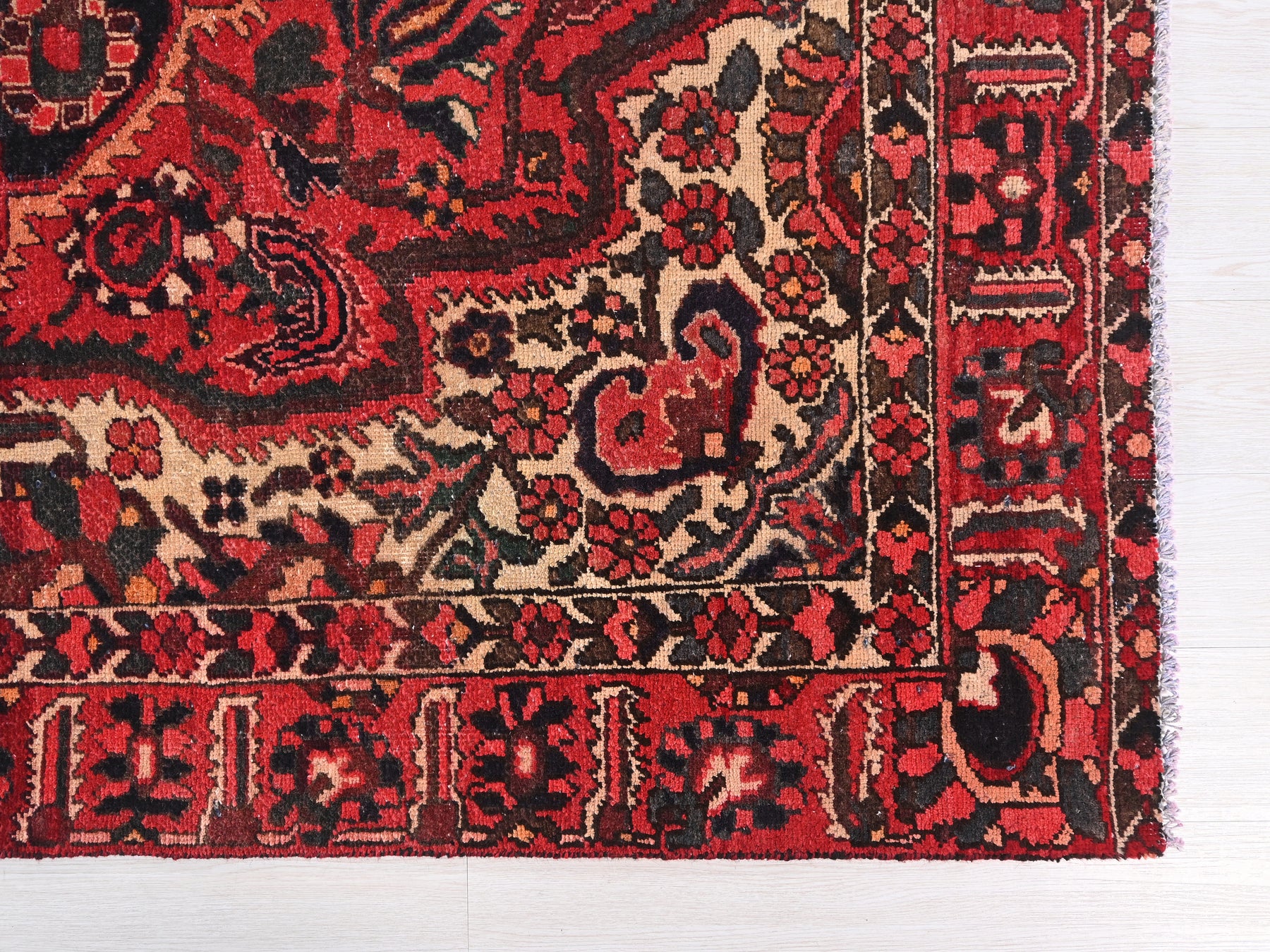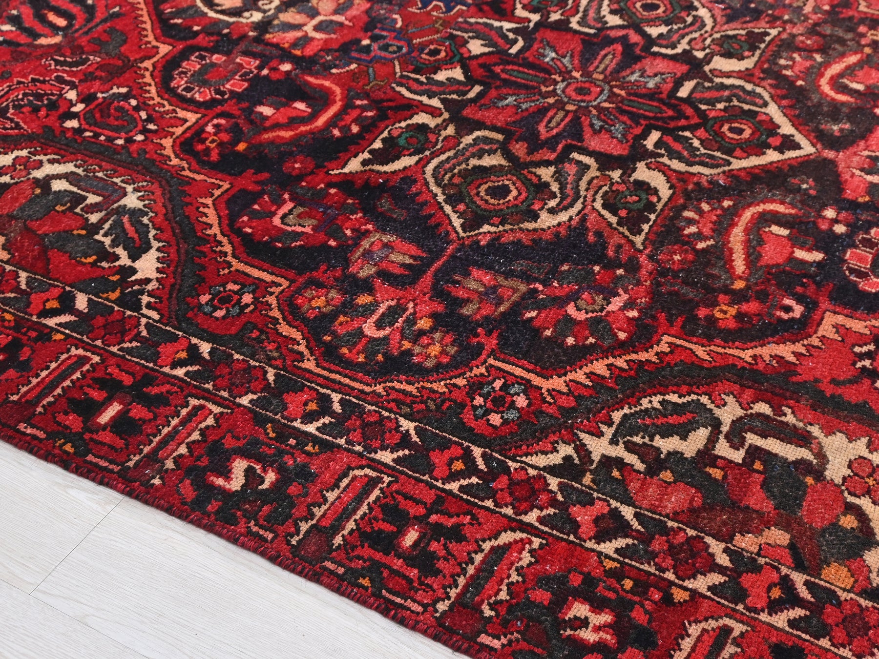 This is a hand-knotted, one-of-a-kind vintage rug. Due to the nature of this piece, there may be slight imperfections in its wear, shape, dimensions, and color. All of our rugs are professionally cleaned and repaired.