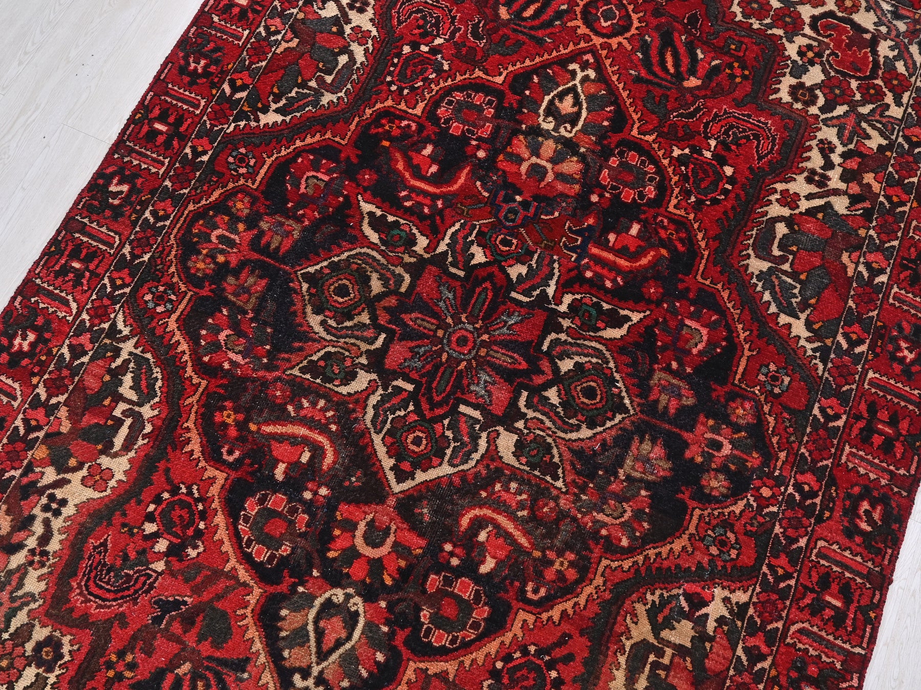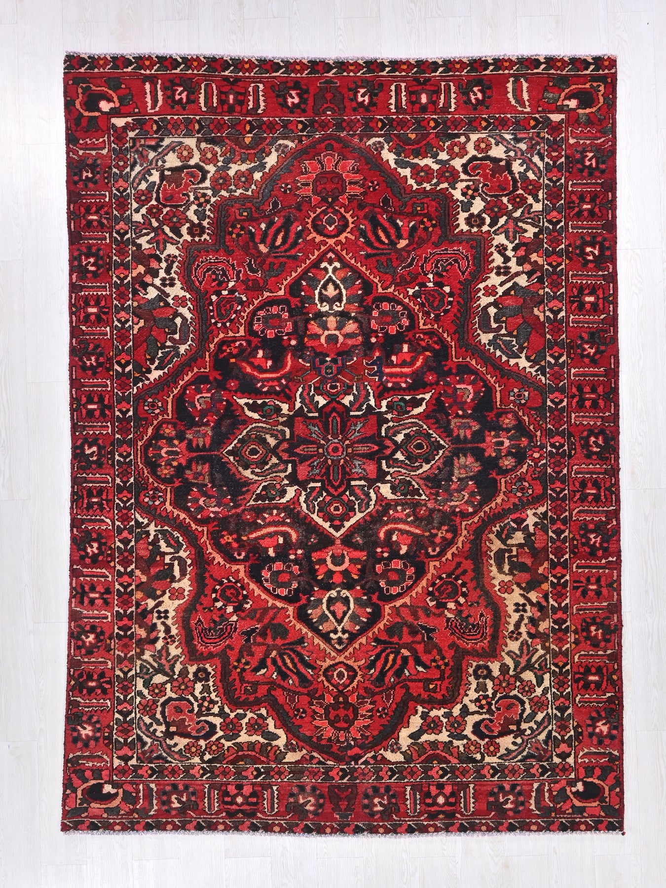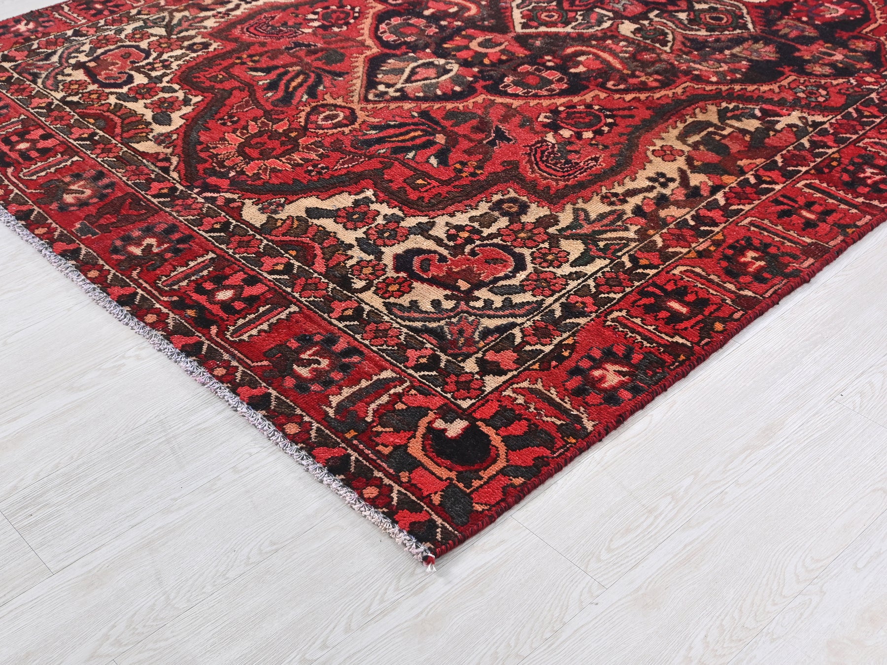 This is a hand-knotted, one-of-a-kind vintage rug. Due to the nature of this piece, there may be slight imperfections in its wear, shape, dimensions, and color. All of our rugs are professionally cleaned and repaired.
