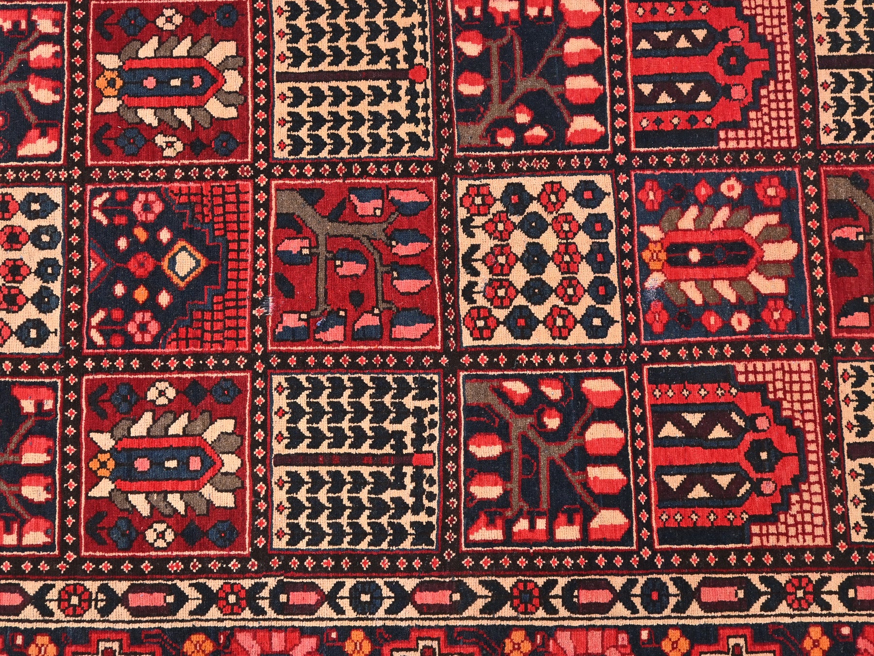 This is a hand-knotted, one-of-a-kind vintage rug. Due to the nature of this piece, there may be slight imperfections in its wear, shape, dimensions, and color. All of our rugs are professionally cleaned and repaired.