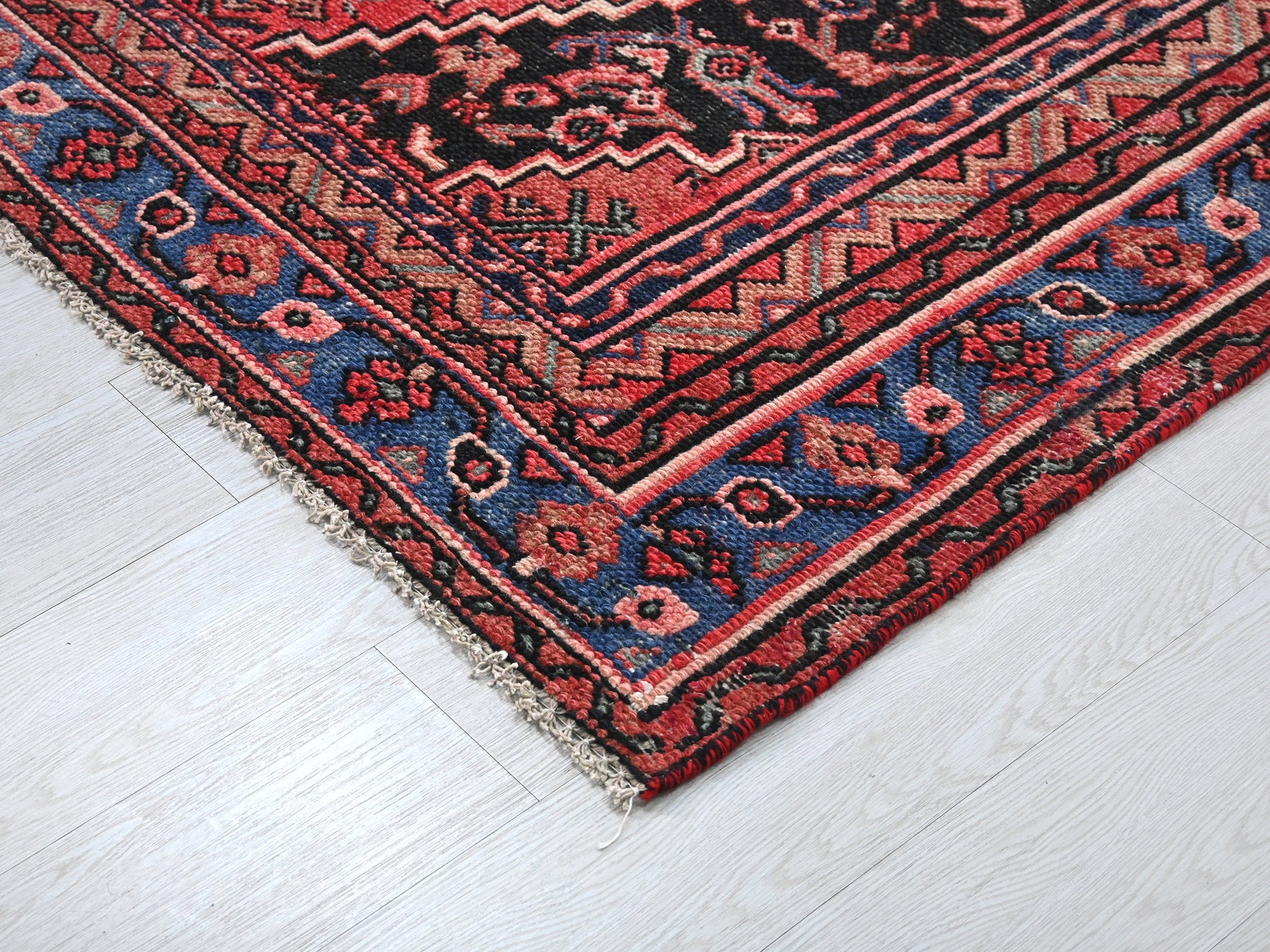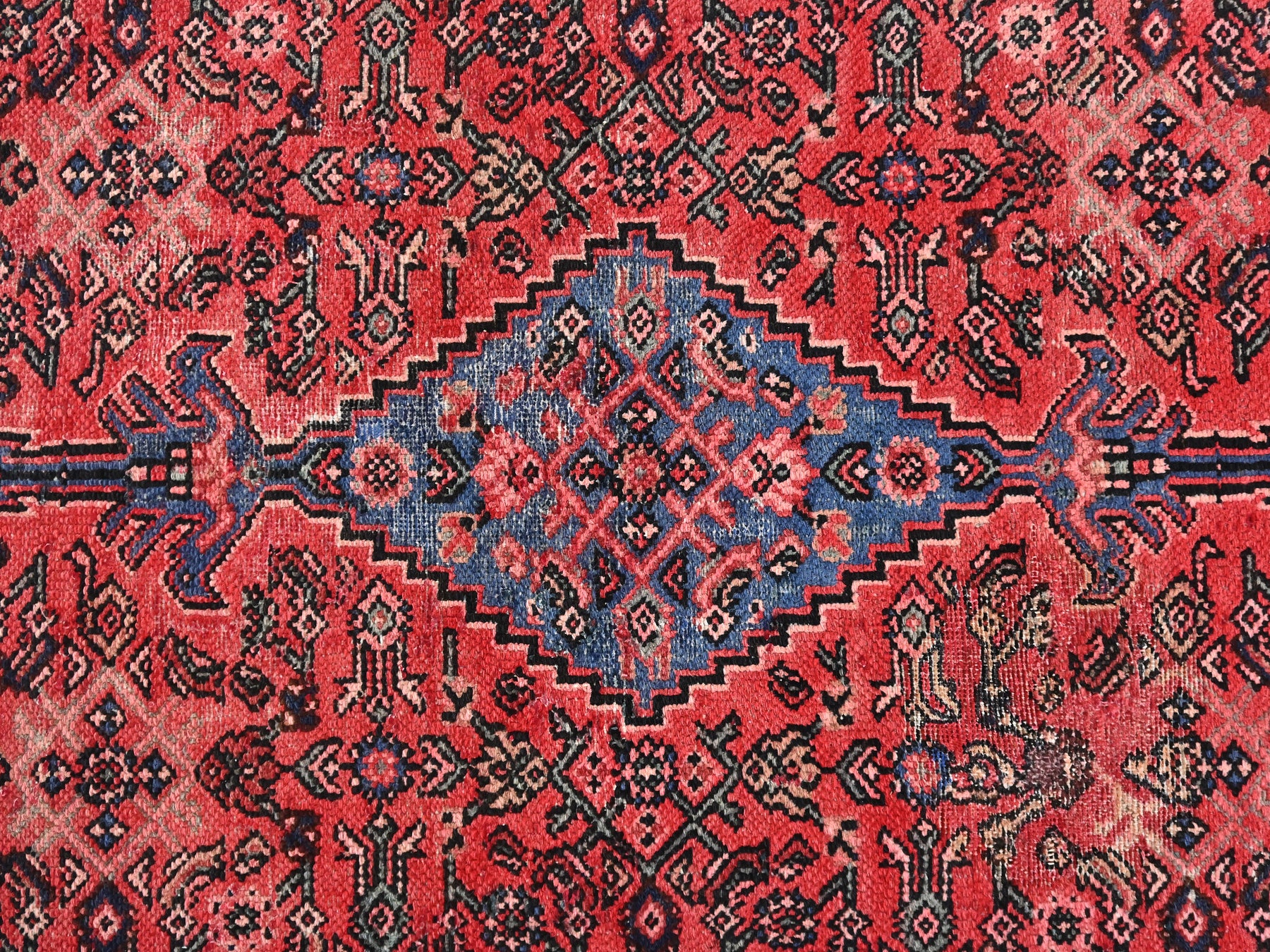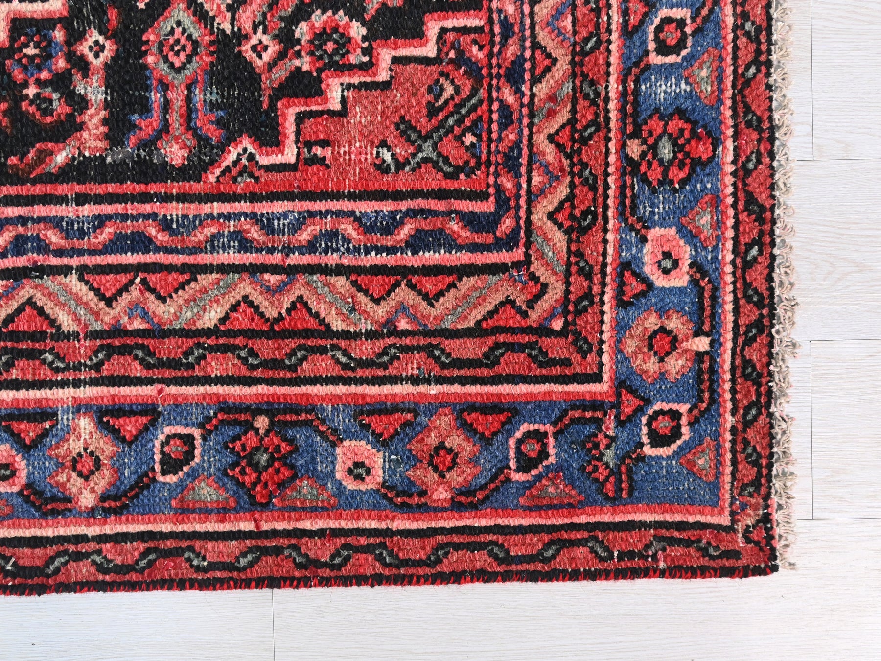 This is a hand-knotted, one-of-a-kind vintage rug. Due to the nature of this piece, there may be slight imperfections in its wear, shape, dimensions, and color. All of our rugs are professionally cleaned and repaired.