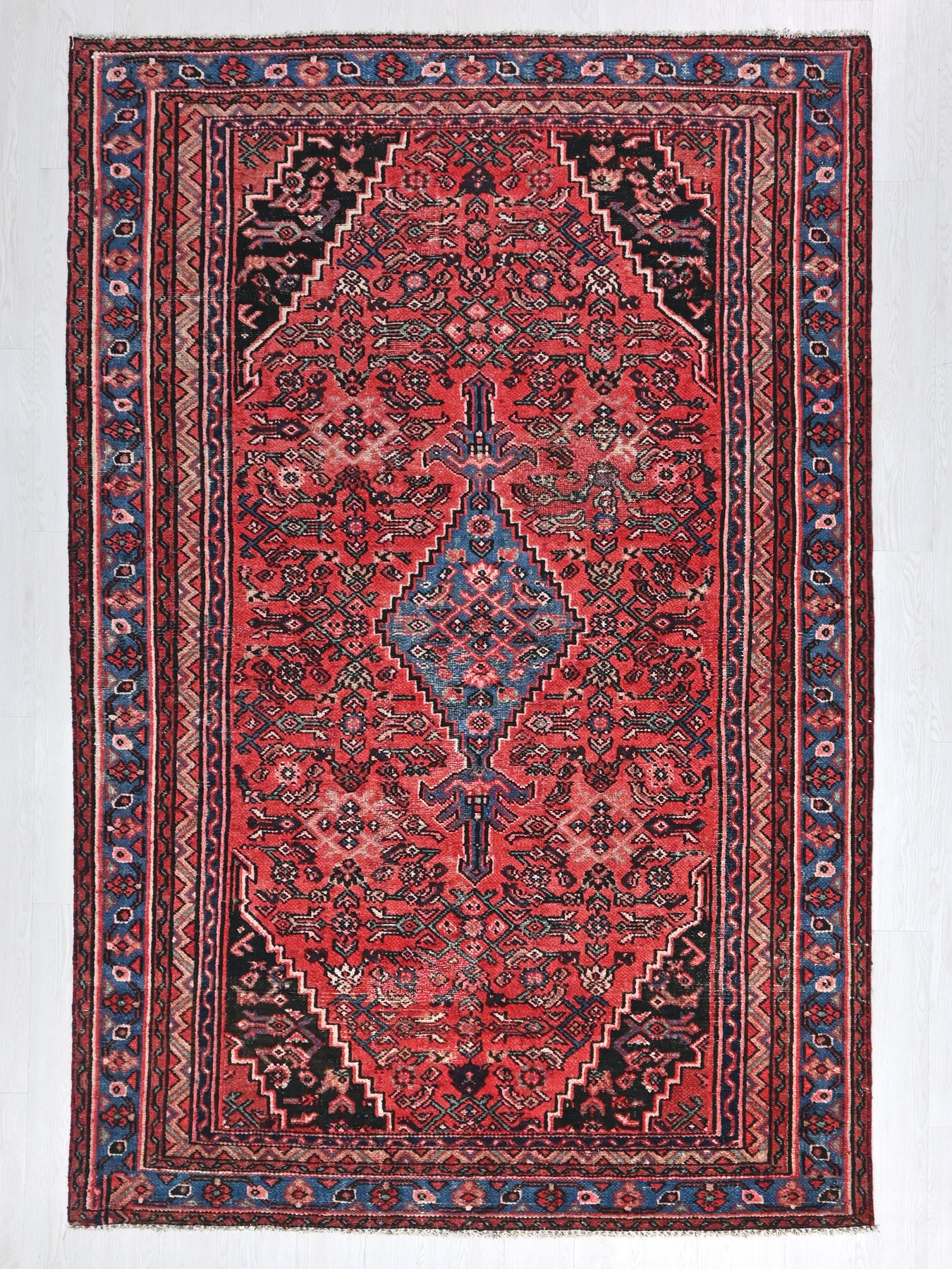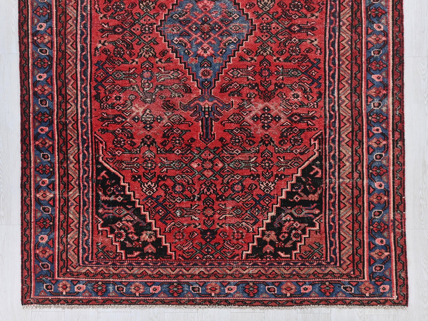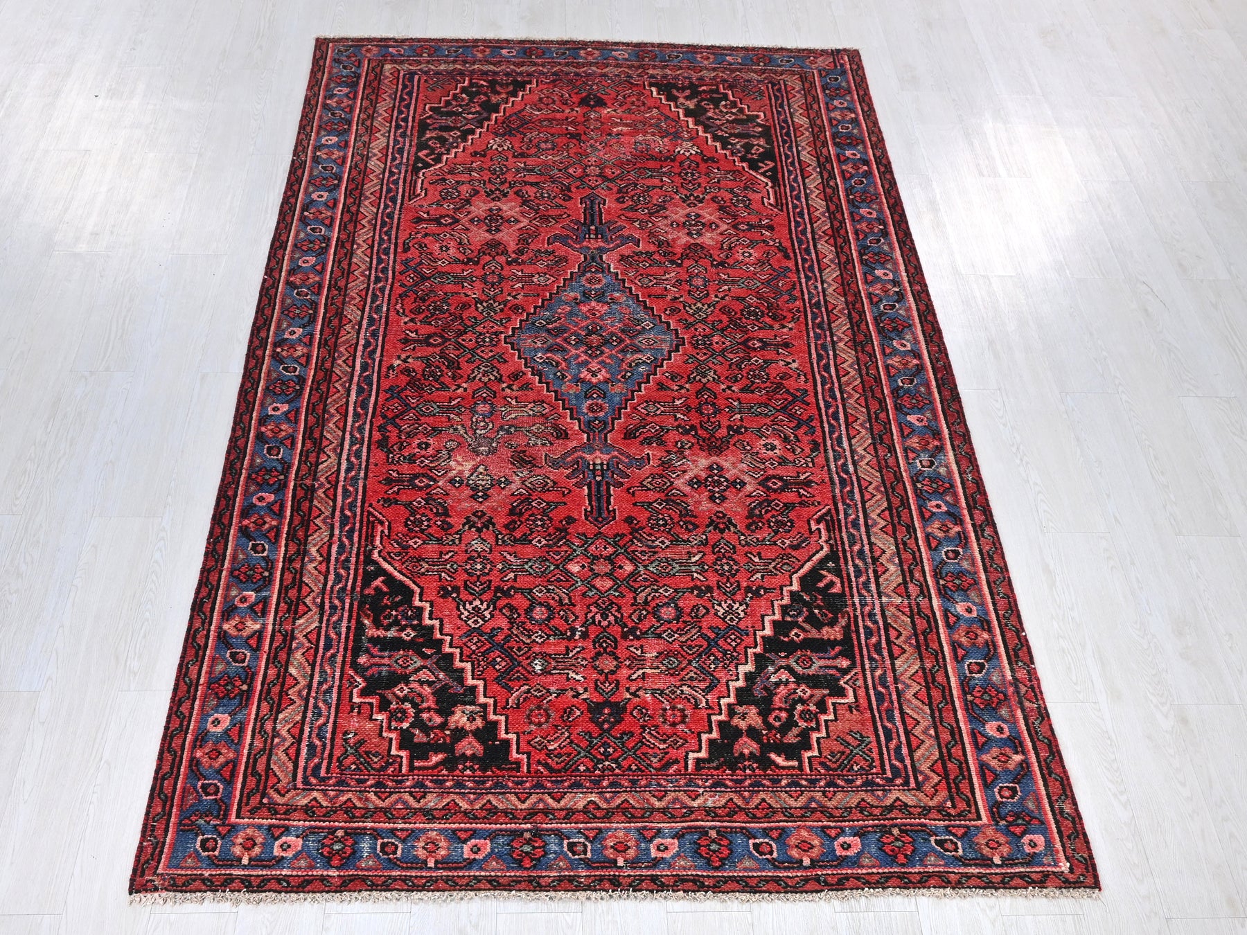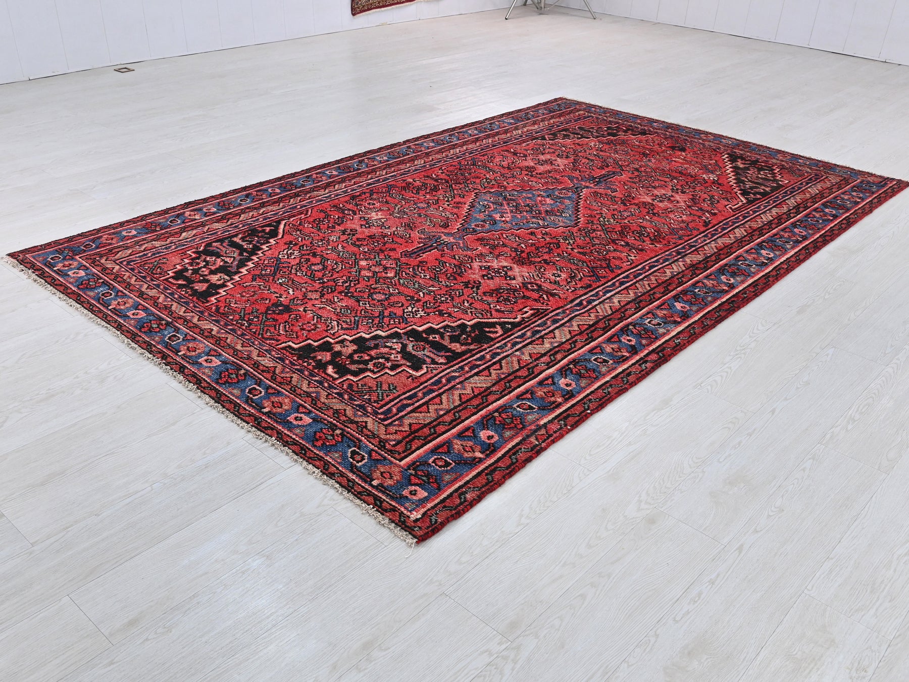 This is a hand-knotted, one-of-a-kind vintage rug. Due to the nature of this piece, there may be slight imperfections in its wear, shape, dimensions, and color. All of our rugs are professionally cleaned and repaired.