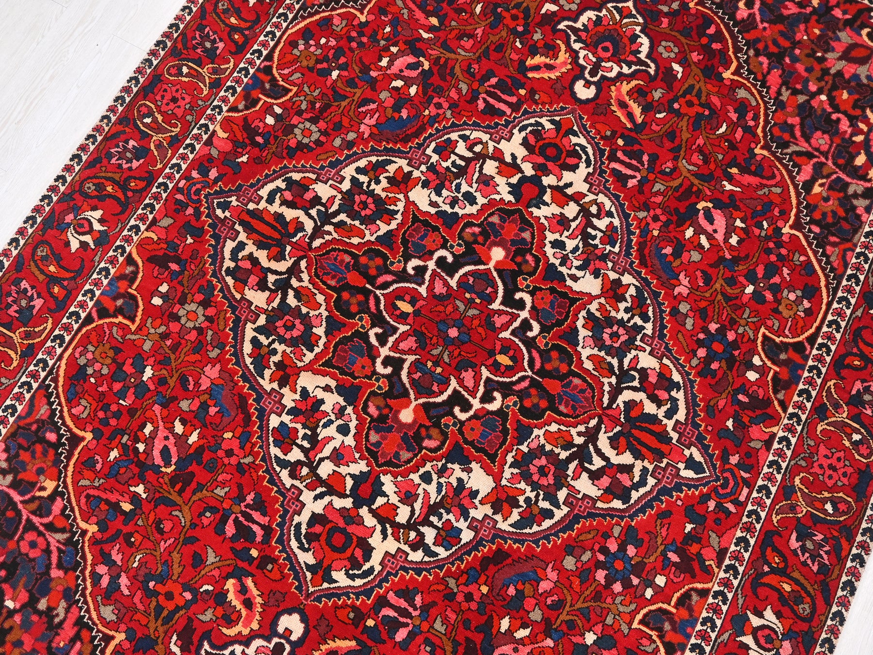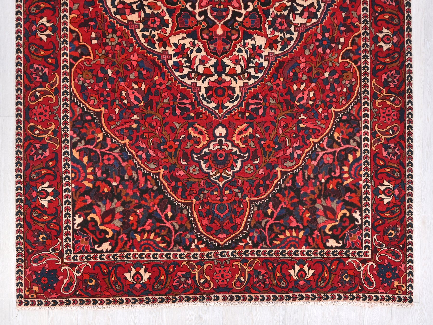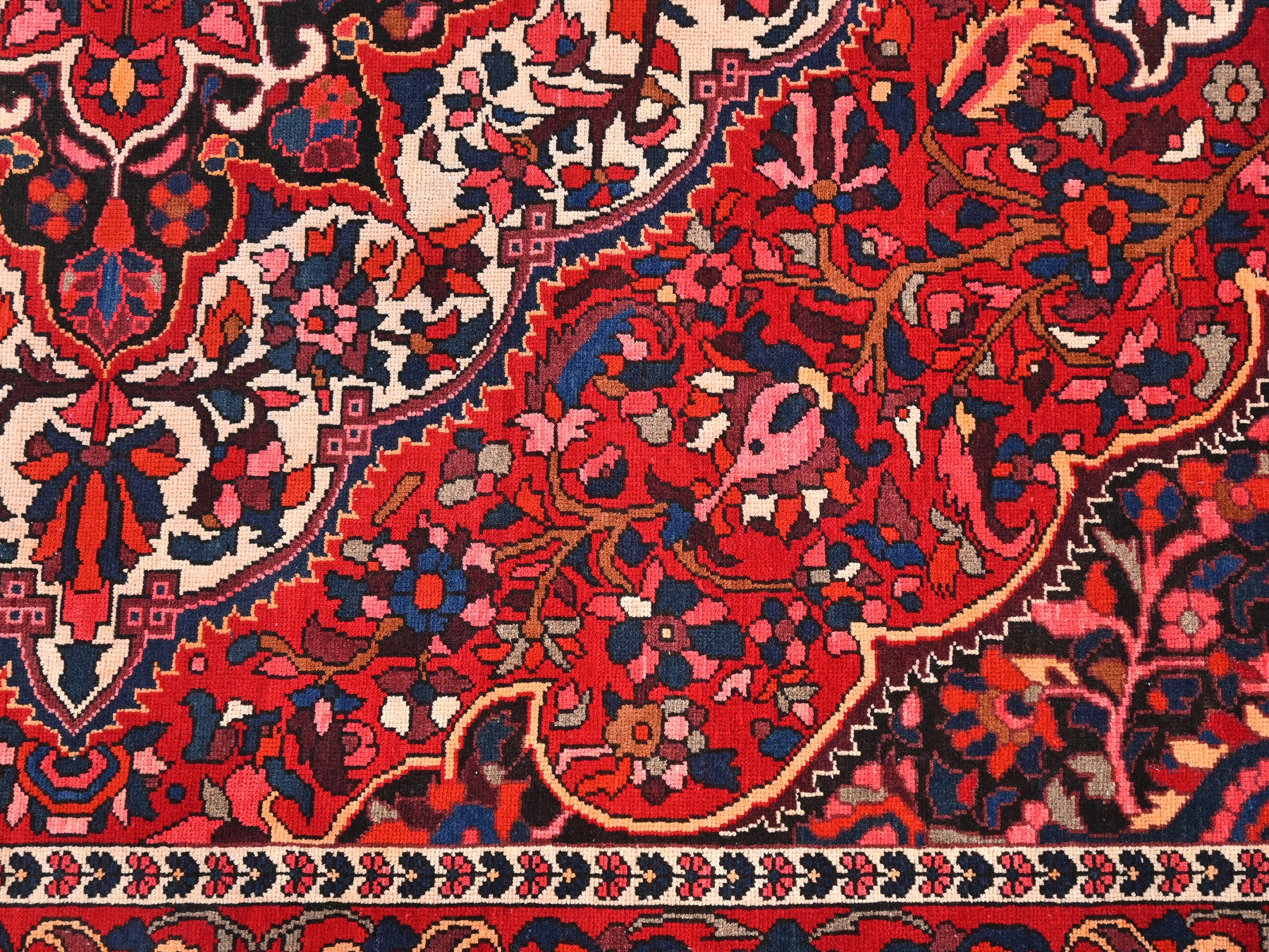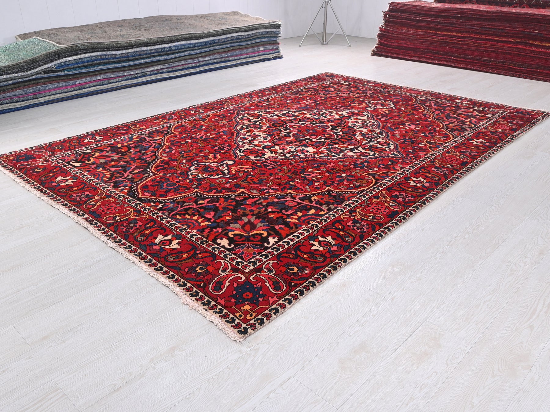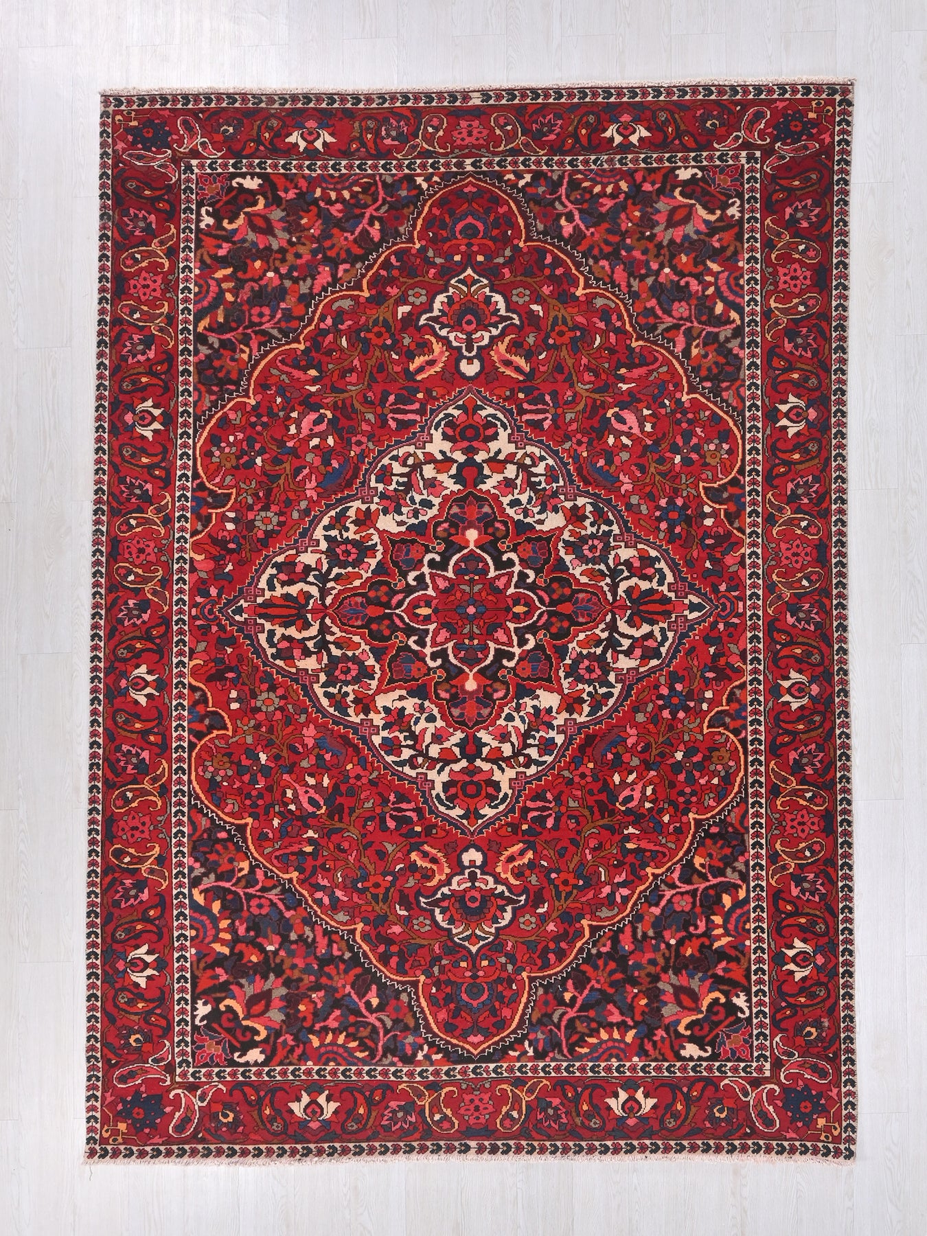 This is a hand-knotted, one-of-a-kind vintage rug. Due to the nature of this piece, there may be slight imperfections in its wear, shape, dimensions, and color. All of our rugs are professionally cleaned and repaired.