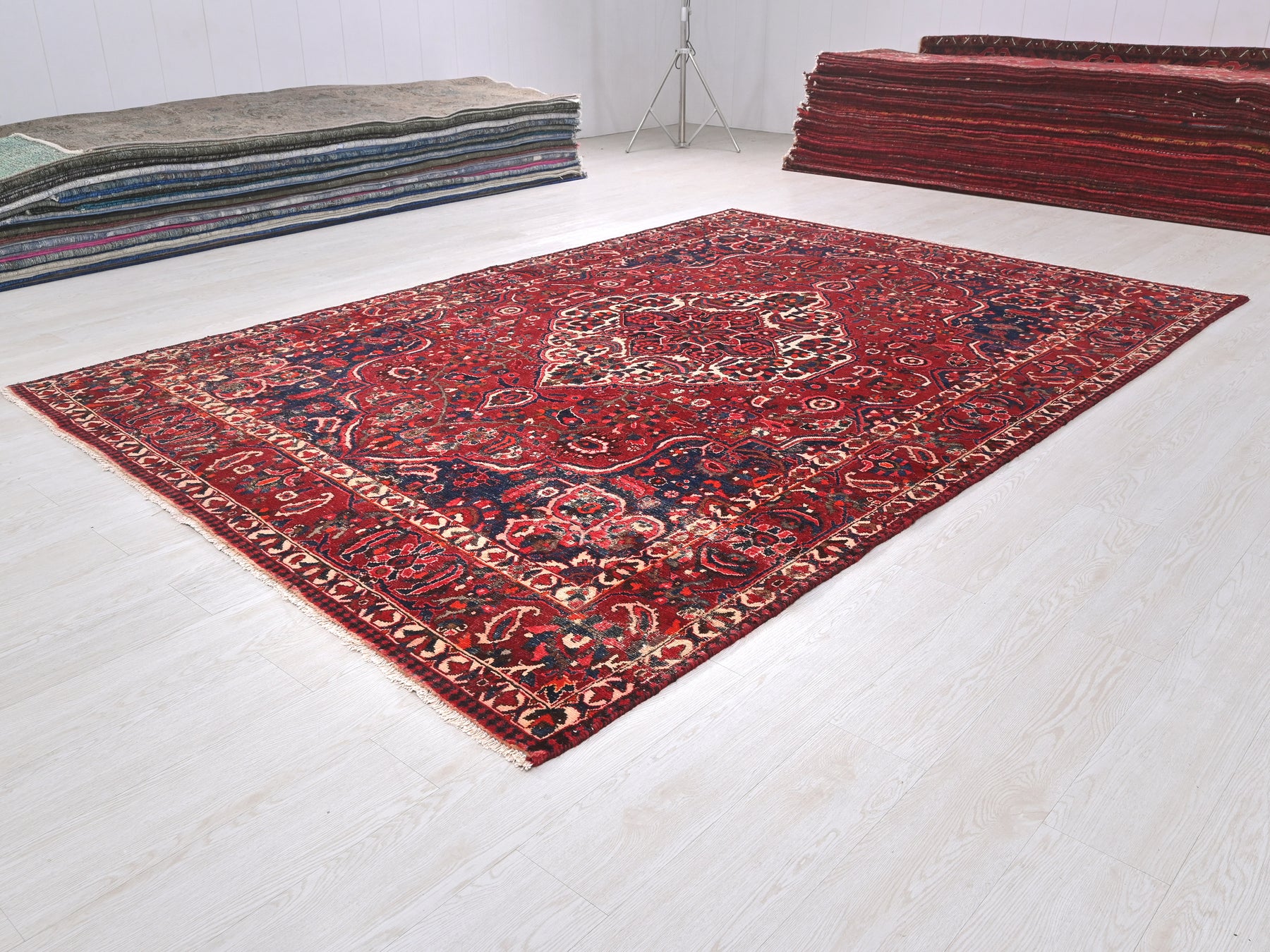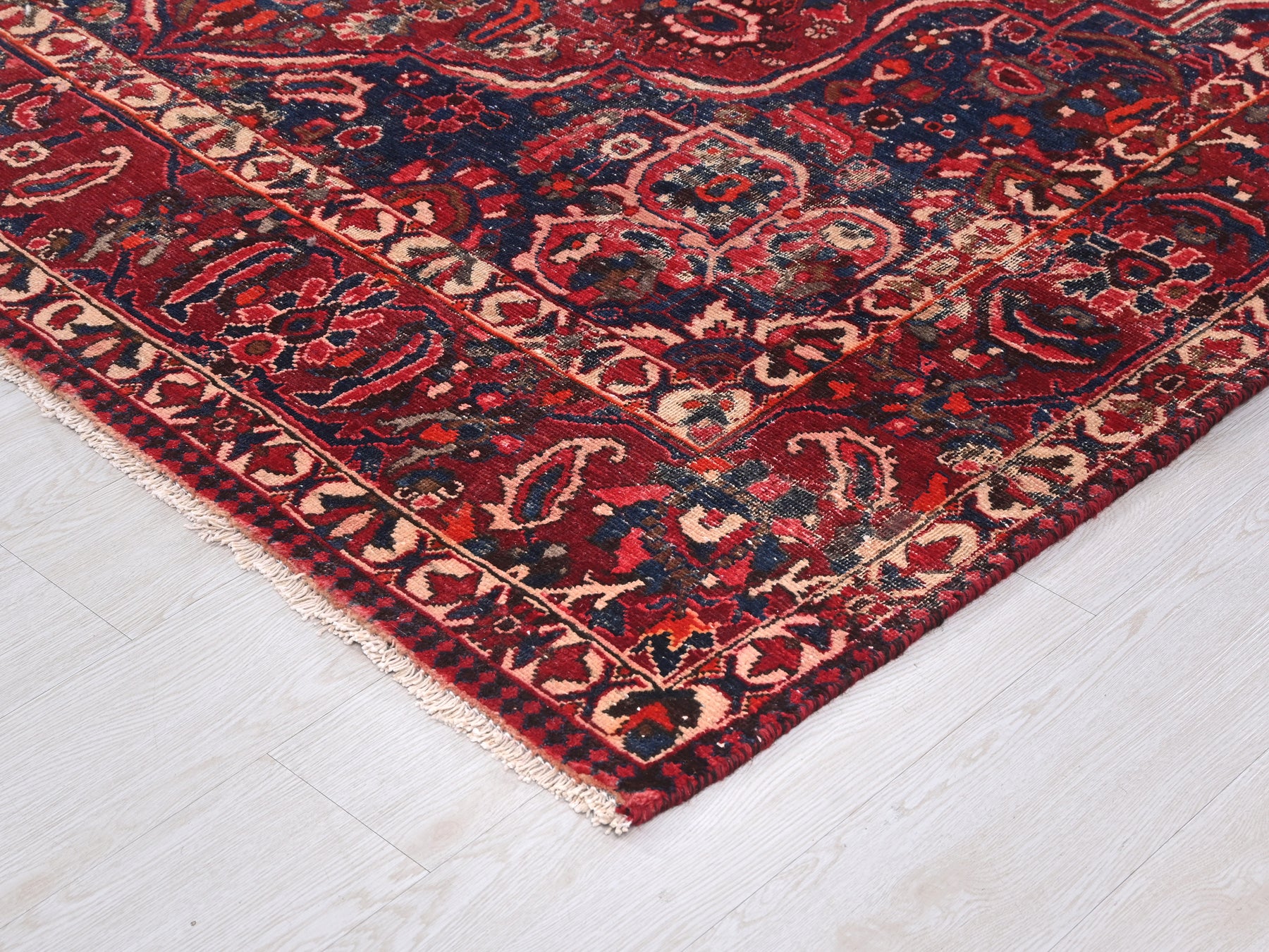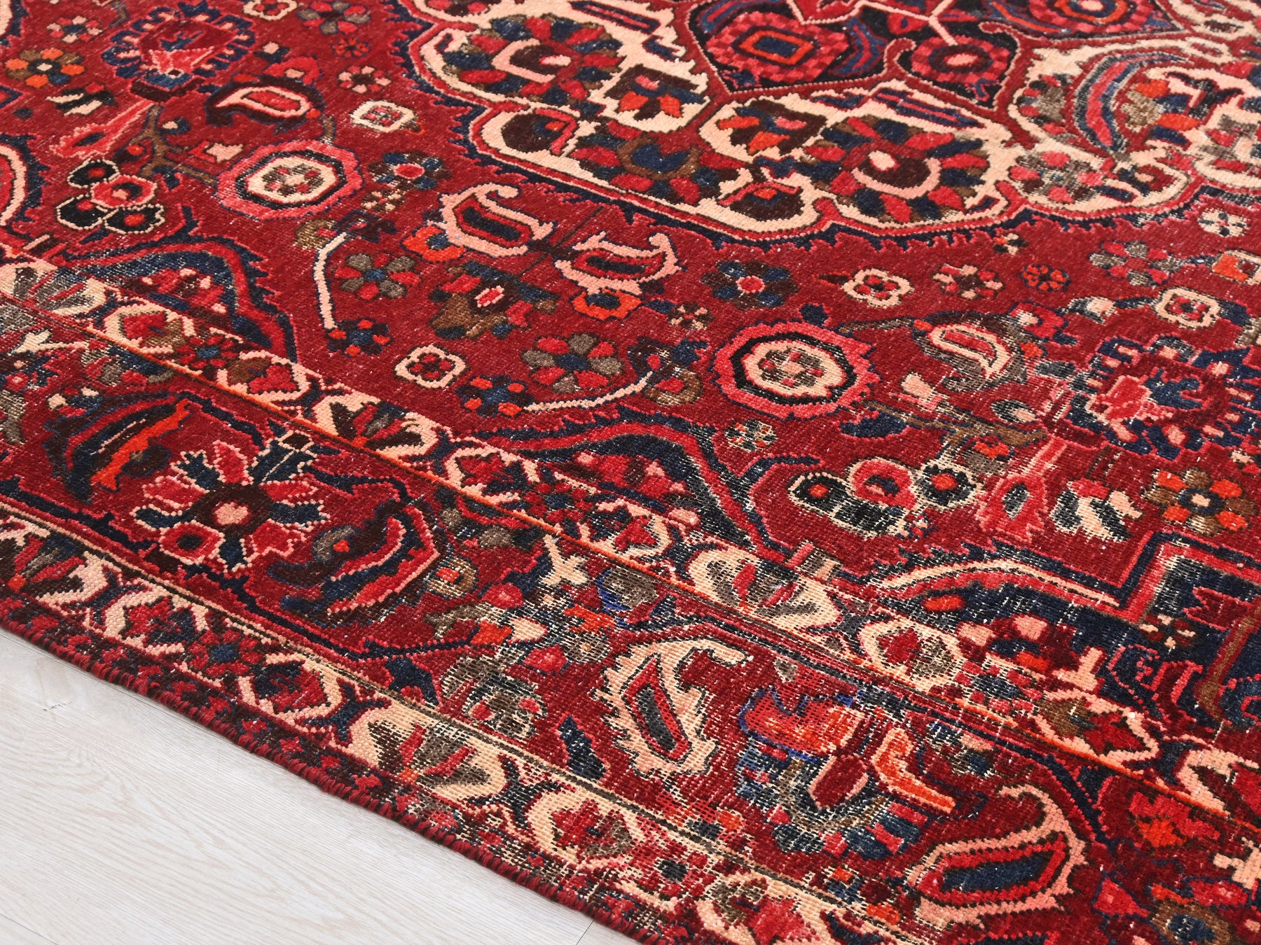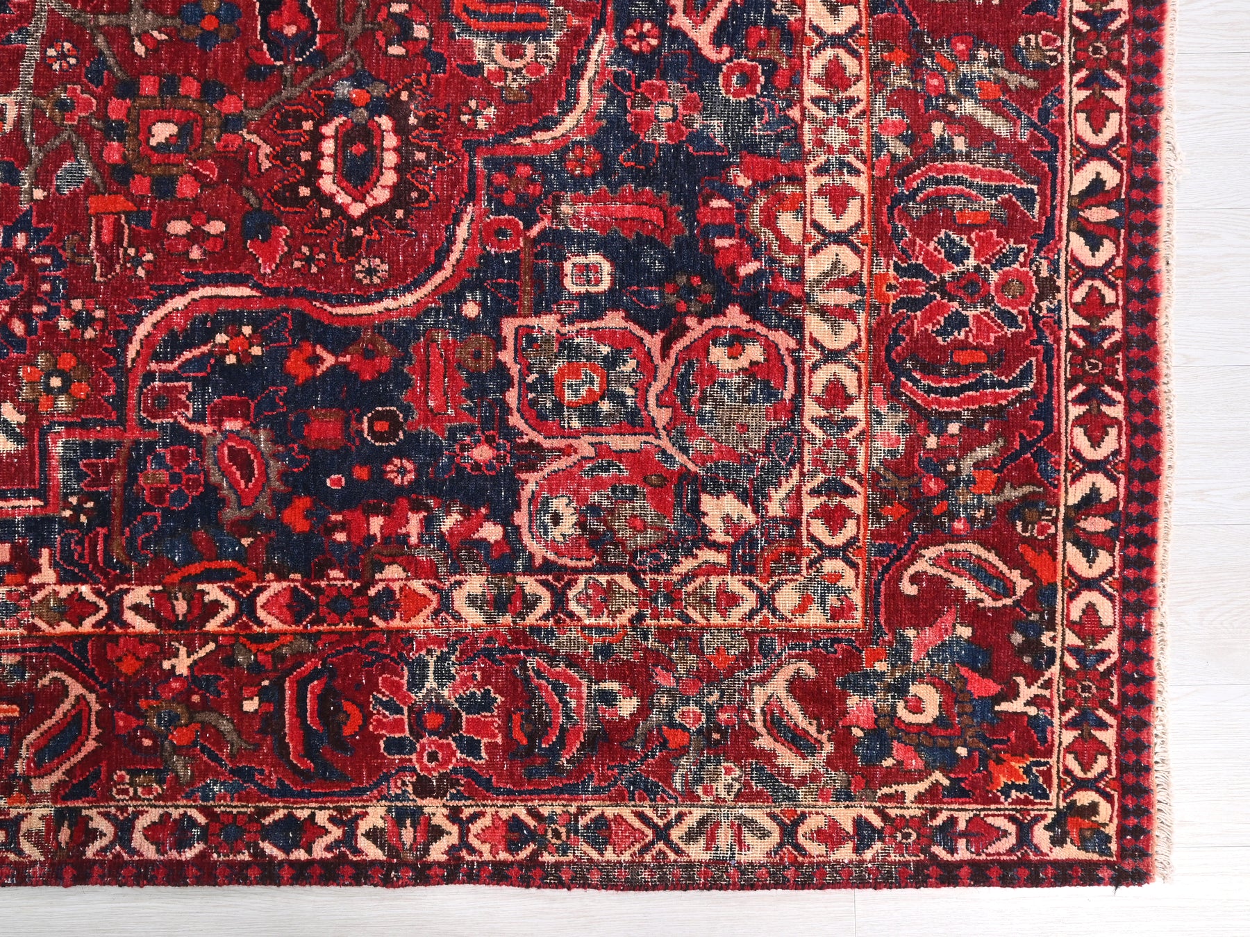 This is a hand-knotted, one-of-a-kind vintage rug. Due to the nature of this piece, there may be slight imperfections in its wear, shape, dimensions, and color. All of our rugs are professionally cleaned and repaired.