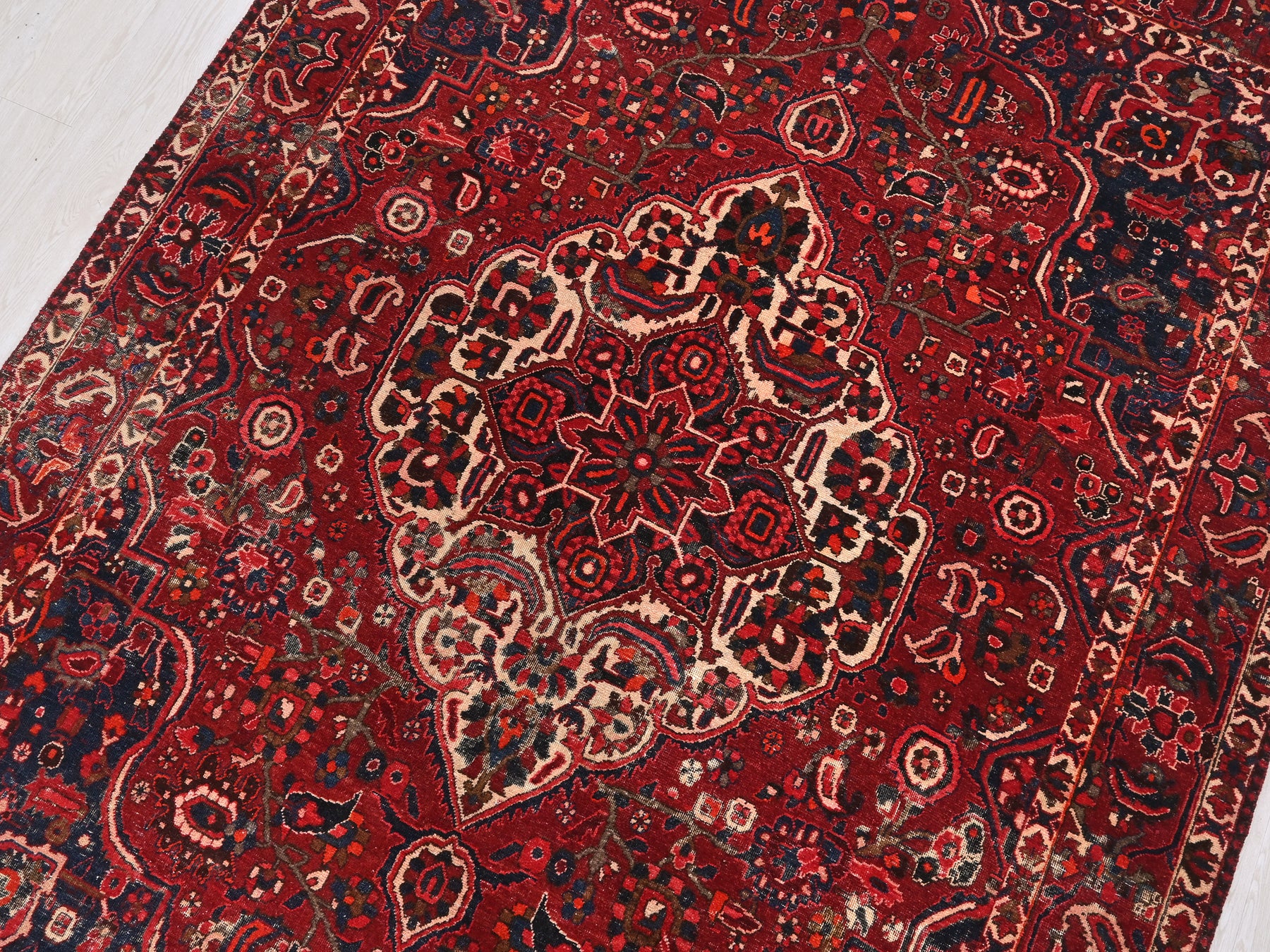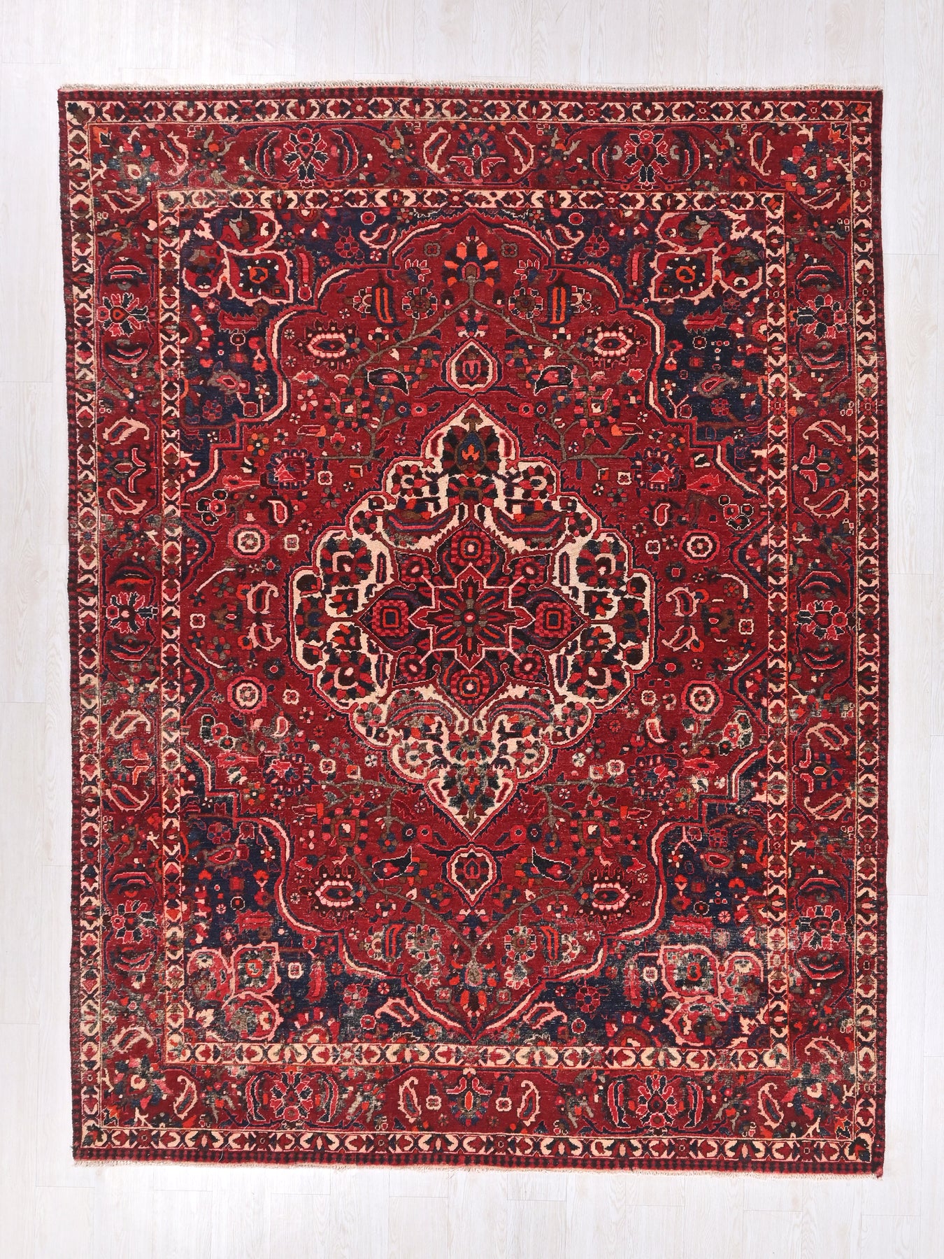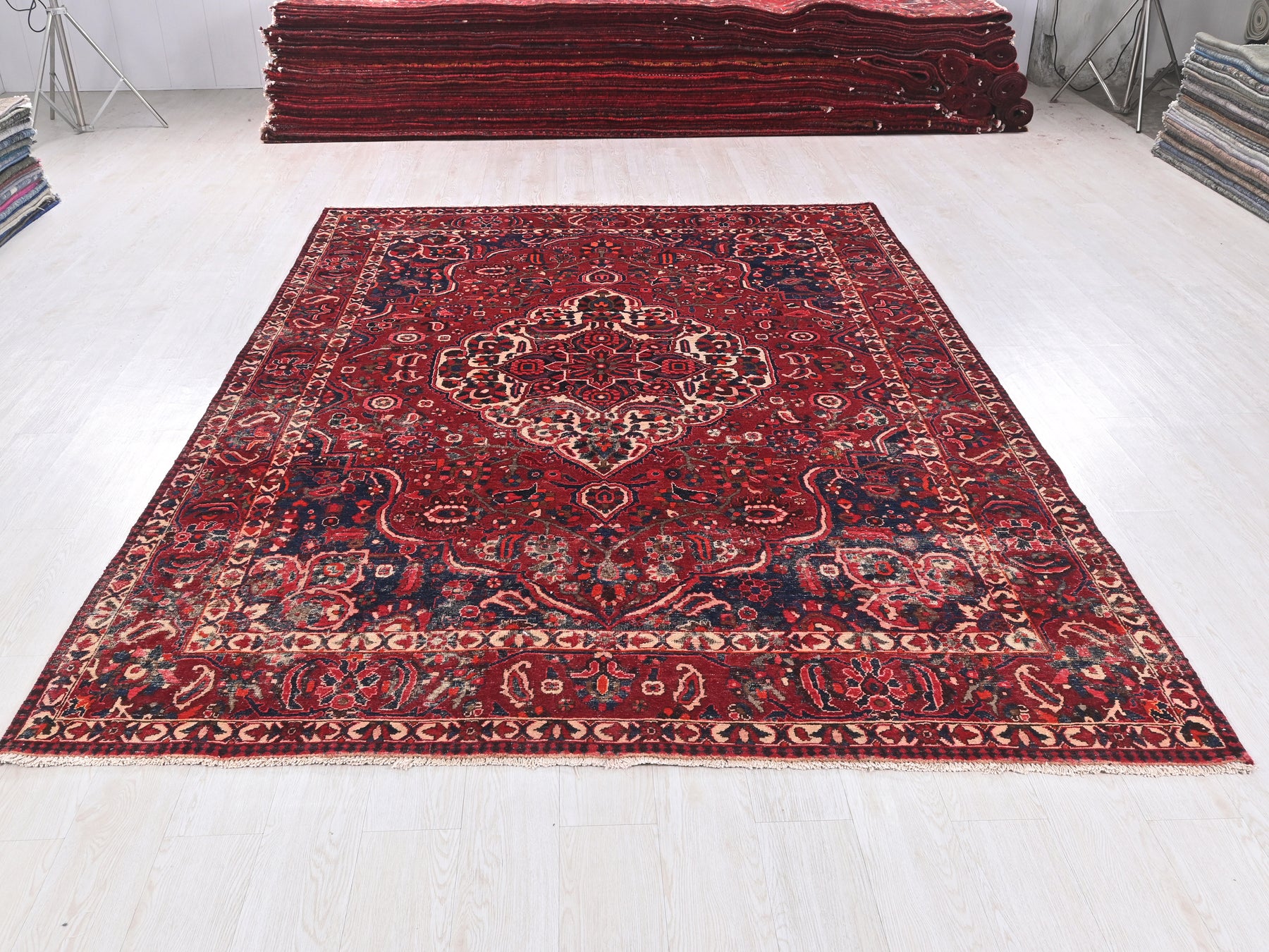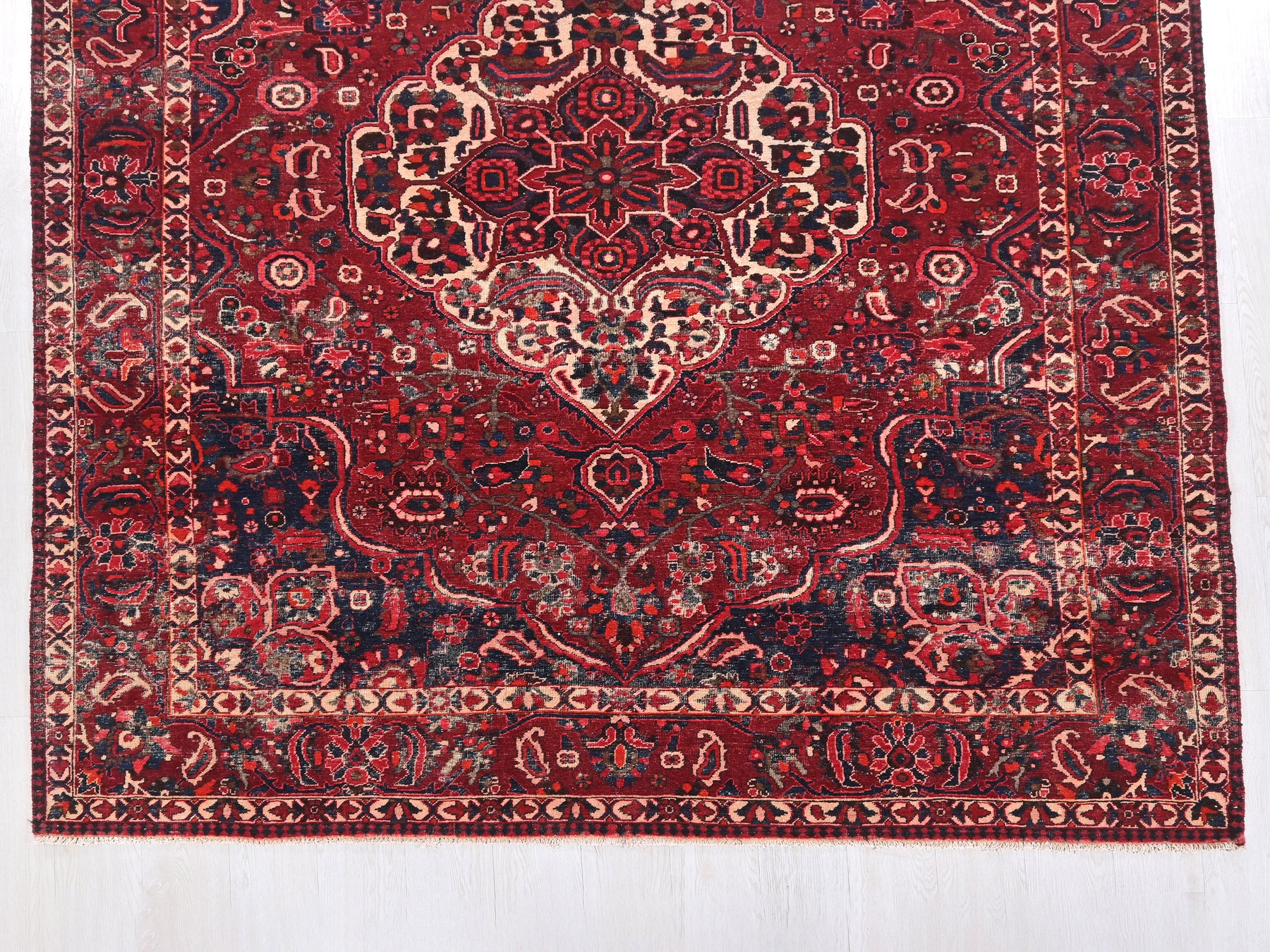 This is a hand-knotted, one-of-a-kind vintage rug. Due to the nature of this piece, there may be slight imperfections in its wear, shape, dimensions, and color. All of our rugs are professionally cleaned and repaired.