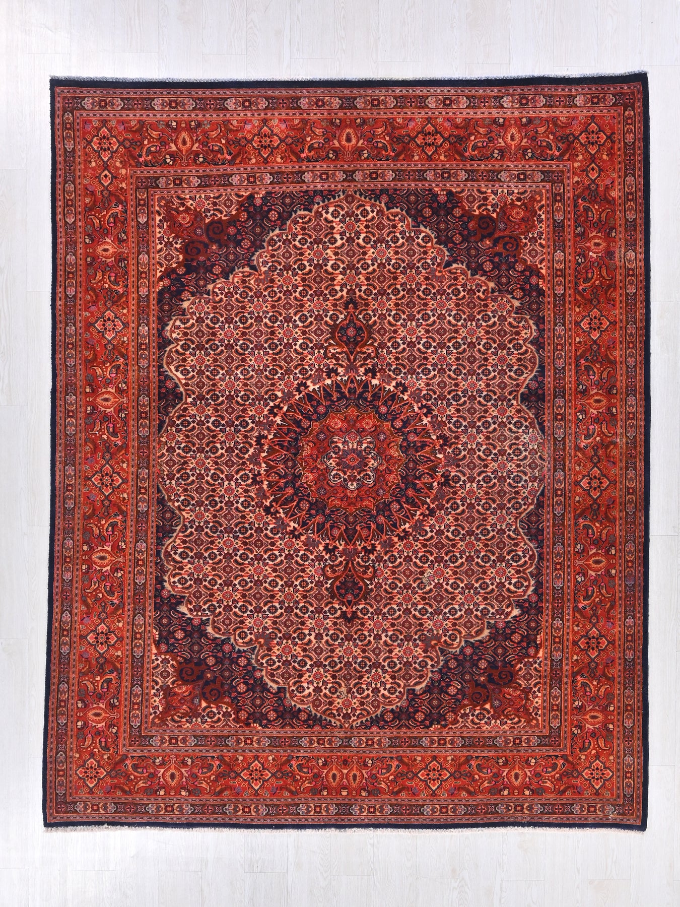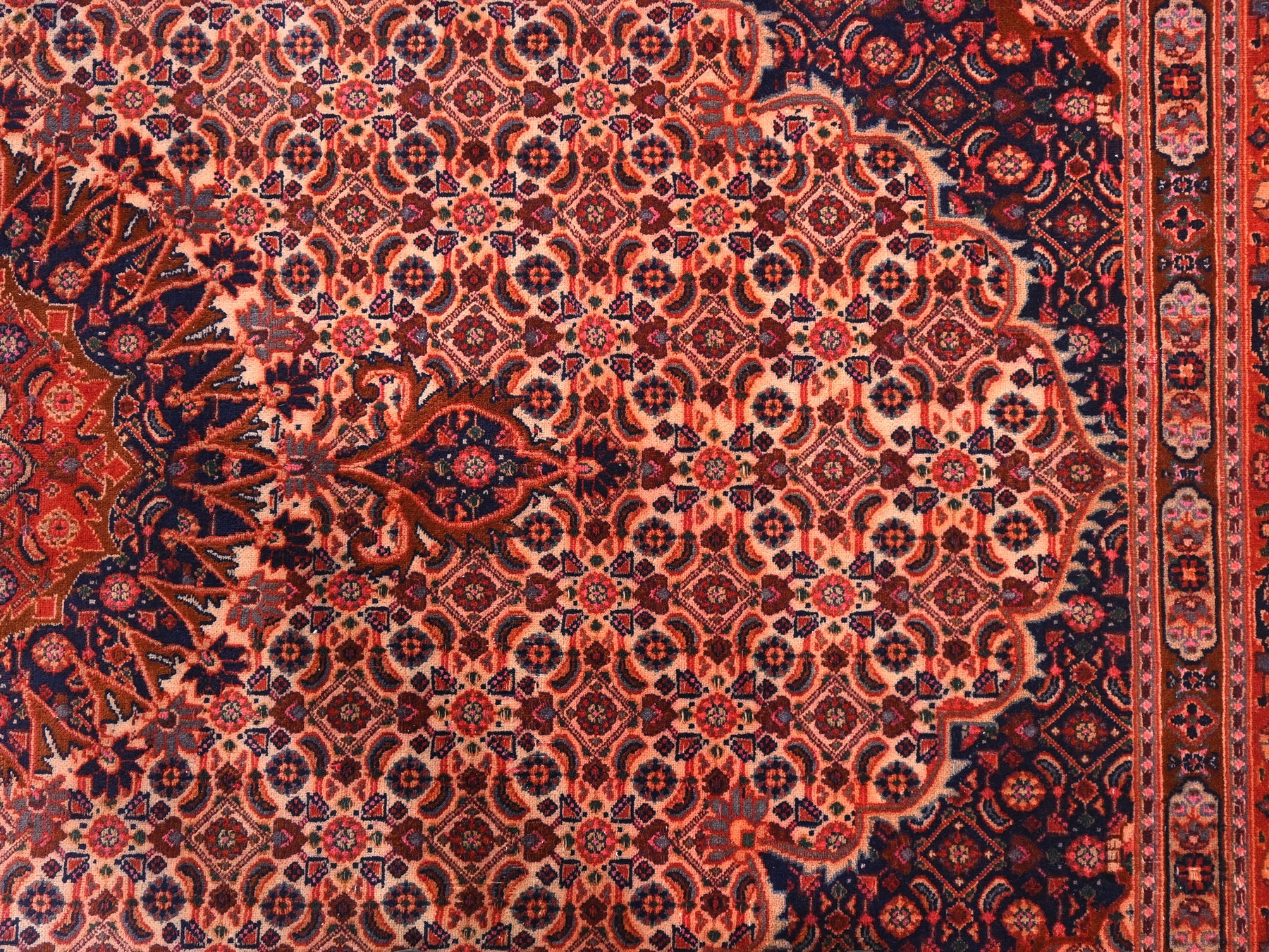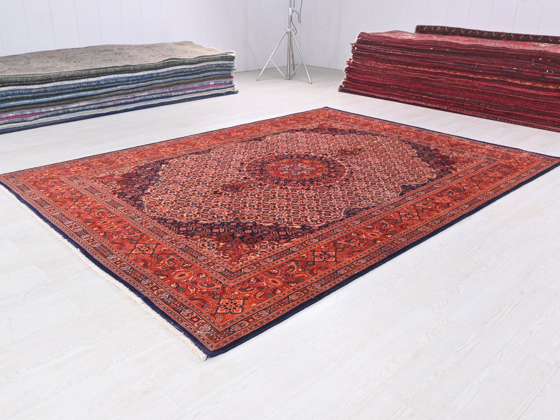 This is a hand-knotted, one-of-a-kind vintage rug. Due to the nature of this piece, there may be slight imperfections in its wear, shape, dimensions, and color. All of our rugs are professionally cleaned and repaired.