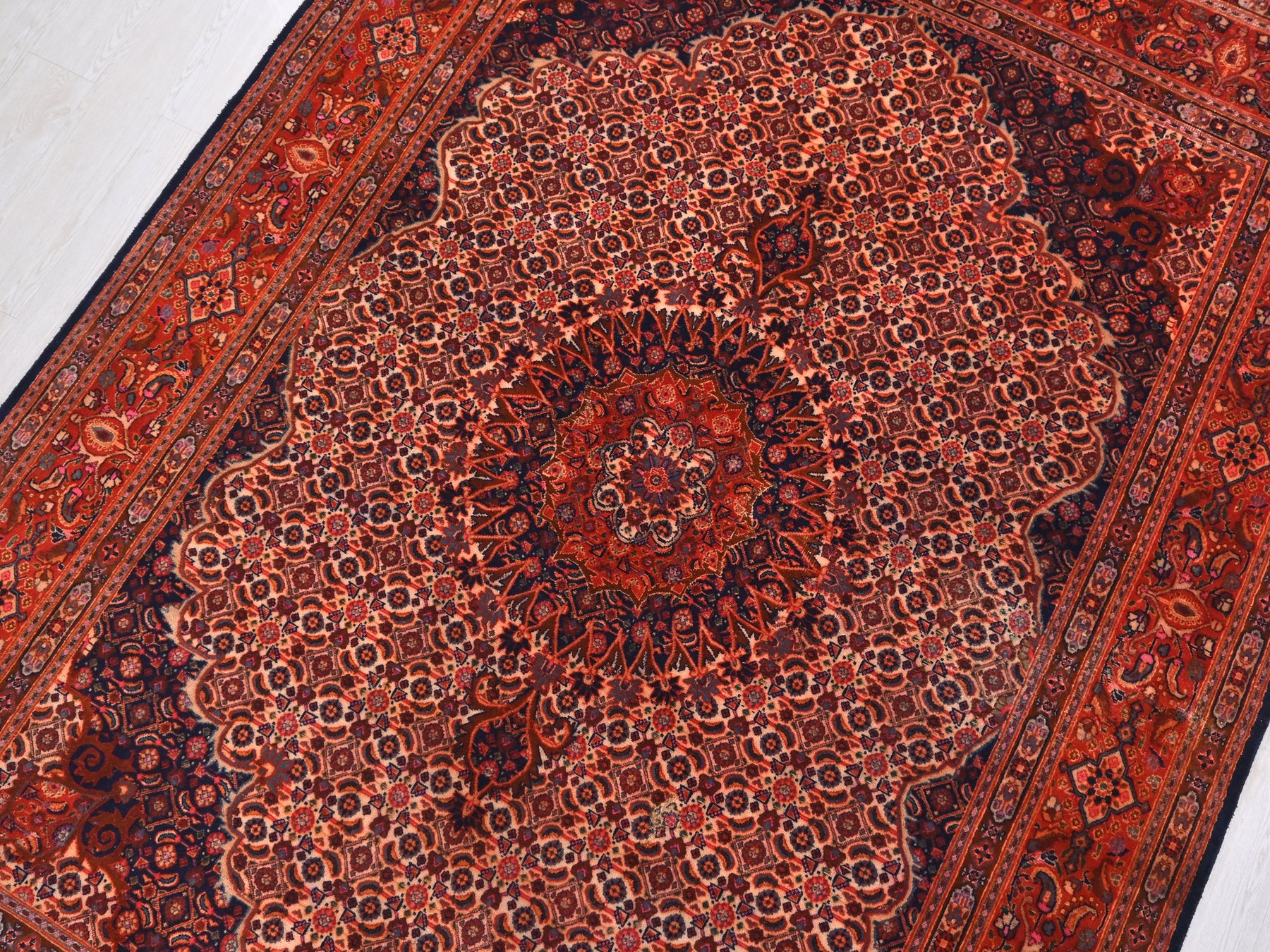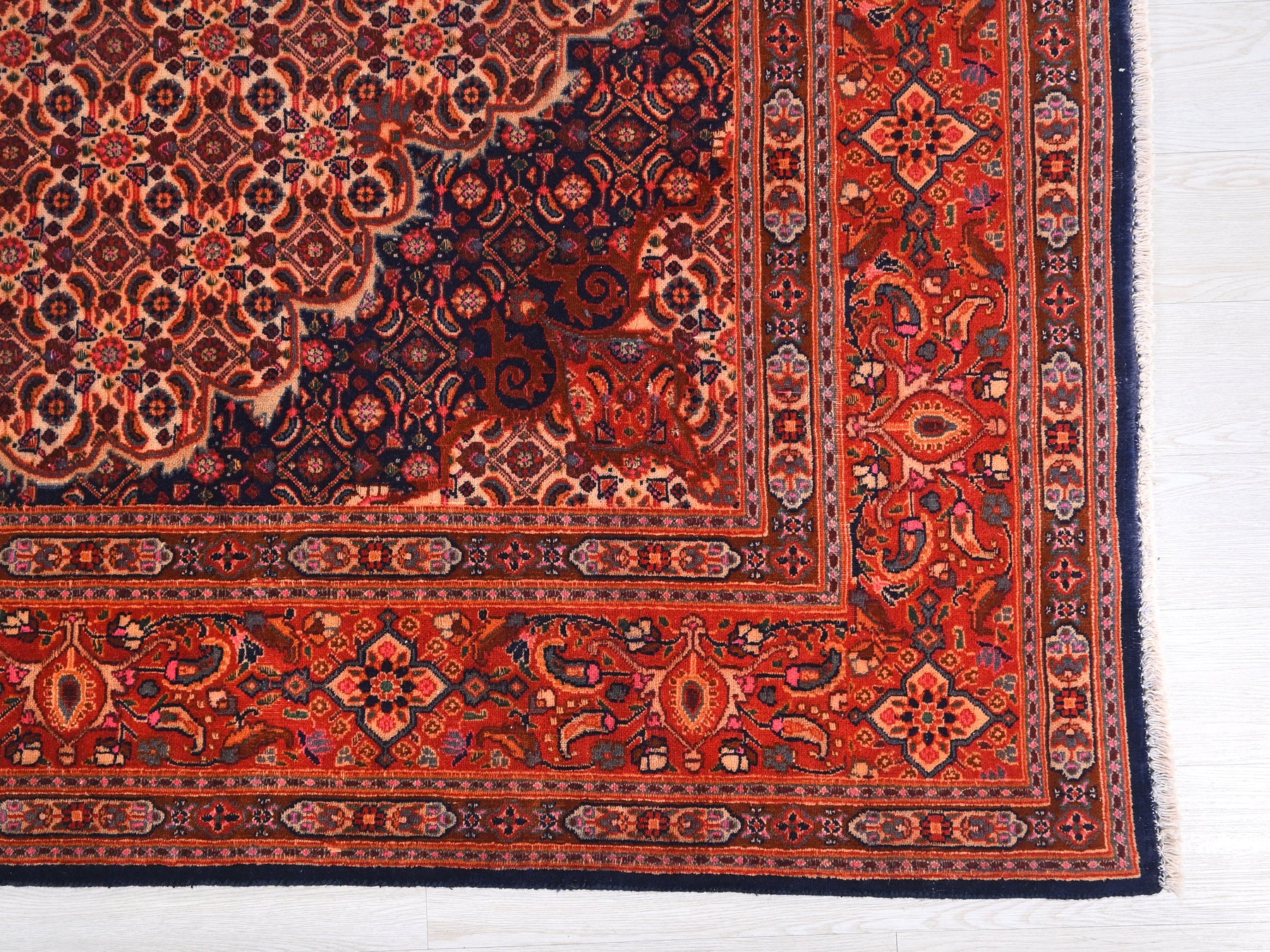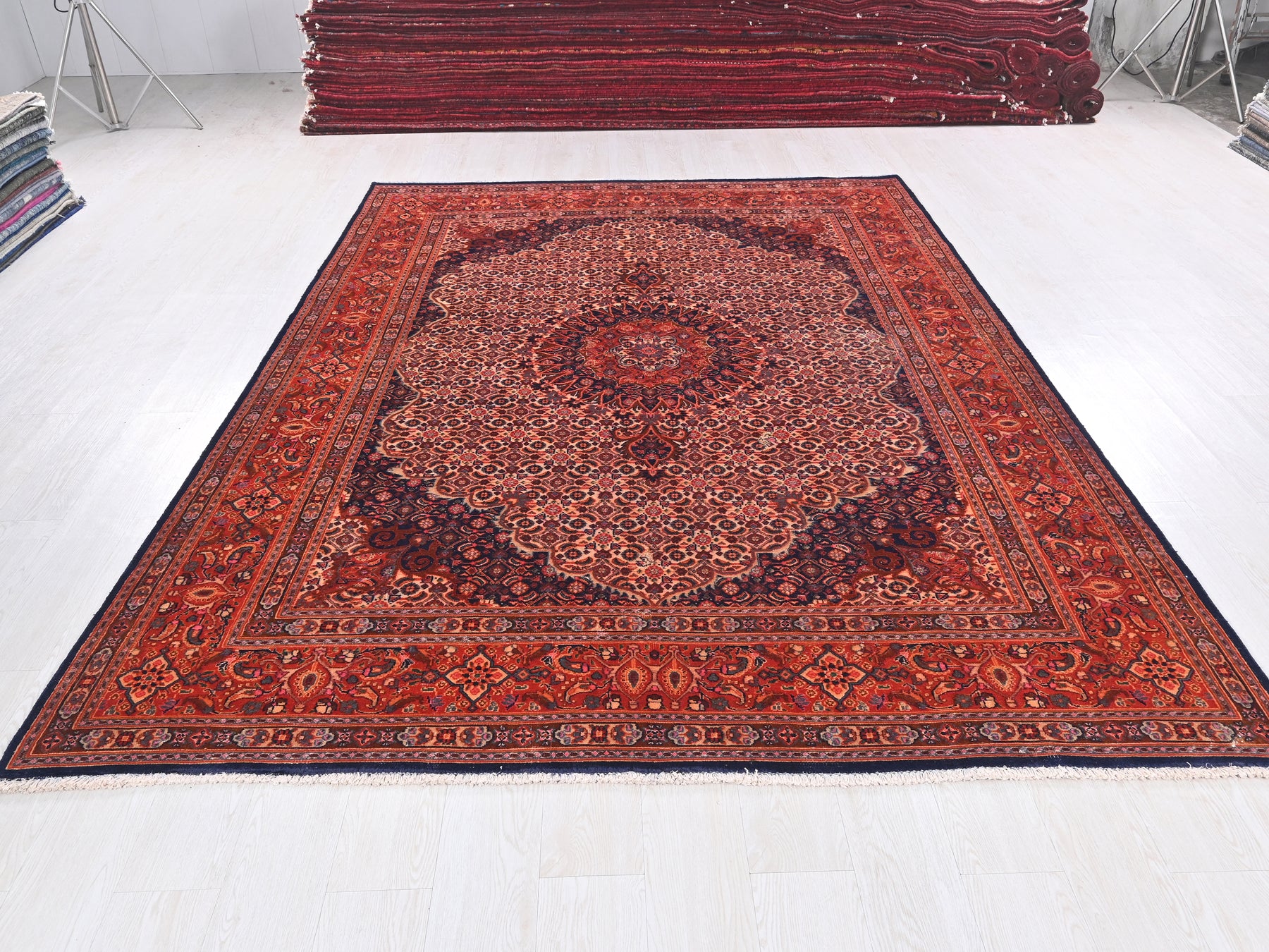 This is a hand-knotted, one-of-a-kind vintage rug. Due to the nature of this piece, there may be slight imperfections in its wear, shape, dimensions, and color. All of our rugs are professionally cleaned and repaired.