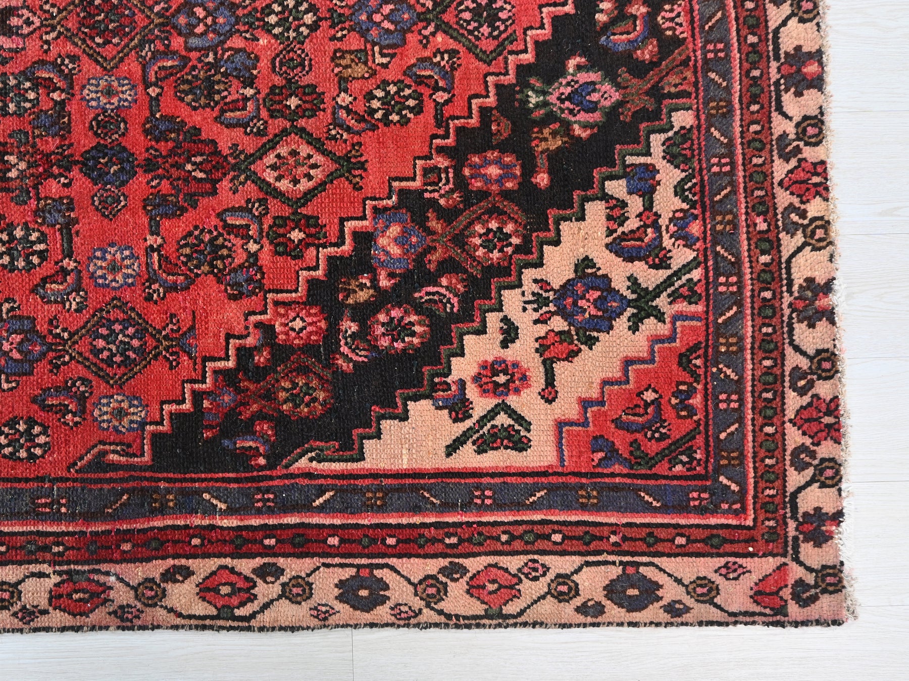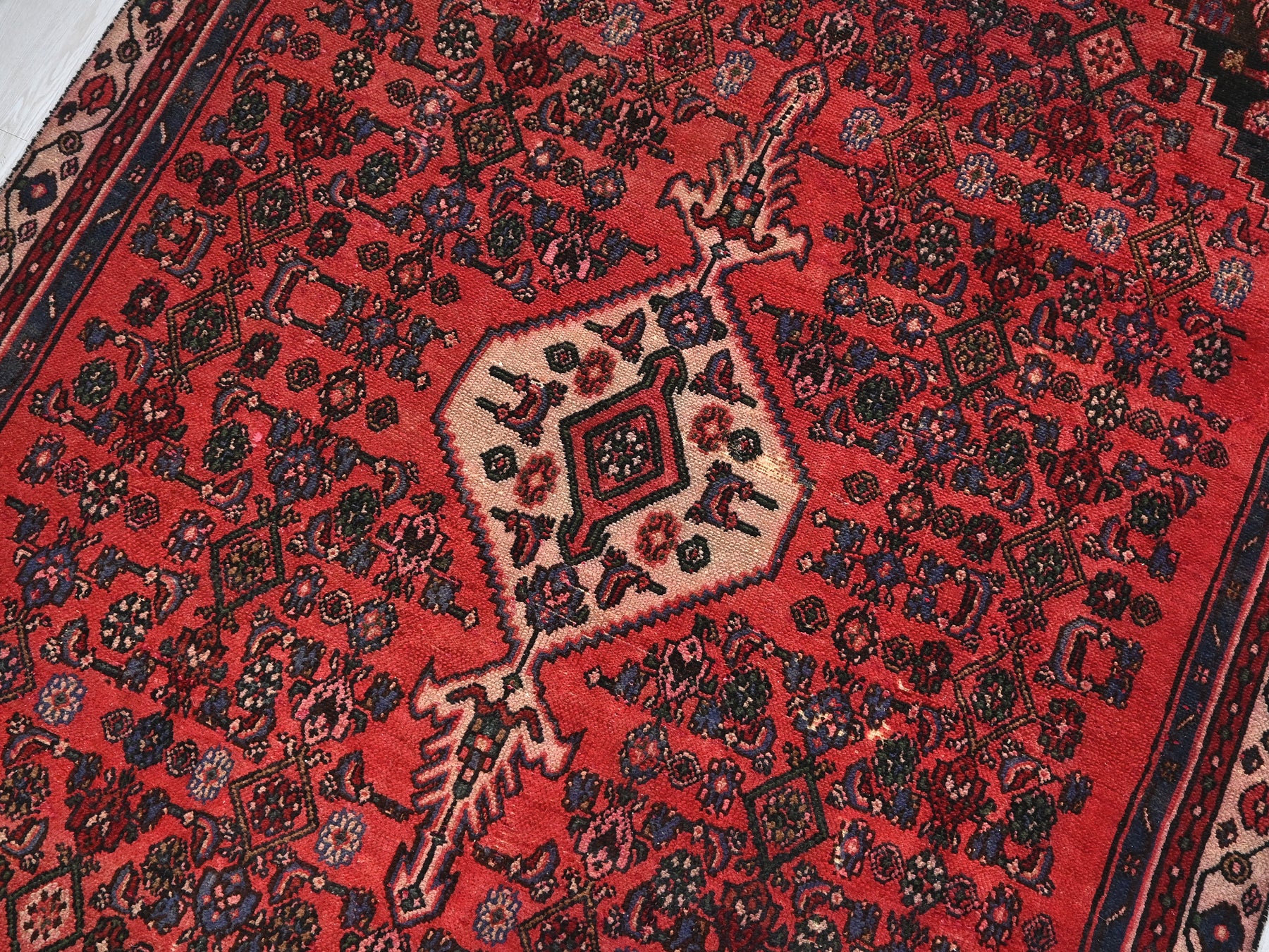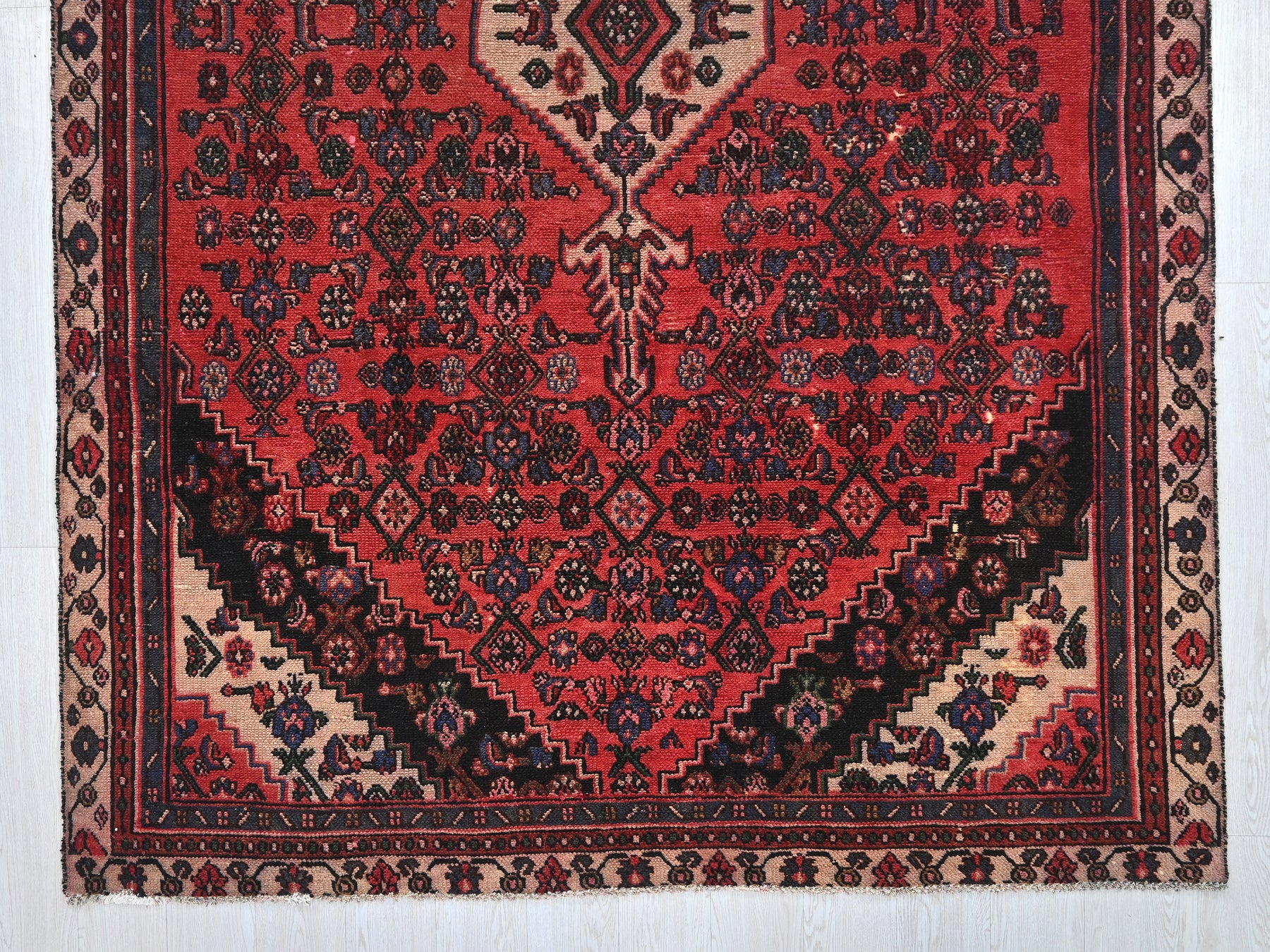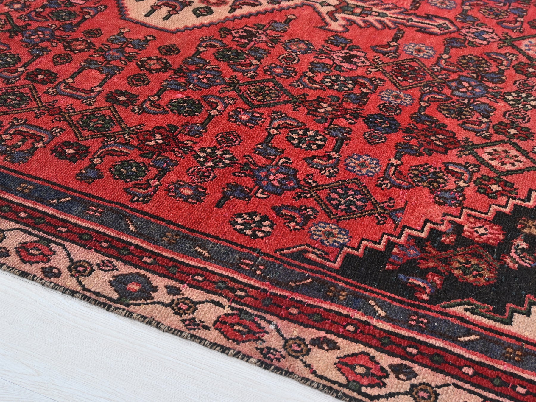 This is a hand-knotted, one-of-a-kind vintage rug. Due to the nature of this piece, there may be slight imperfections in its wear, shape, dimensions, and color. All of our rugs are professionally cleaned and repaired.