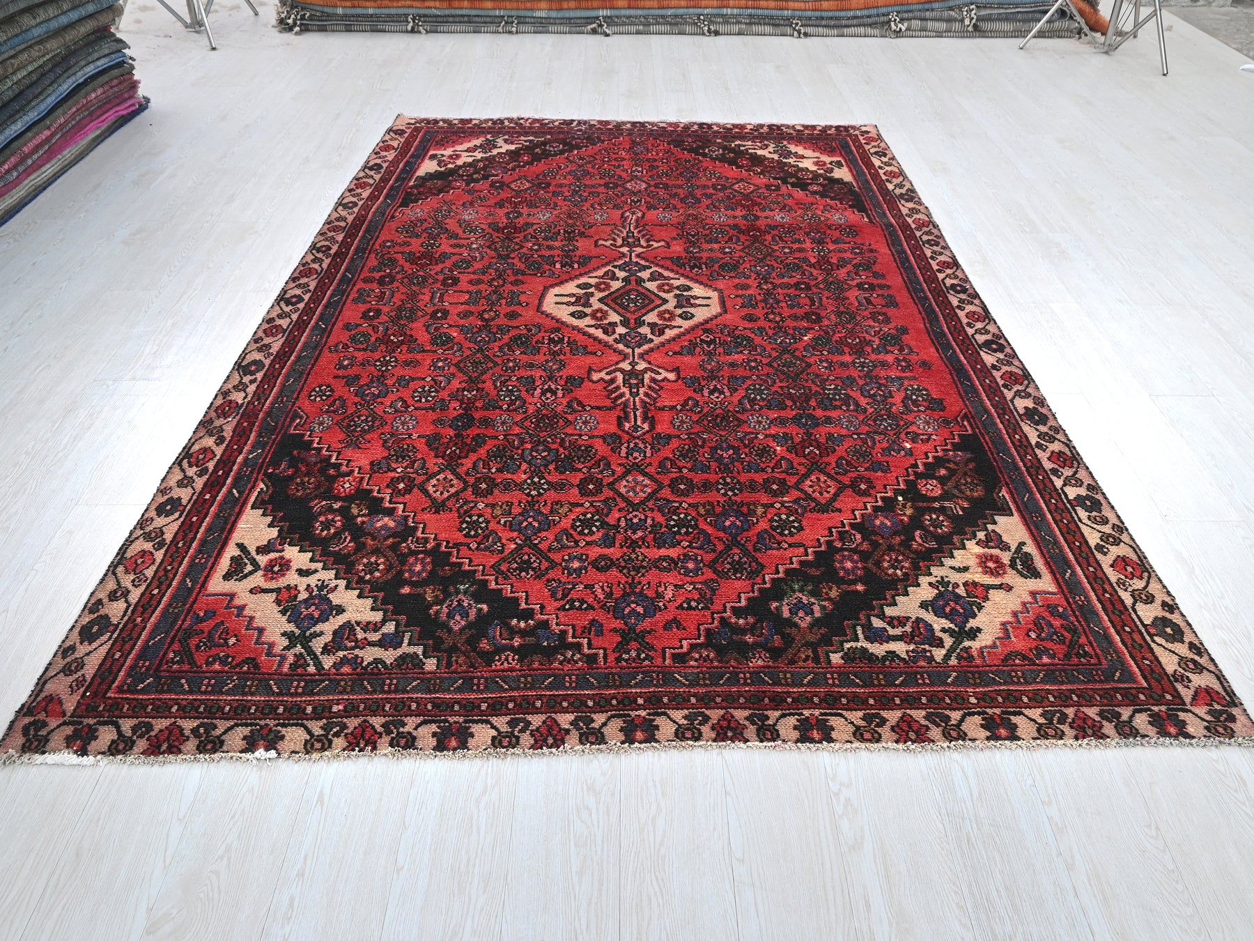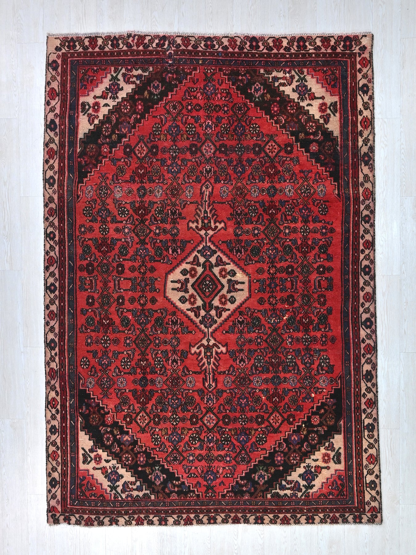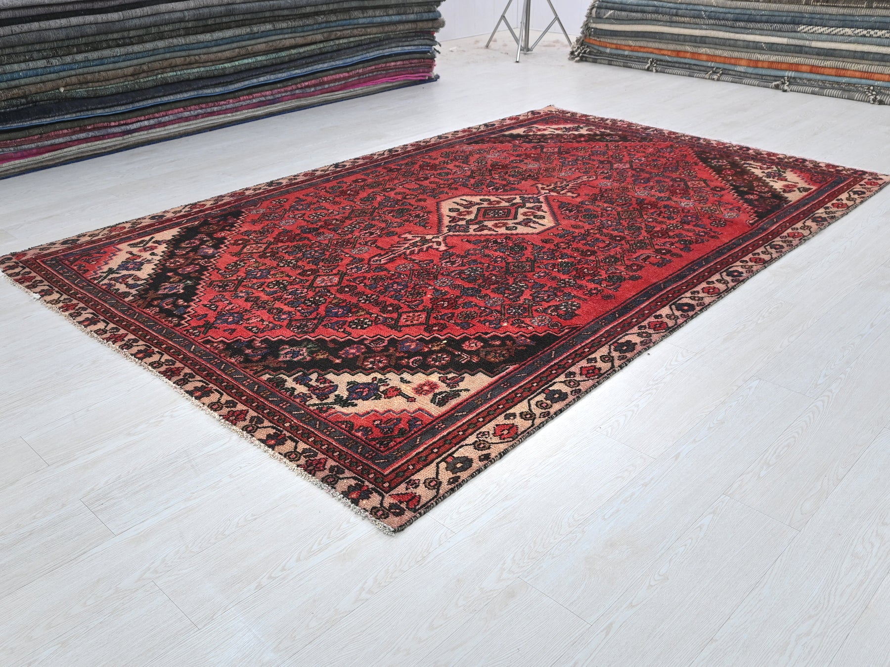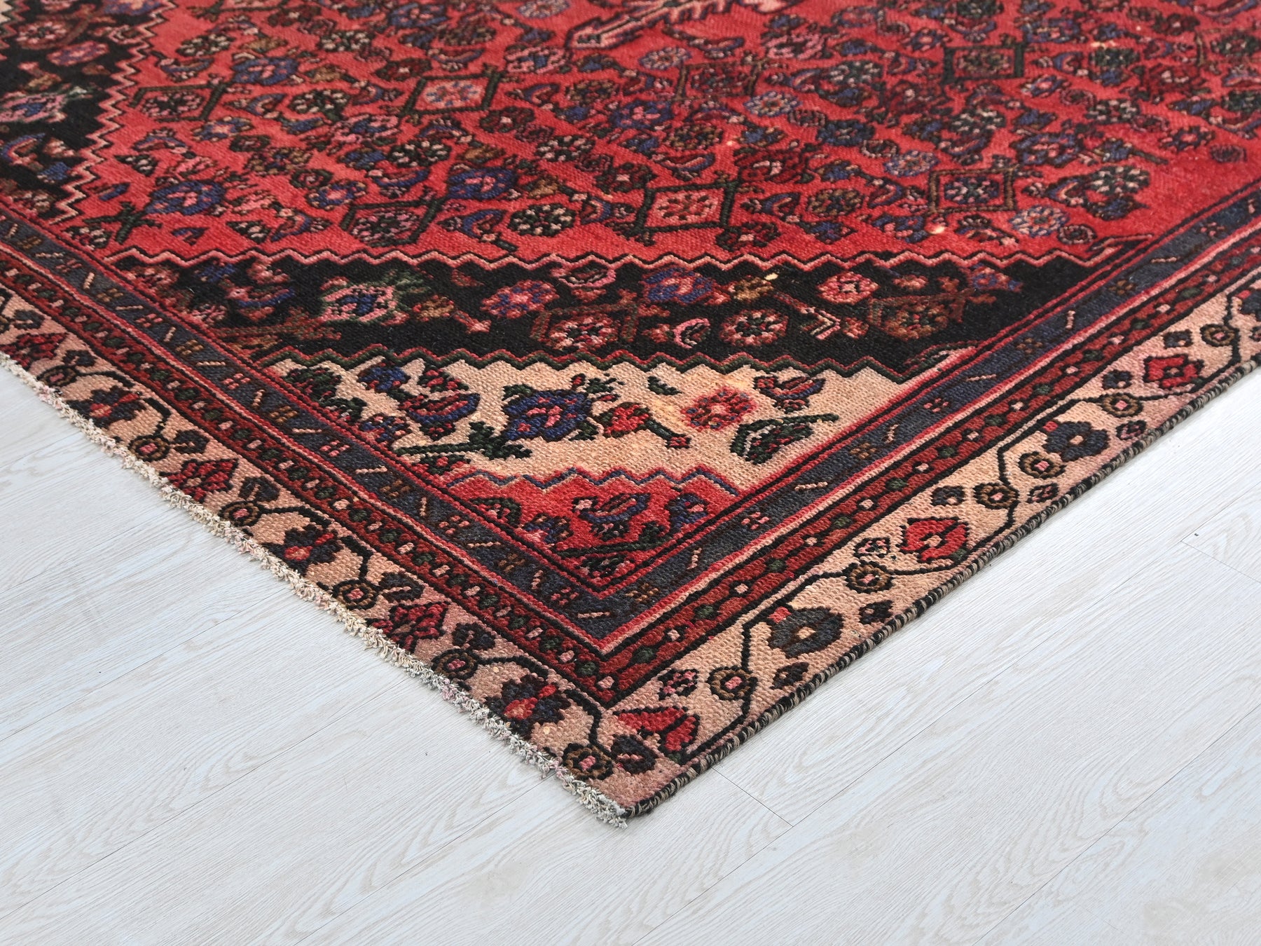 This is a hand-knotted, one-of-a-kind vintage rug. Due to the nature of this piece, there may be slight imperfections in its wear, shape, dimensions, and color. All of our rugs are professionally cleaned and repaired.