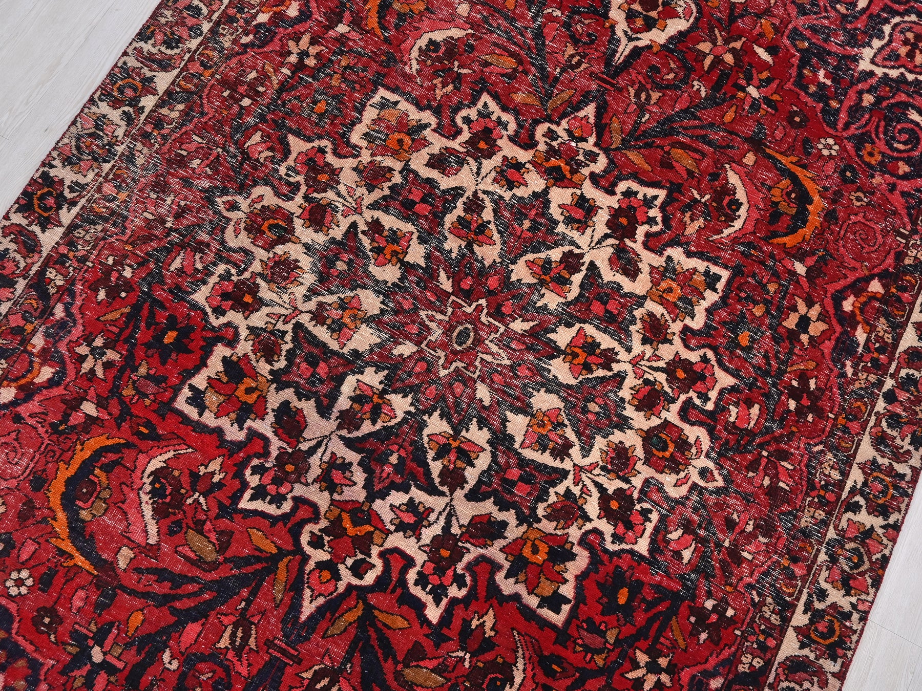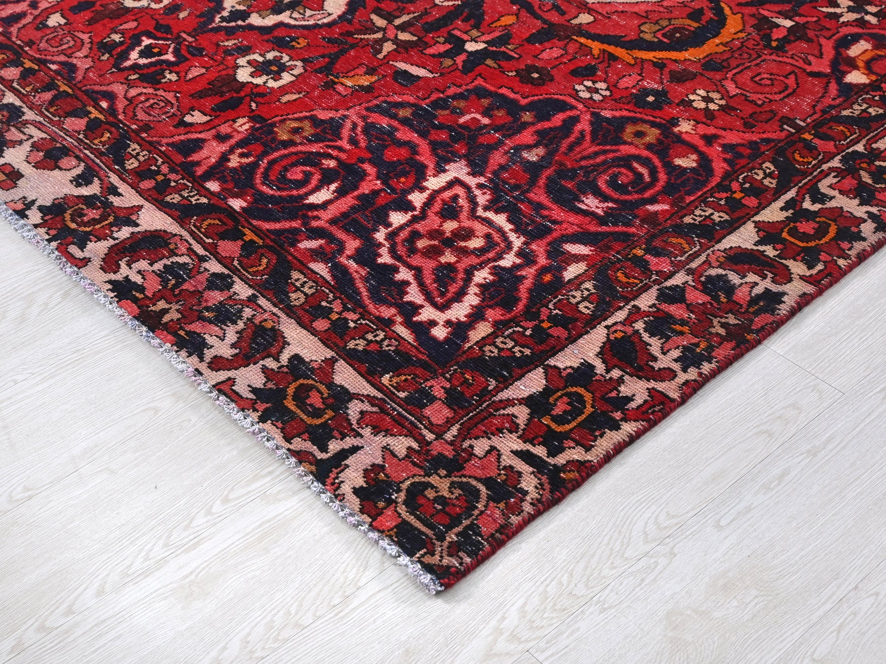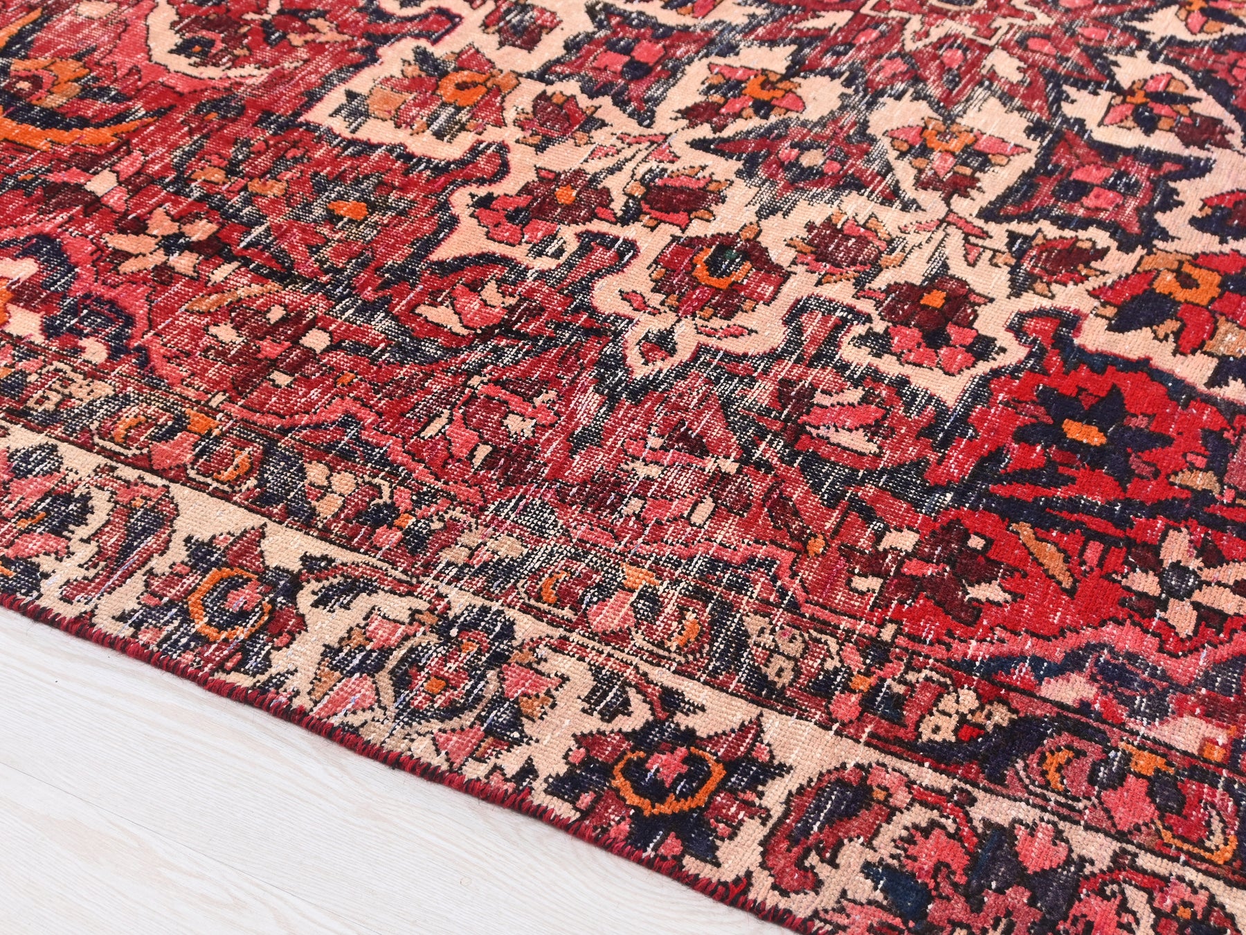 This is a hand-knotted, one-of-a-kind vintage rug. Due to the nature of this piece, there may be slight imperfections in its wear, shape, dimensions, and color. All of our rugs are professionally cleaned and repaired.