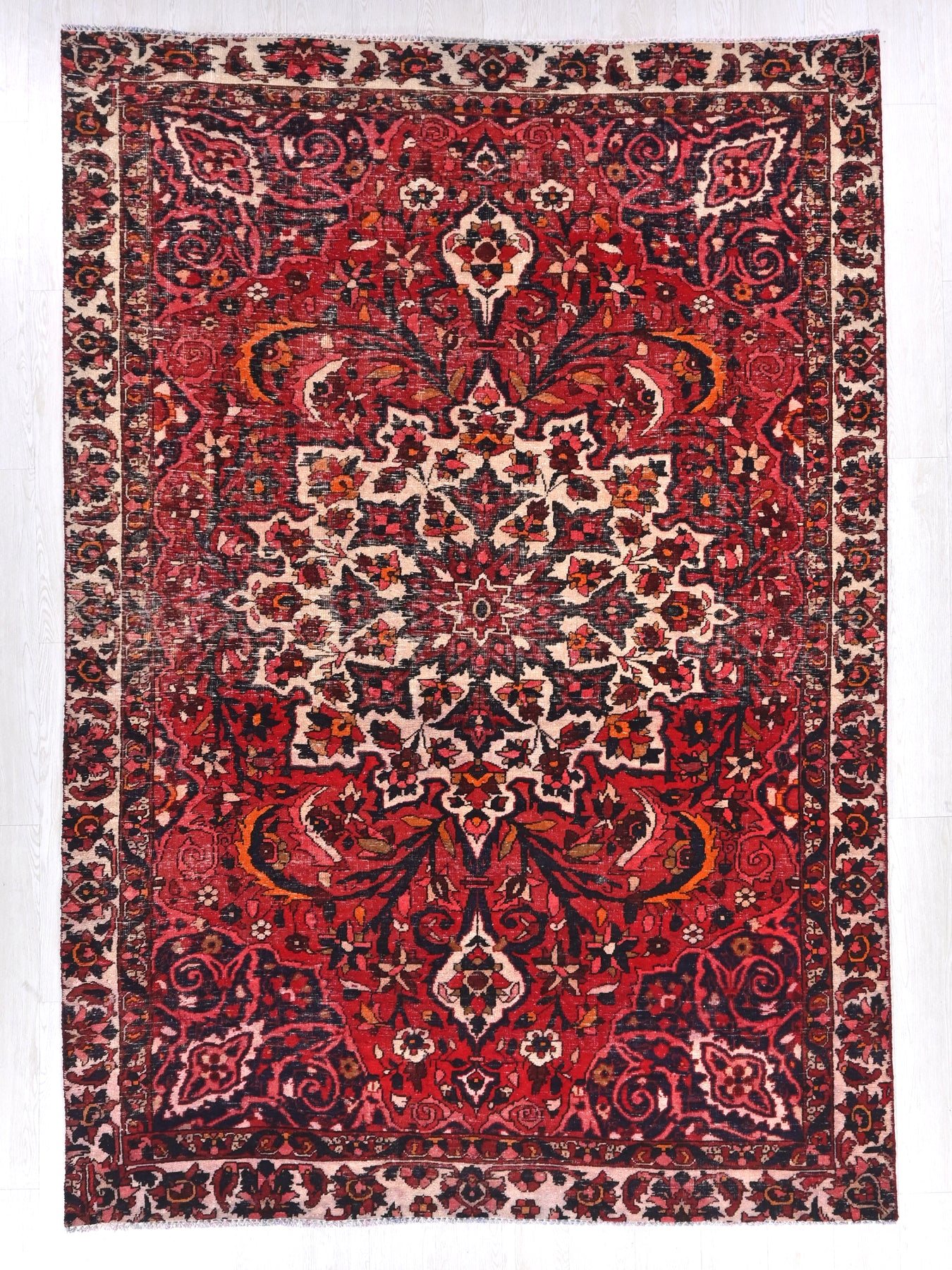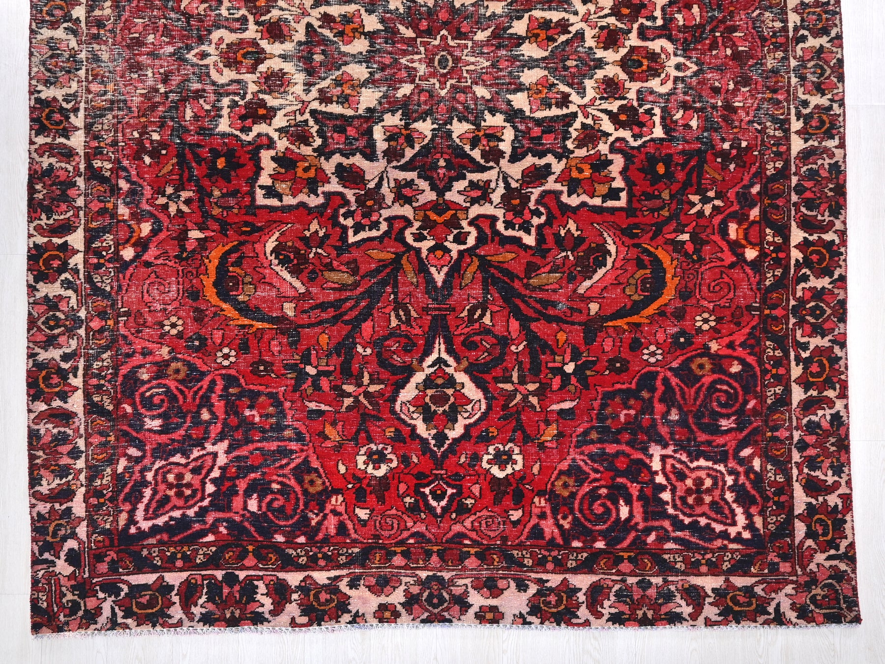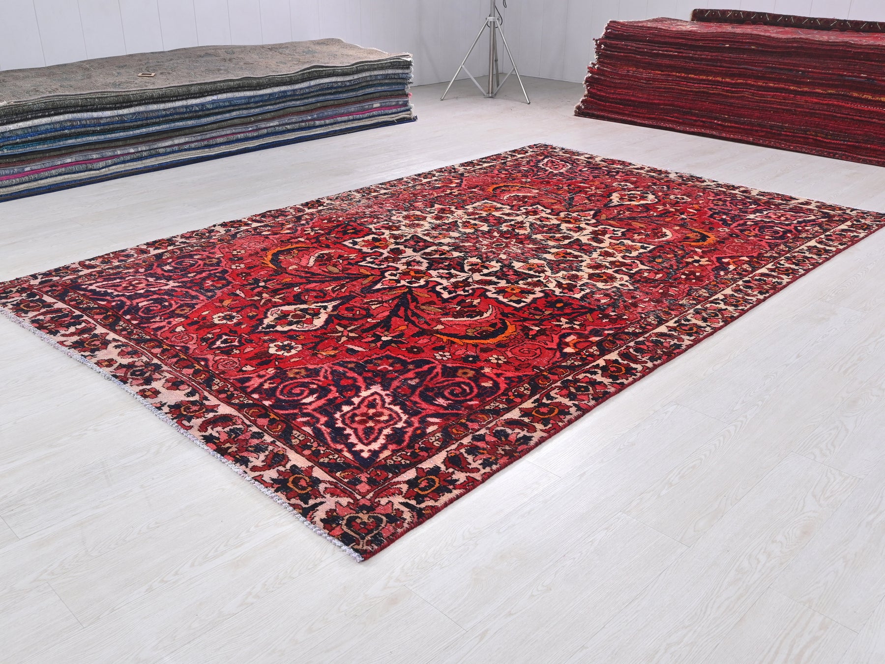 This is a hand-knotted, one-of-a-kind vintage rug. Due to the nature of this piece, there may be slight imperfections in its wear, shape, dimensions, and color. All of our rugs are professionally cleaned and repaired.