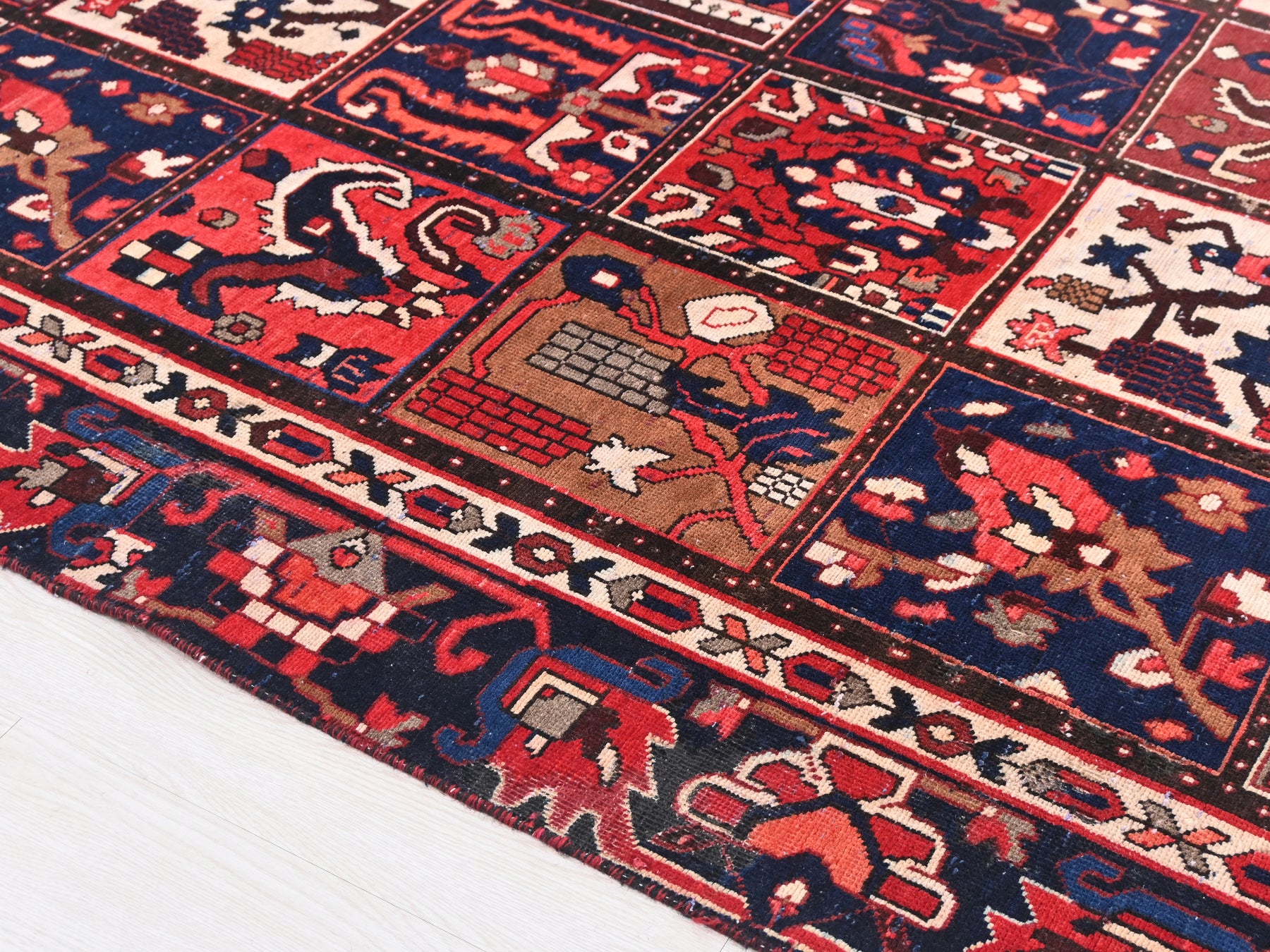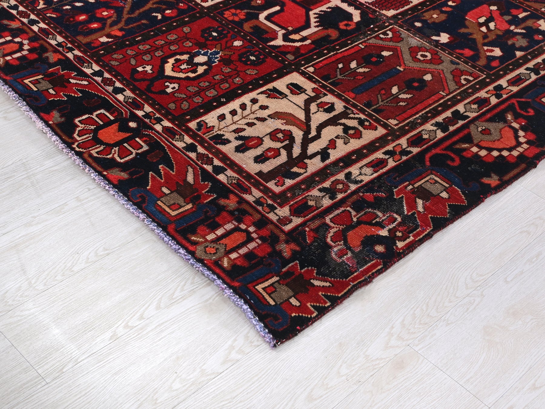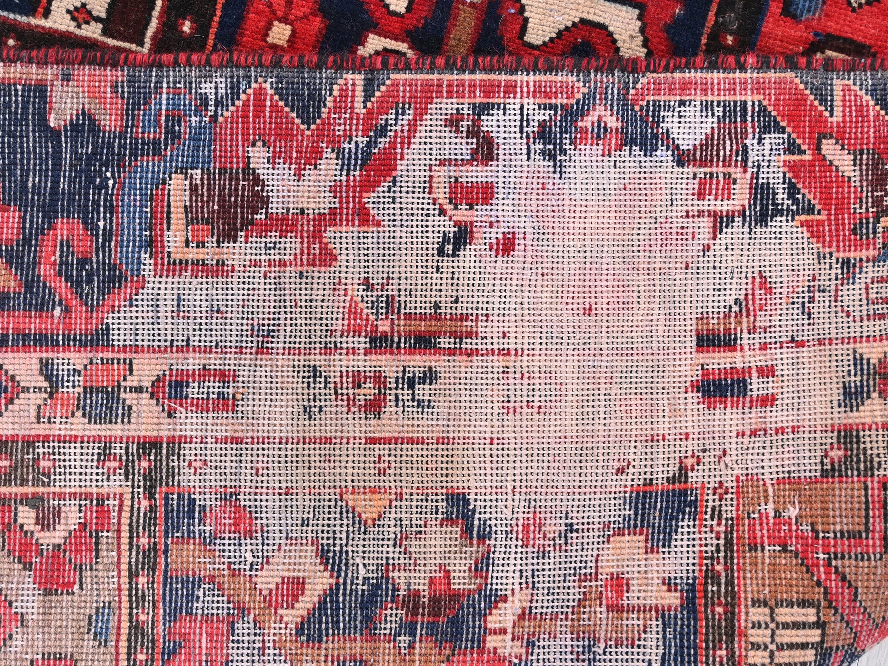 This is a hand-knotted, one-of-a-kind vintage rug. Due to the nature of this piece, there may be slight imperfections in its wear, shape, dimensions, and color. All of our rugs are professionally cleaned and repaired.