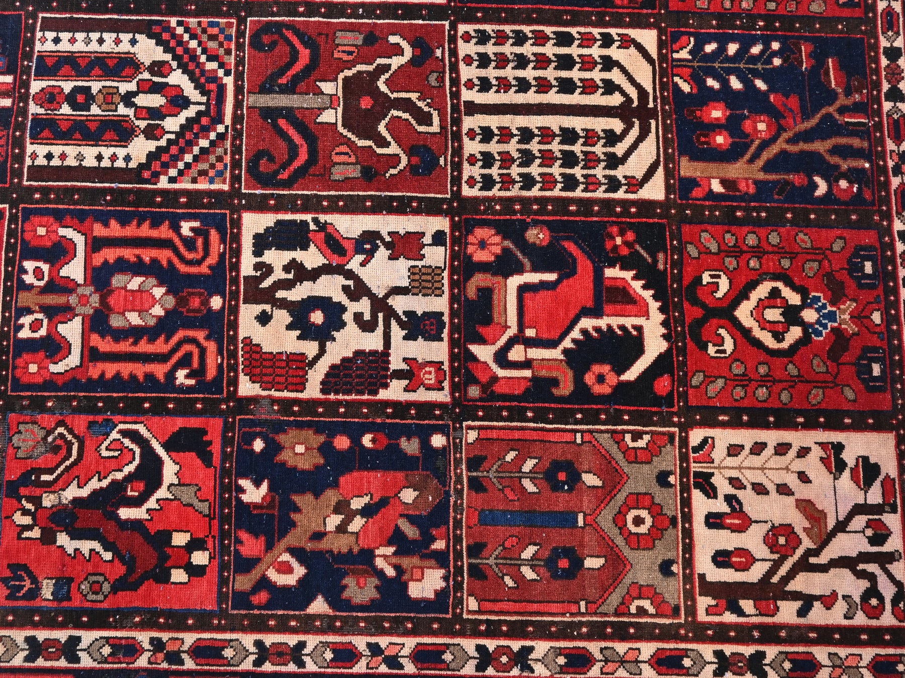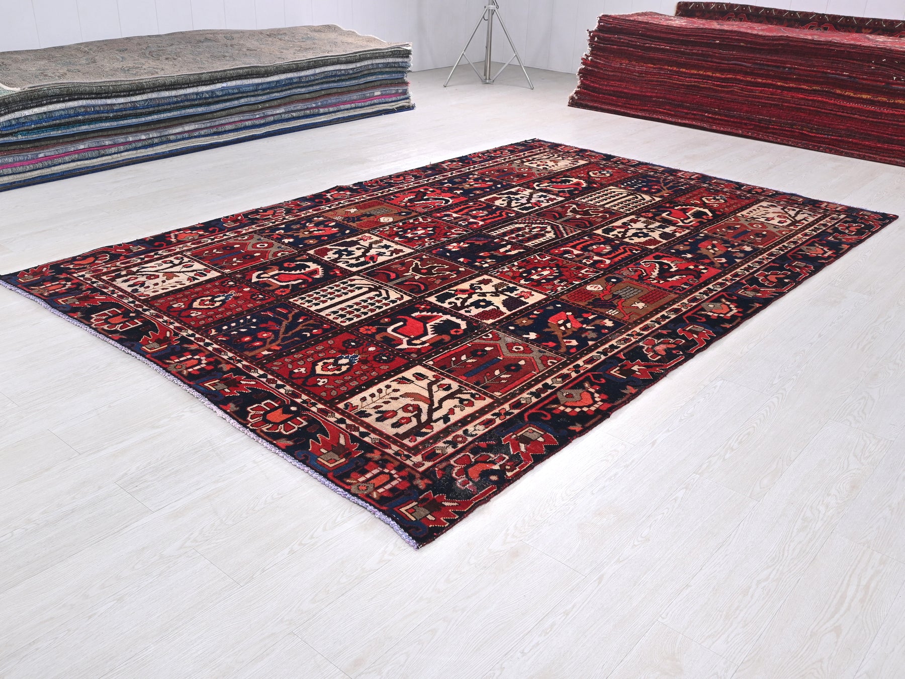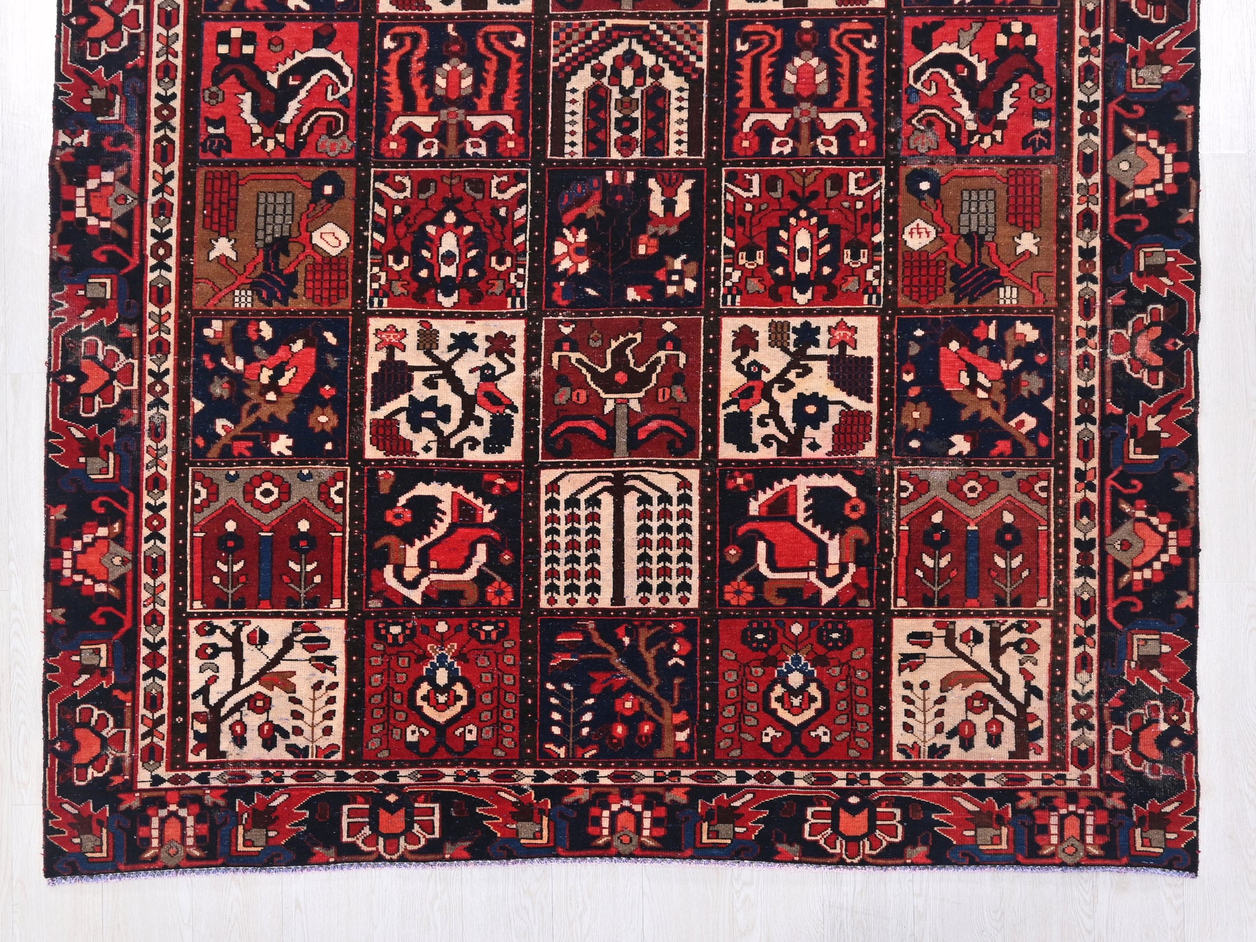 This is a hand-knotted, one-of-a-kind vintage rug. Due to the nature of this piece, there may be slight imperfections in its wear, shape, dimensions, and color. All of our rugs are professionally cleaned and repaired.