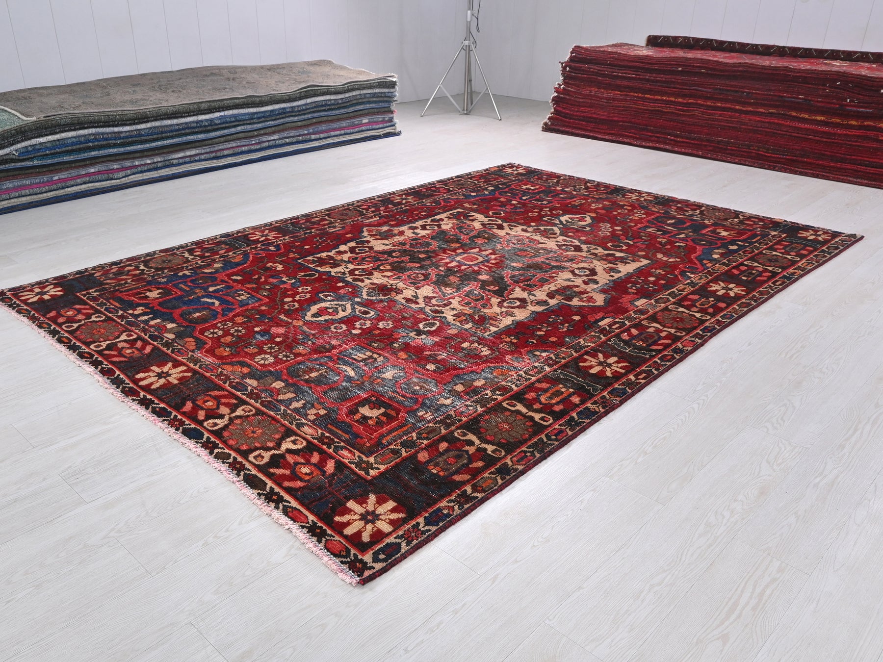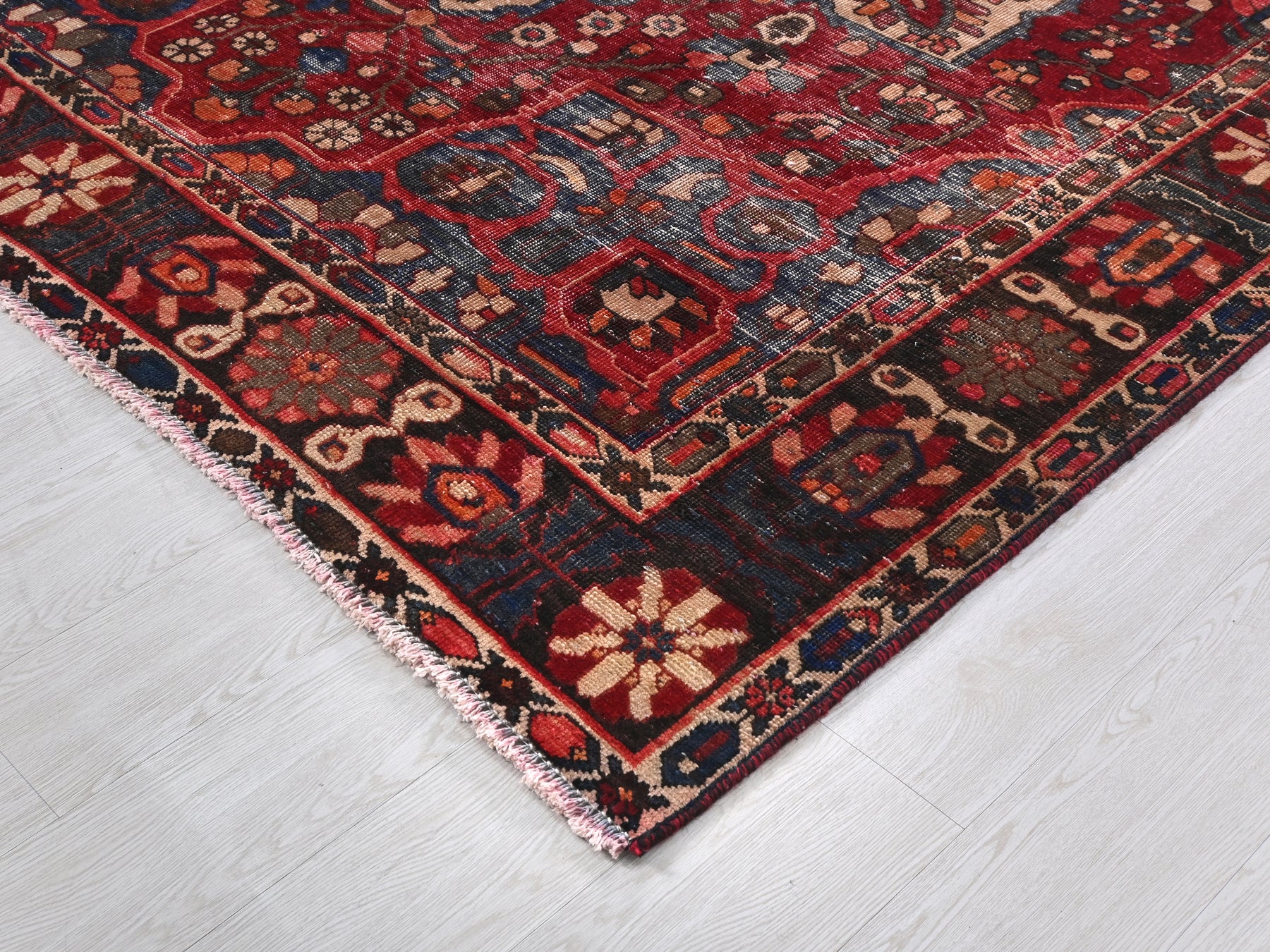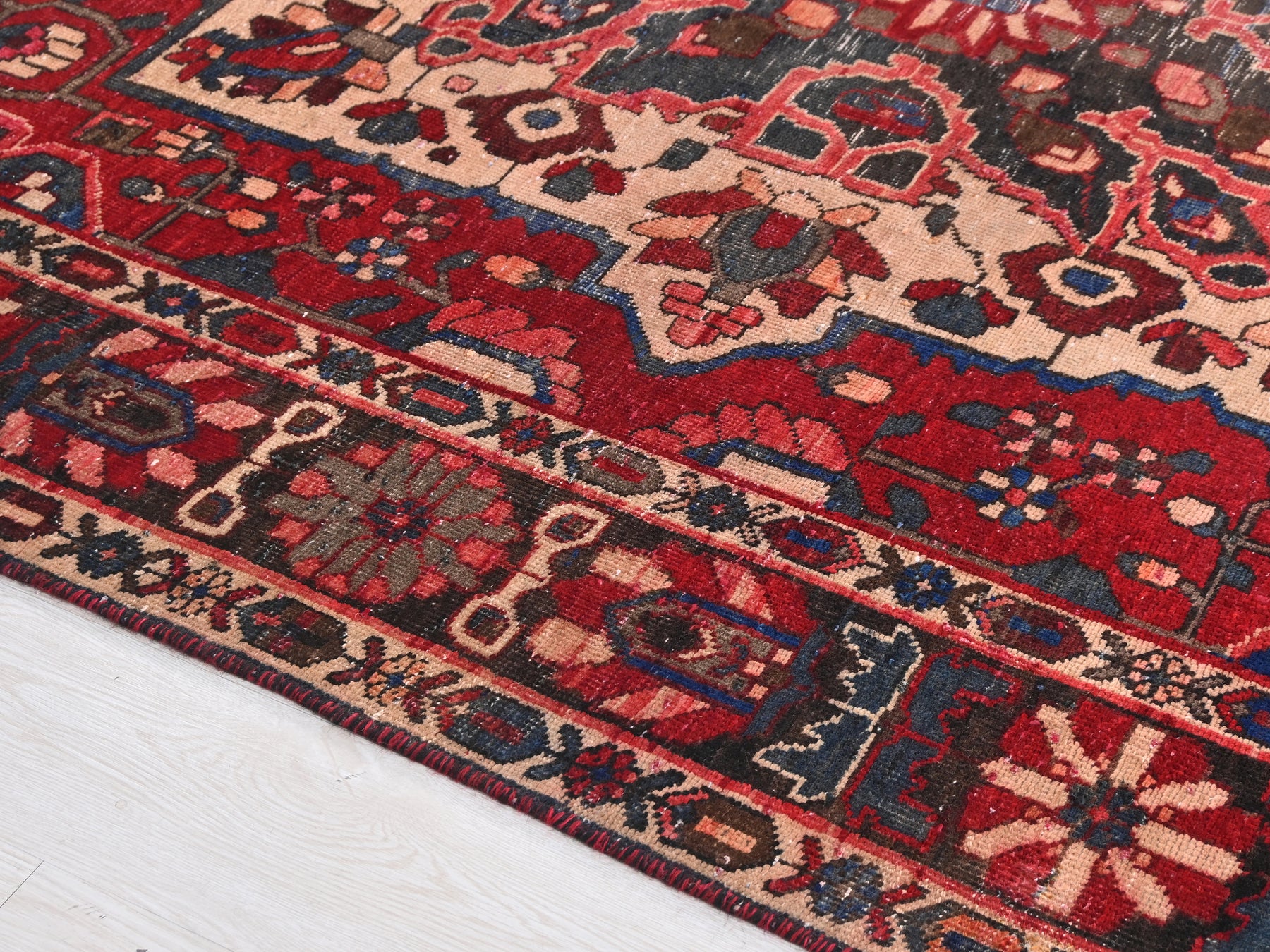 This is a hand-knotted, one-of-a-kind vintage rug. Due to the nature of this piece, there may be slight imperfections in its wear, shape, dimensions, and color. All of our rugs are professionally cleaned and repaired.