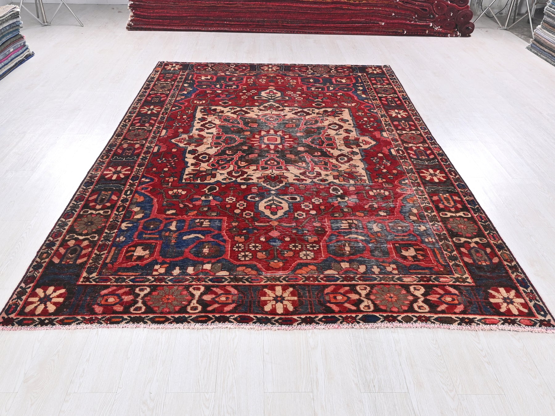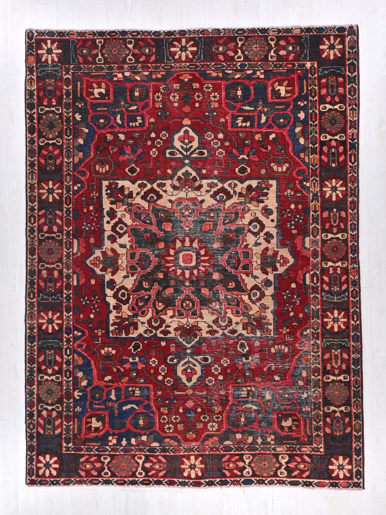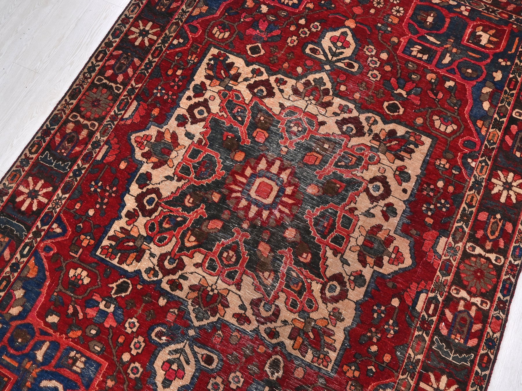 This is a hand-knotted, one-of-a-kind vintage rug. Due to the nature of this piece, there may be slight imperfections in its wear, shape, dimensions, and color. All of our rugs are professionally cleaned and repaired.