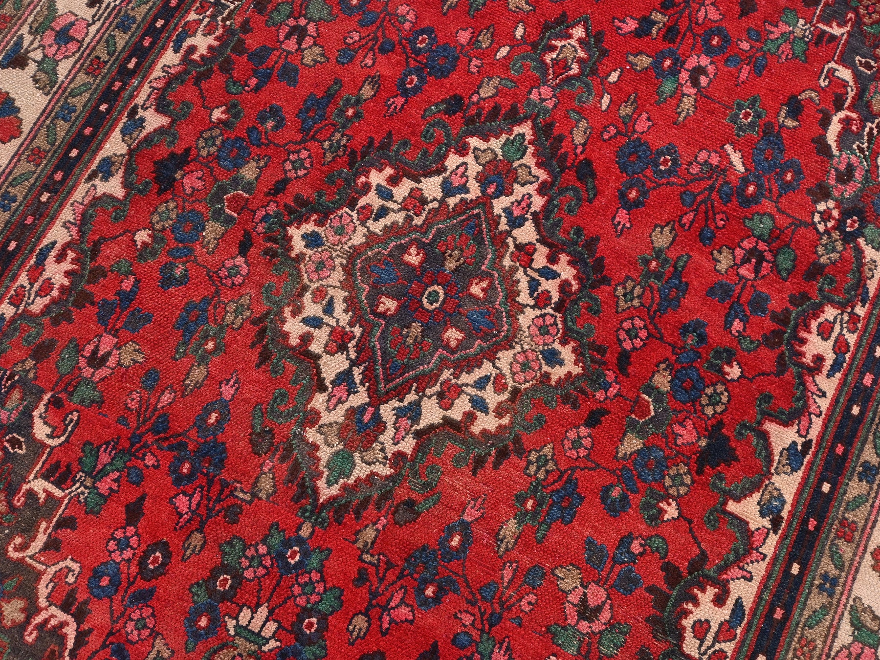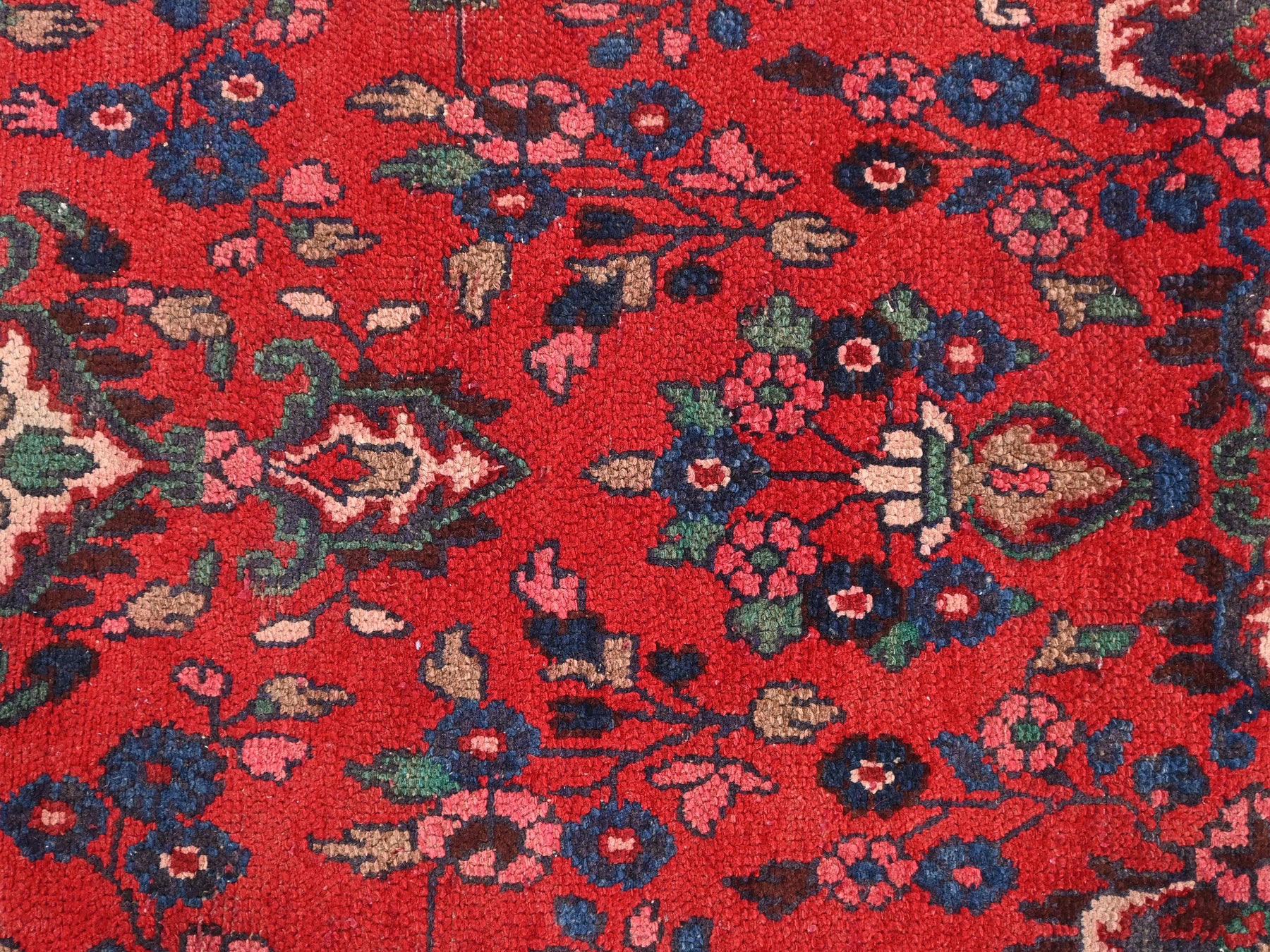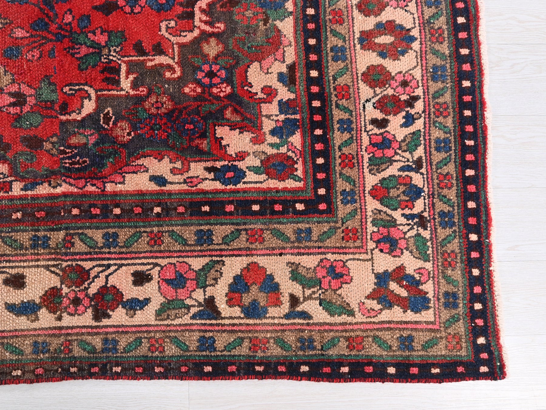 This is a hand-knotted, one-of-a-kind vintage rug. Due to the nature of this piece, there may be slight imperfections in its wear, shape, dimensions, and color. All of our rugs are professionally cleaned and repaired.
