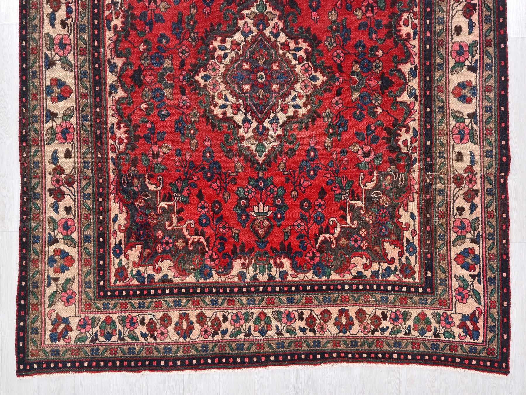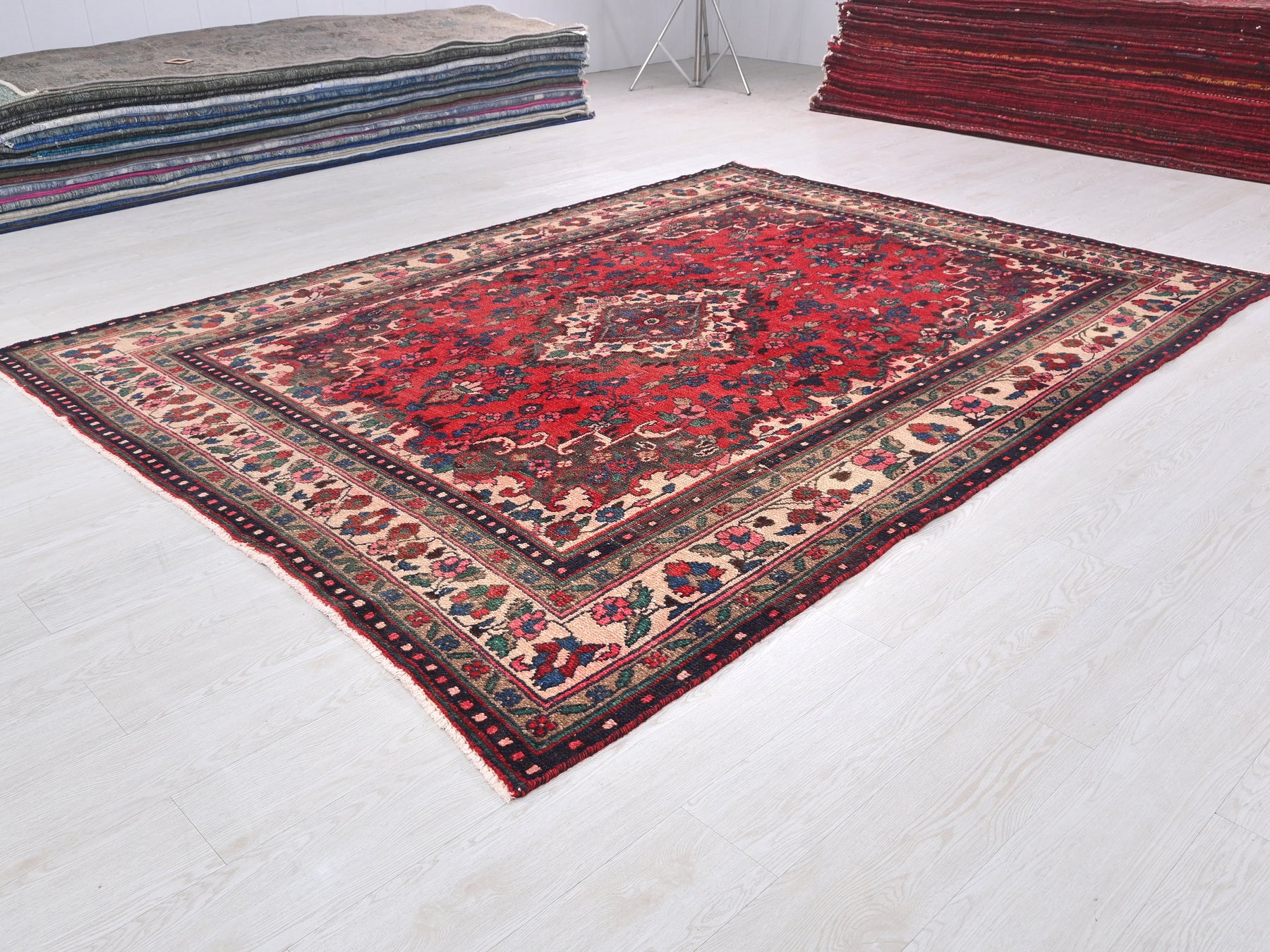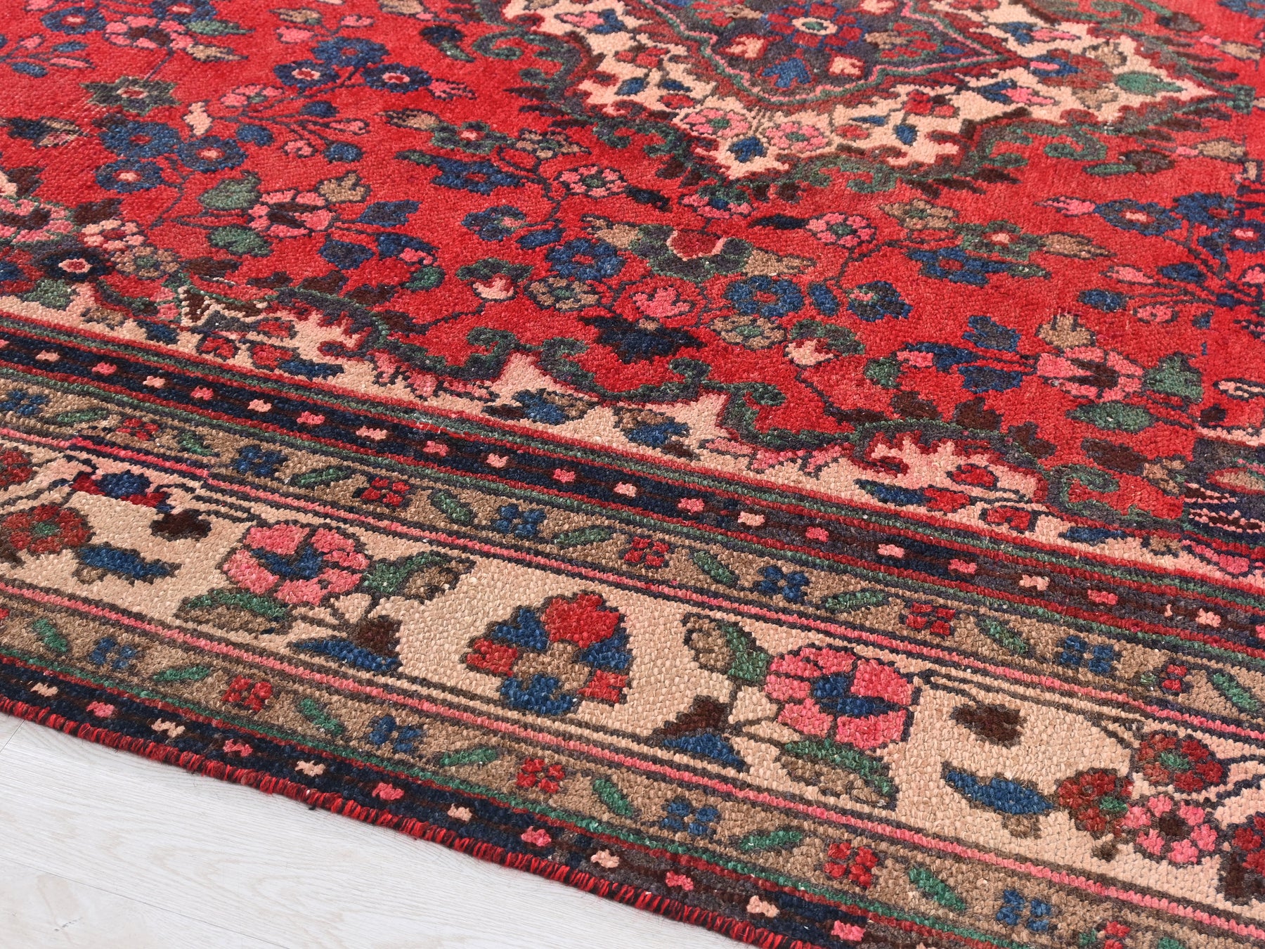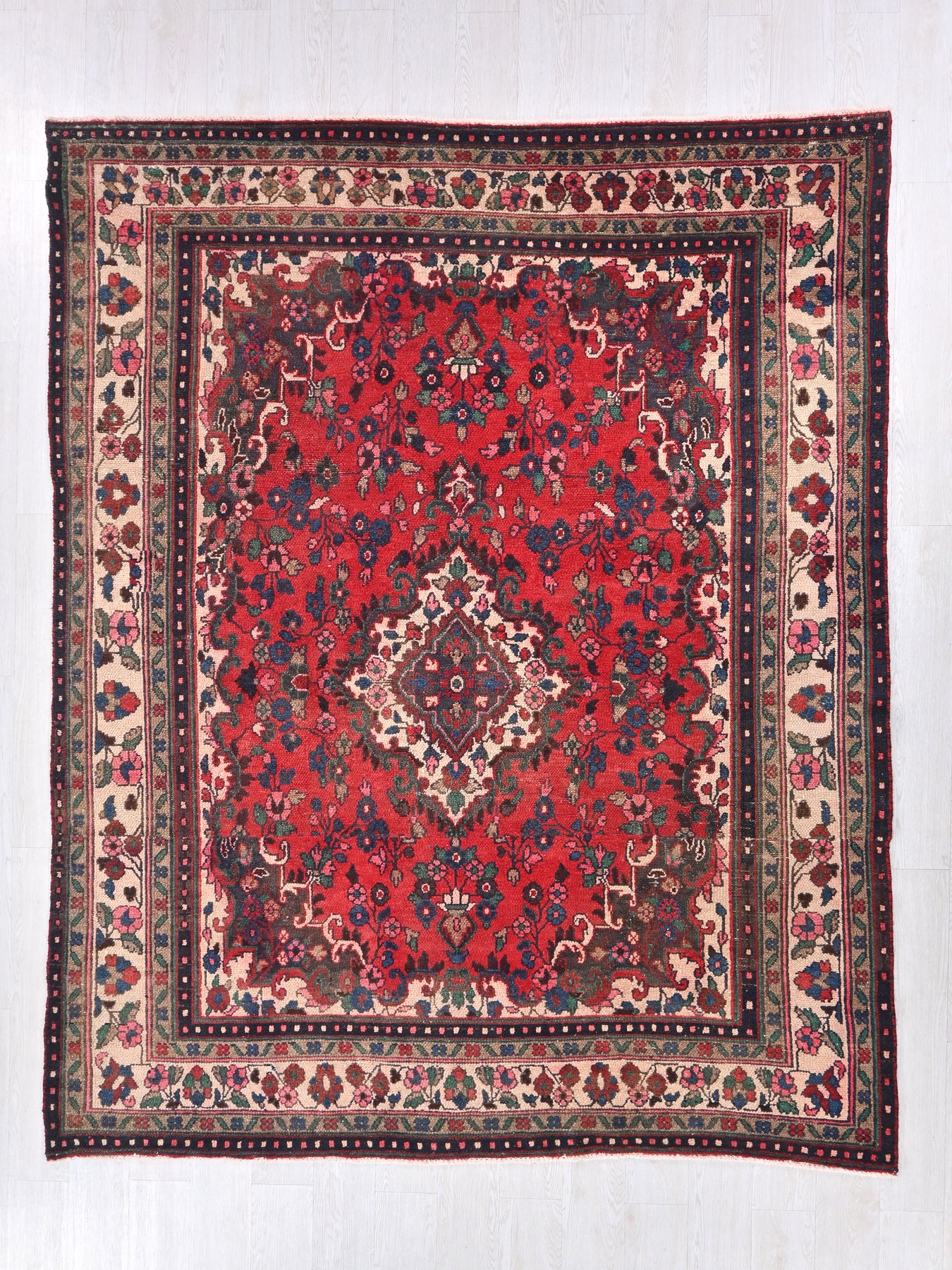 This is a hand-knotted, one-of-a-kind vintage rug. Due to the nature of this piece, there may be slight imperfections in its wear, shape, dimensions, and color. All of our rugs are professionally cleaned and repaired.