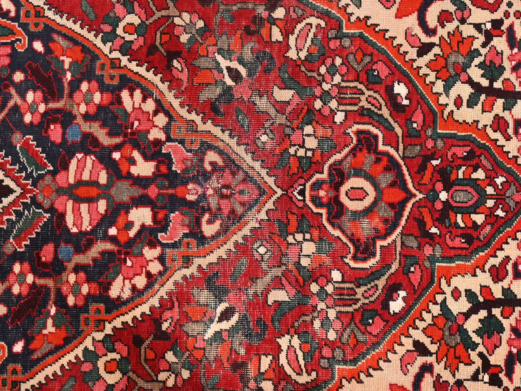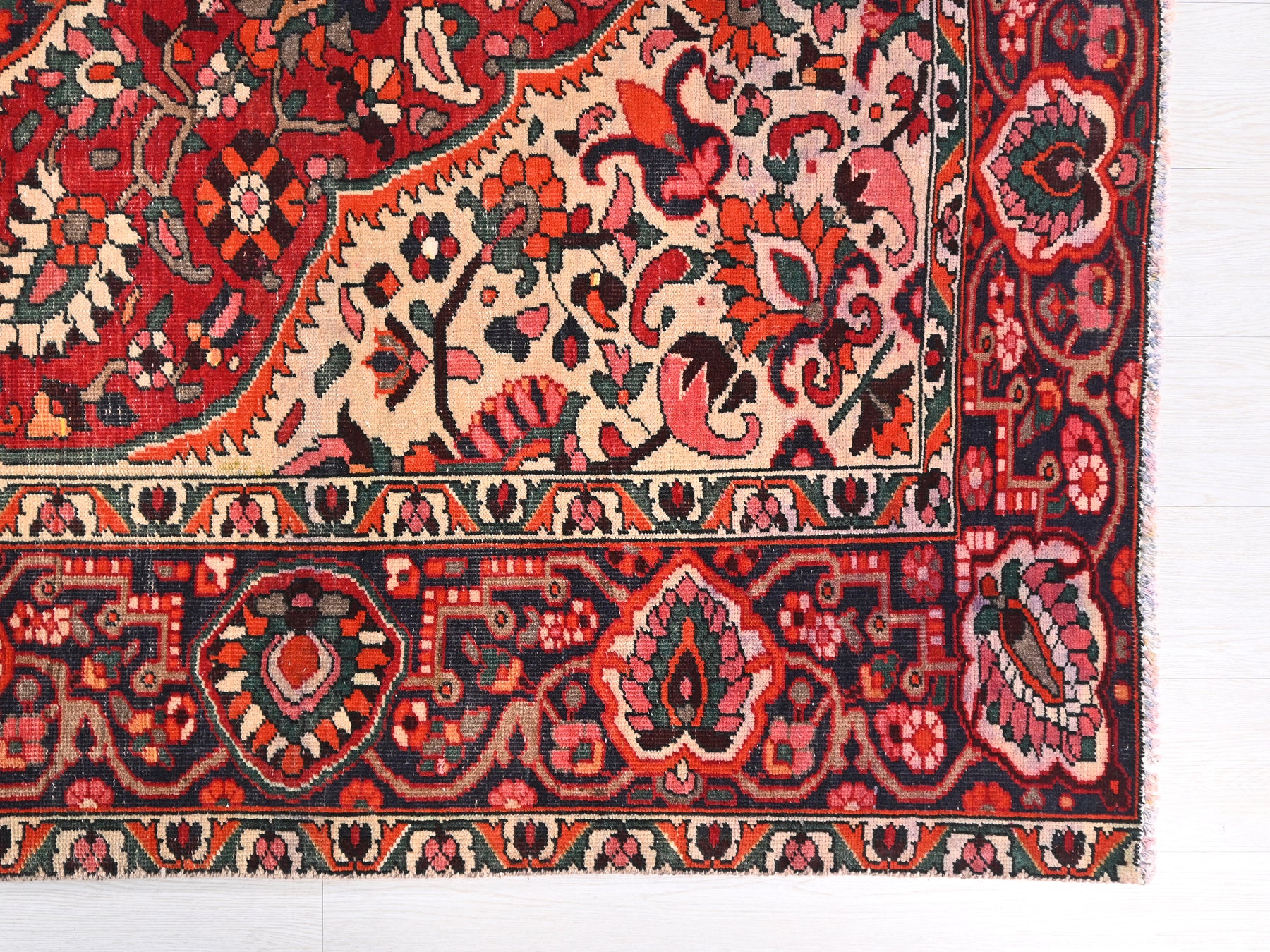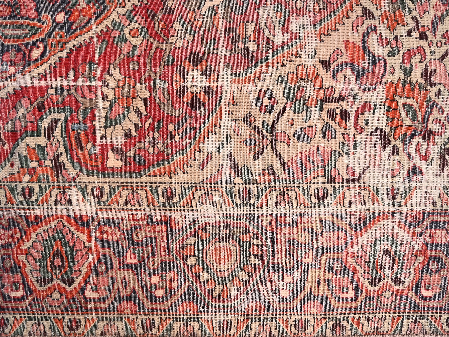 This is a hand-knotted, one-of-a-kind vintage rug. Due to the nature of this piece, there may be slight imperfections in its wear, shape, dimensions, and color. All of our rugs are professionally cleaned and repaired.