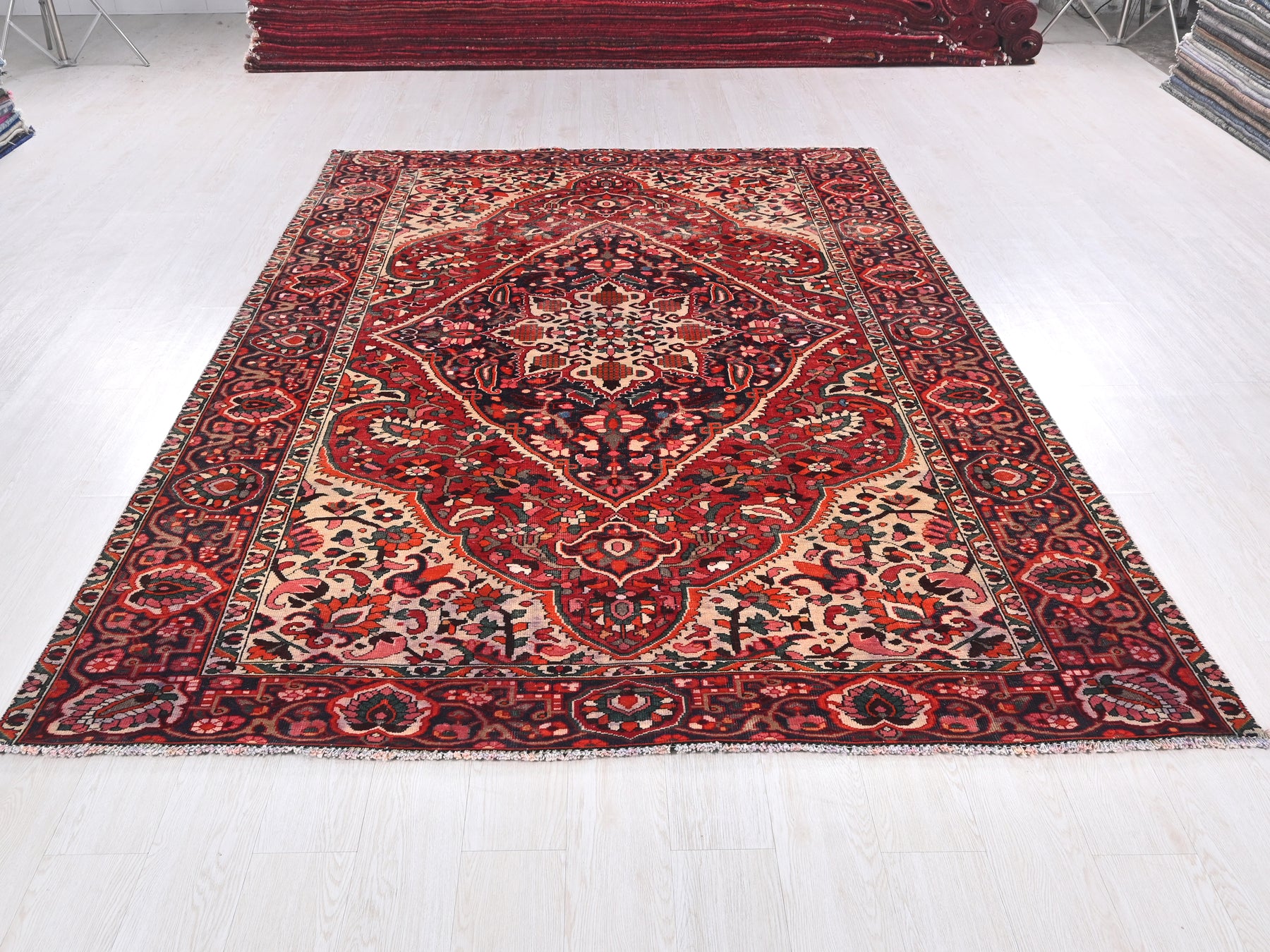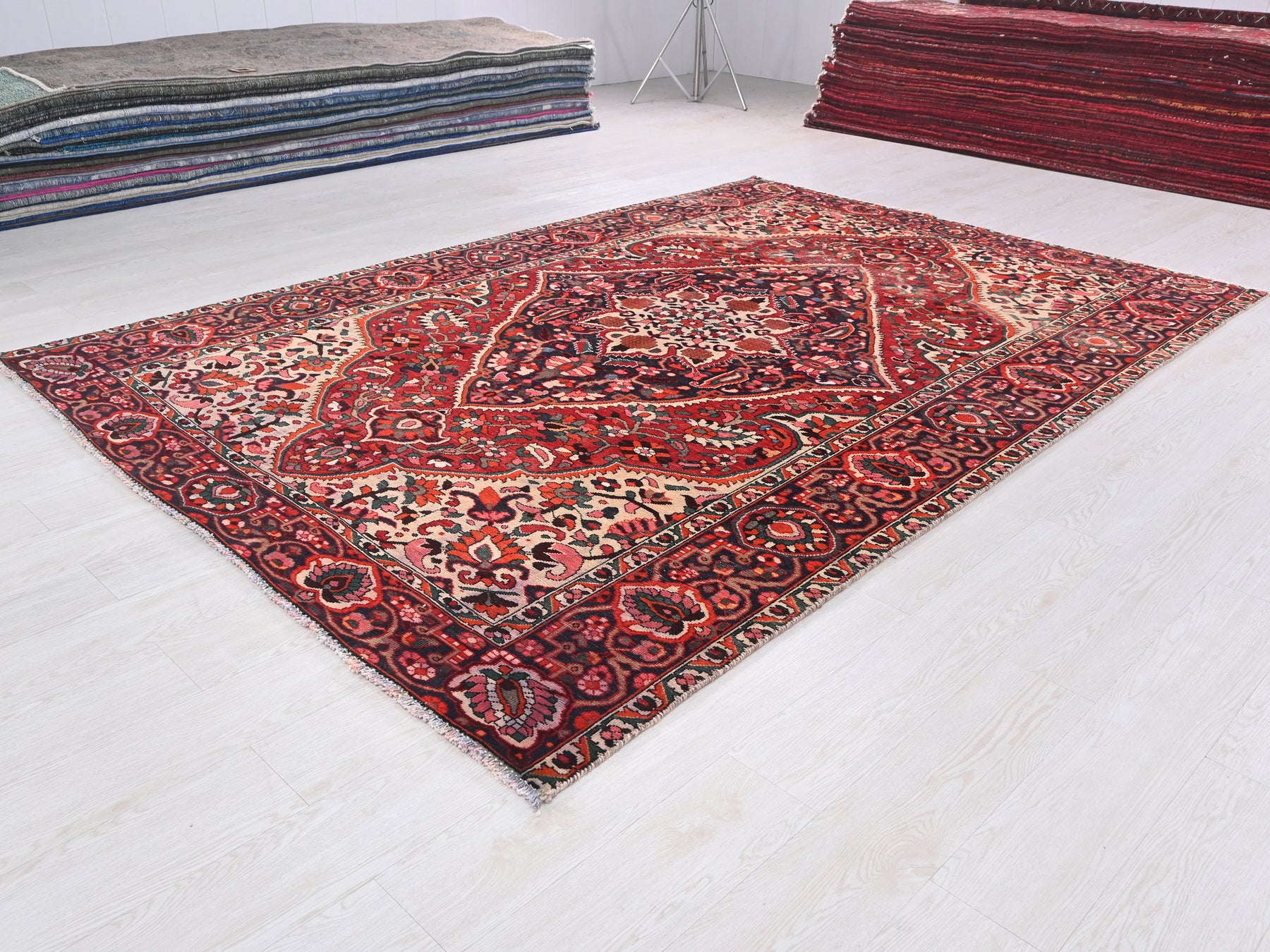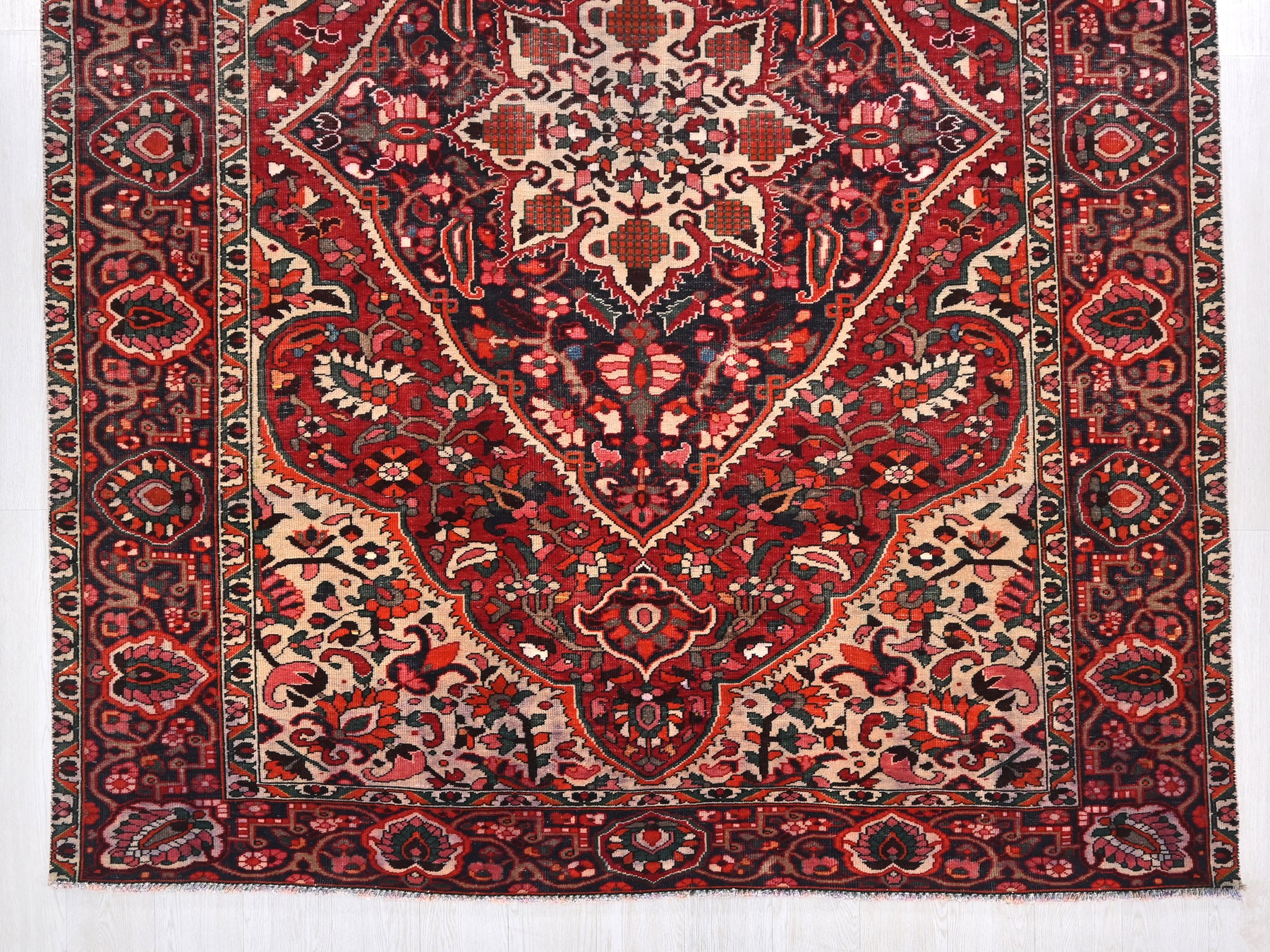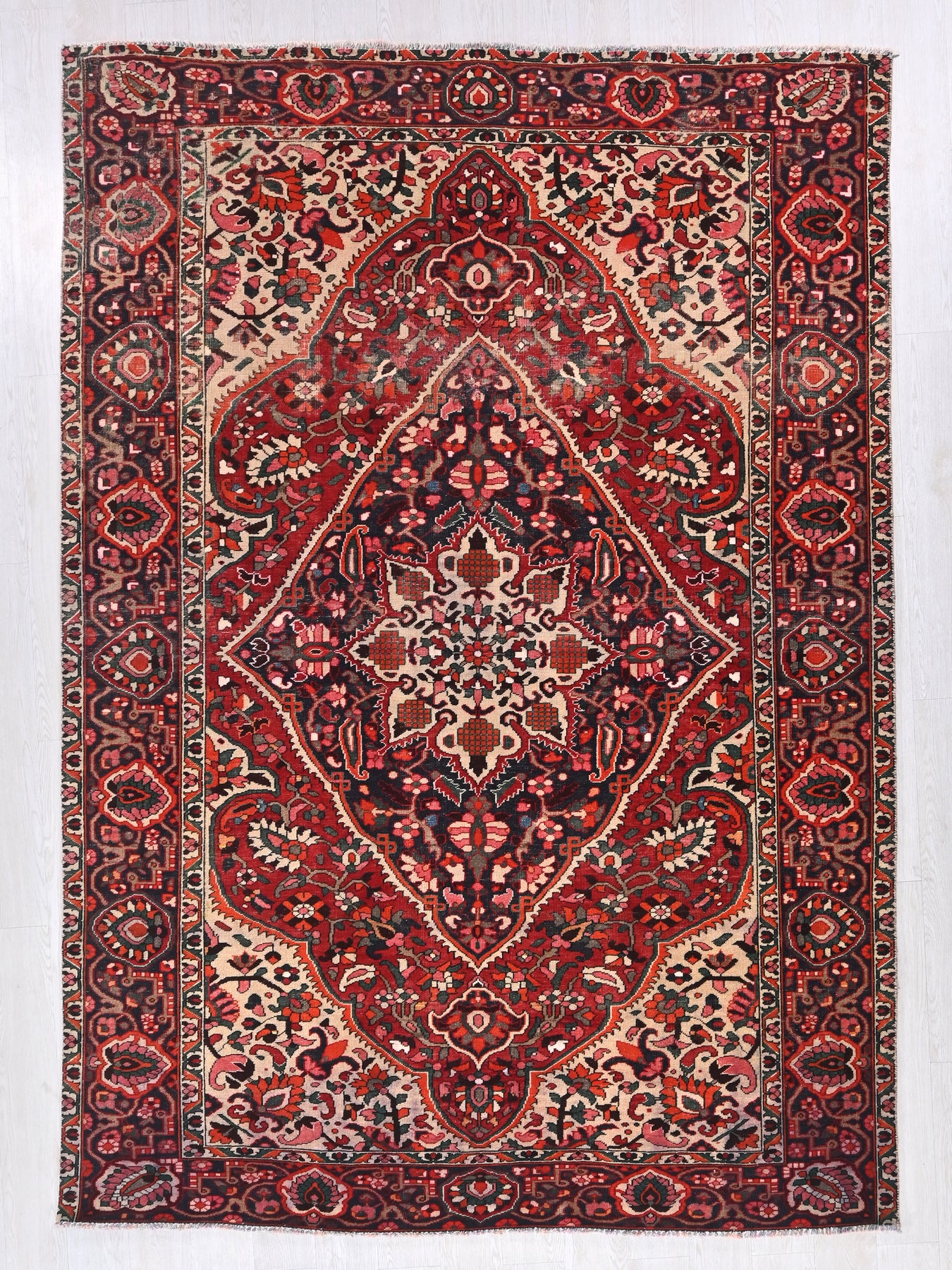 This is a hand-knotted, one-of-a-kind vintage rug. Due to the nature of this piece, there may be slight imperfections in its wear, shape, dimensions, and color. All of our rugs are professionally cleaned and repaired.