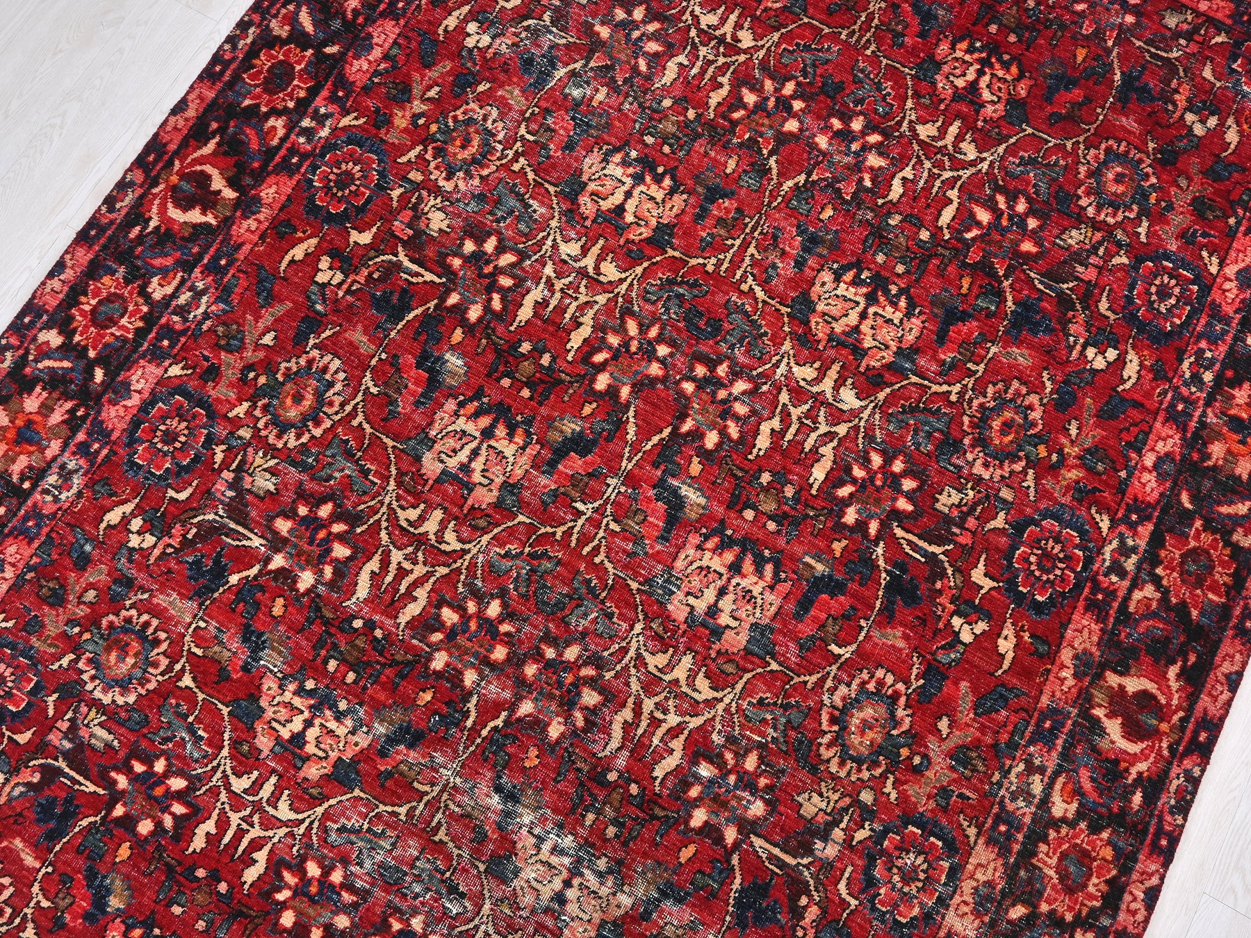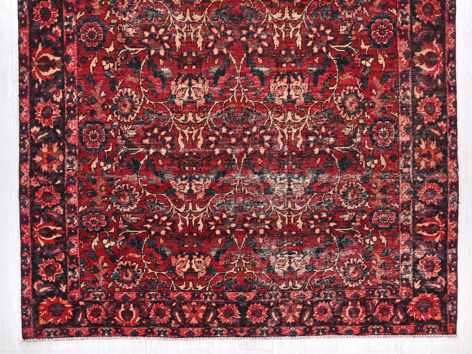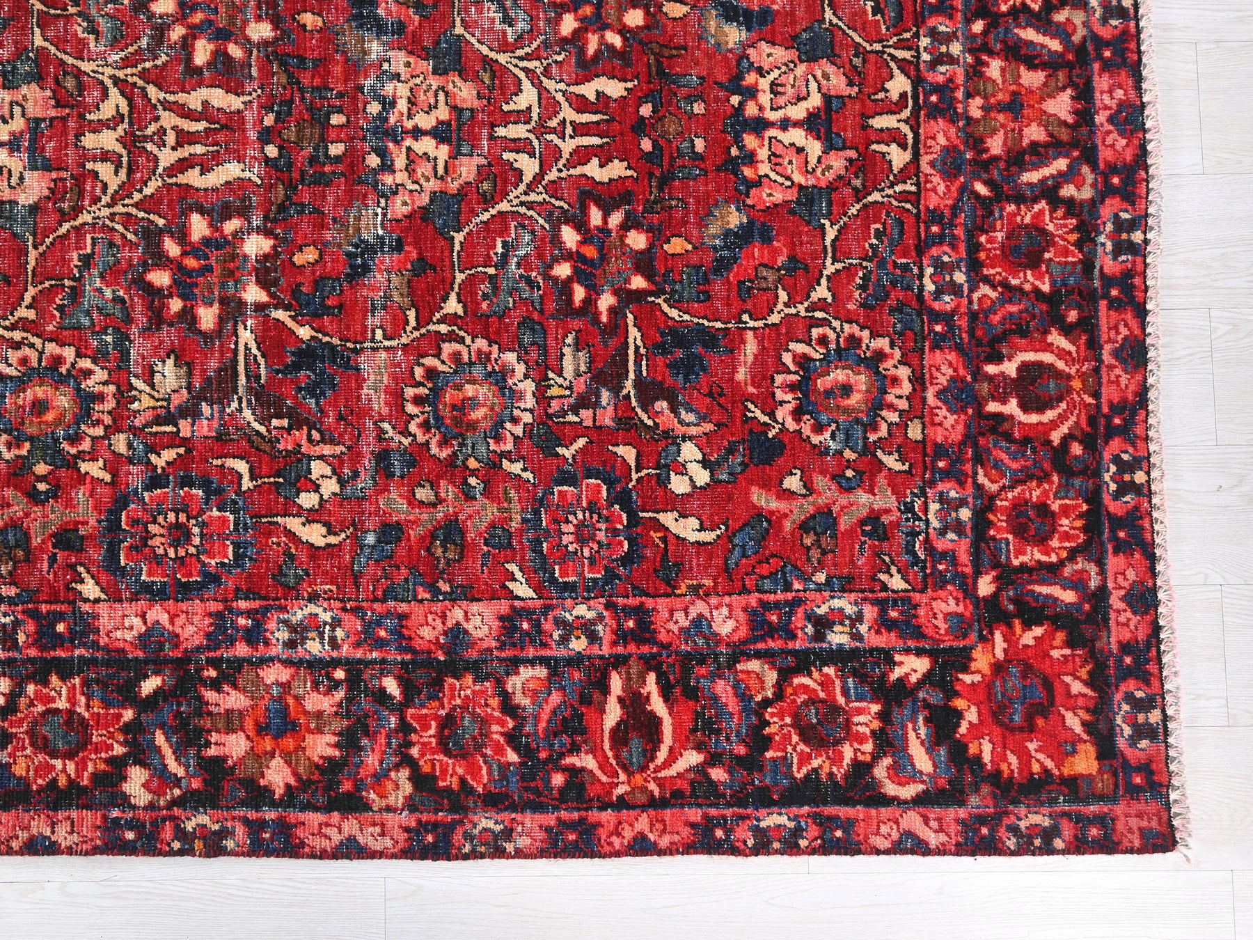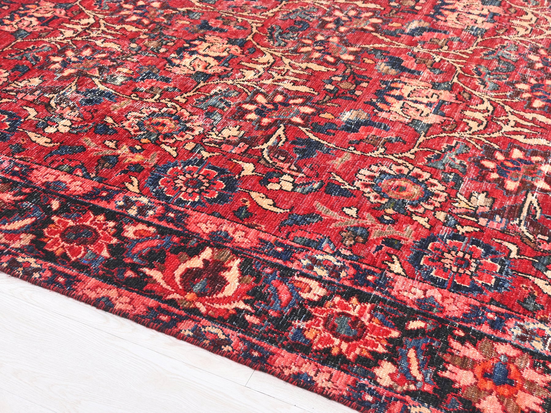 This is a hand-knotted, one-of-a-kind vintage rug. Due to the nature of this piece, there may be slight imperfections in its wear, shape, dimensions, and color. All of our rugs are professionally cleaned and repaired.