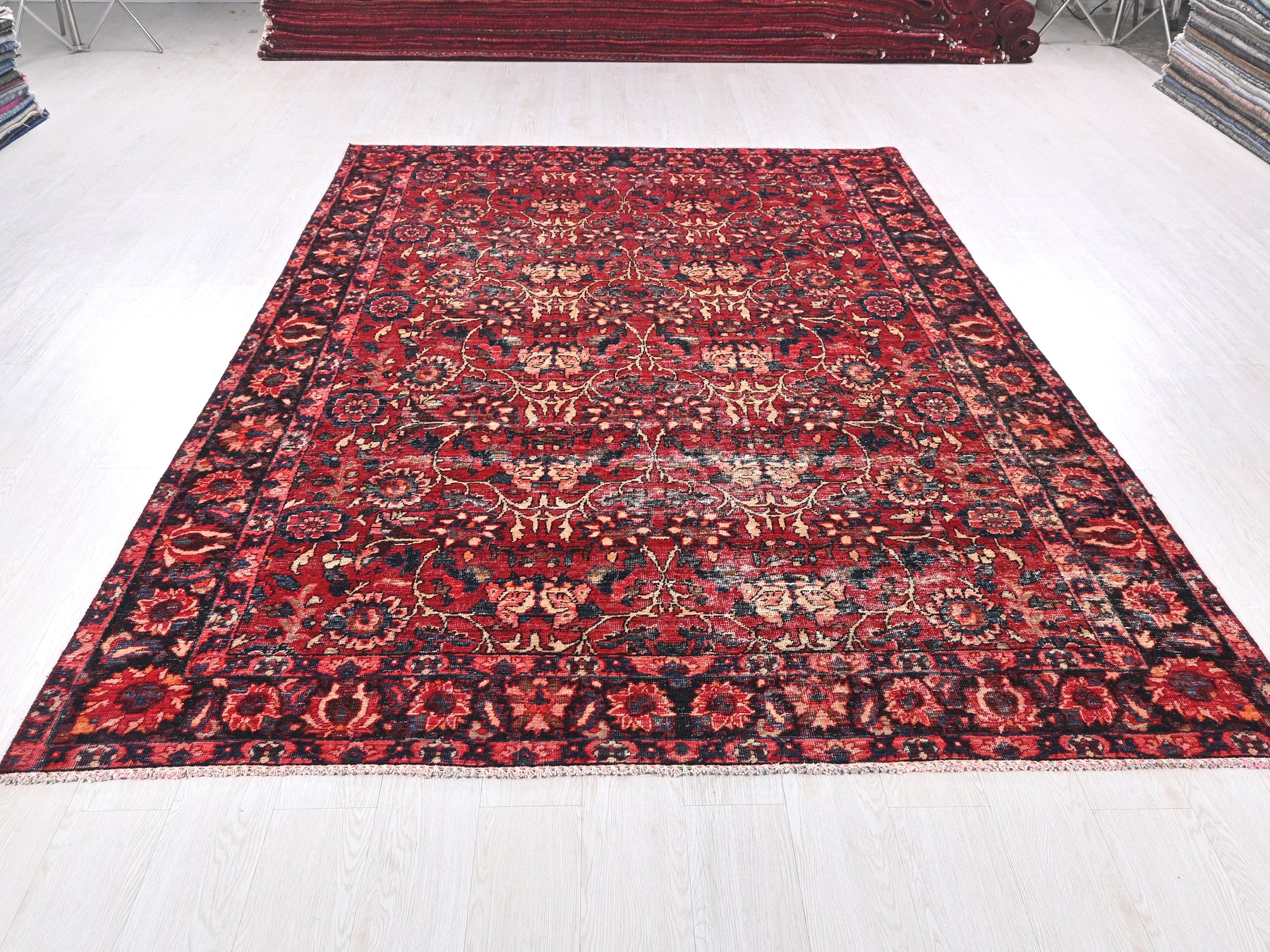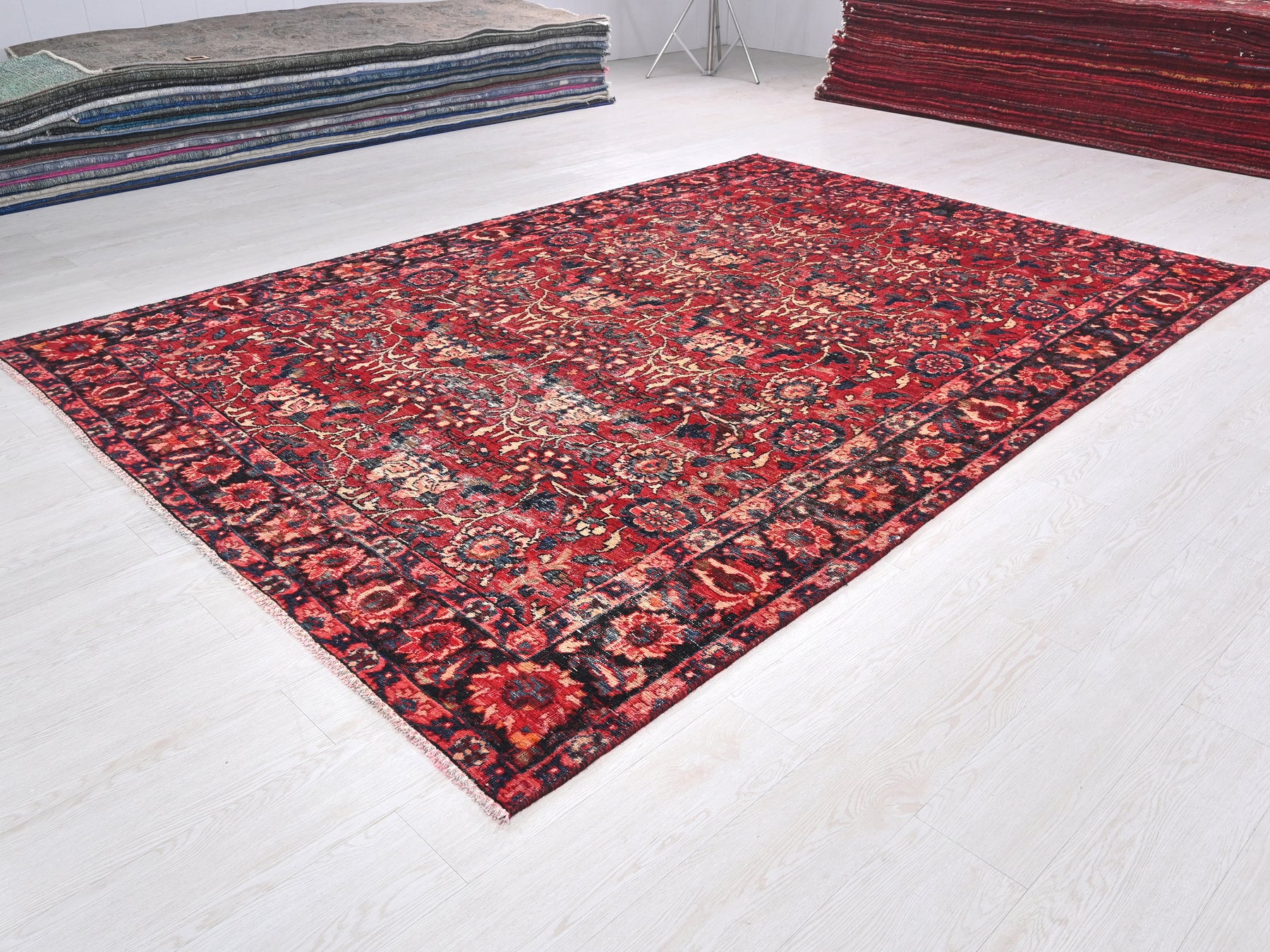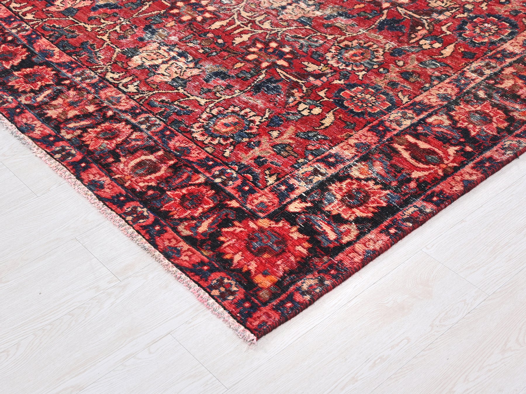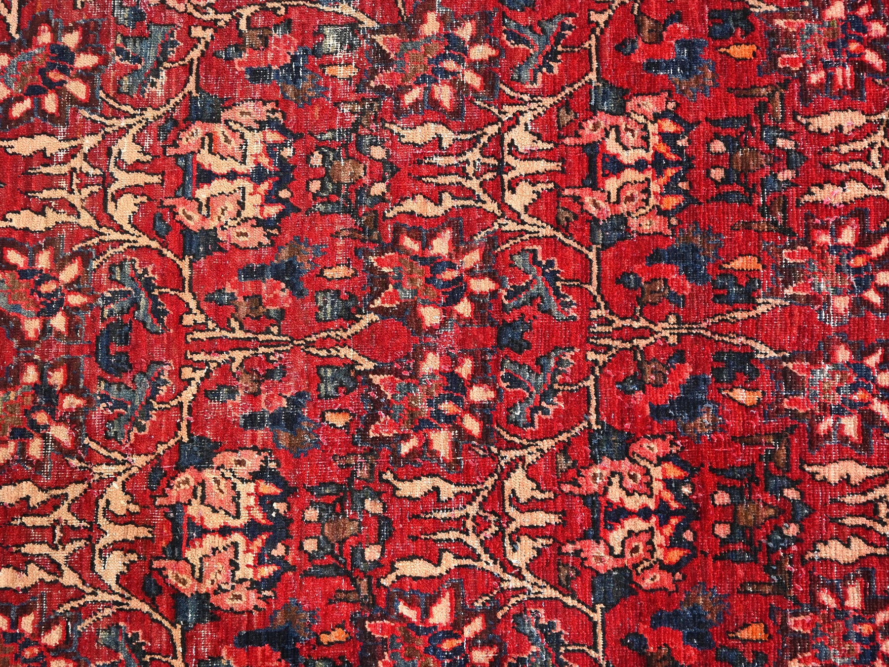 This is a hand-knotted, one-of-a-kind vintage rug. Due to the nature of this piece, there may be slight imperfections in its wear, shape, dimensions, and color. All of our rugs are professionally cleaned and repaired.