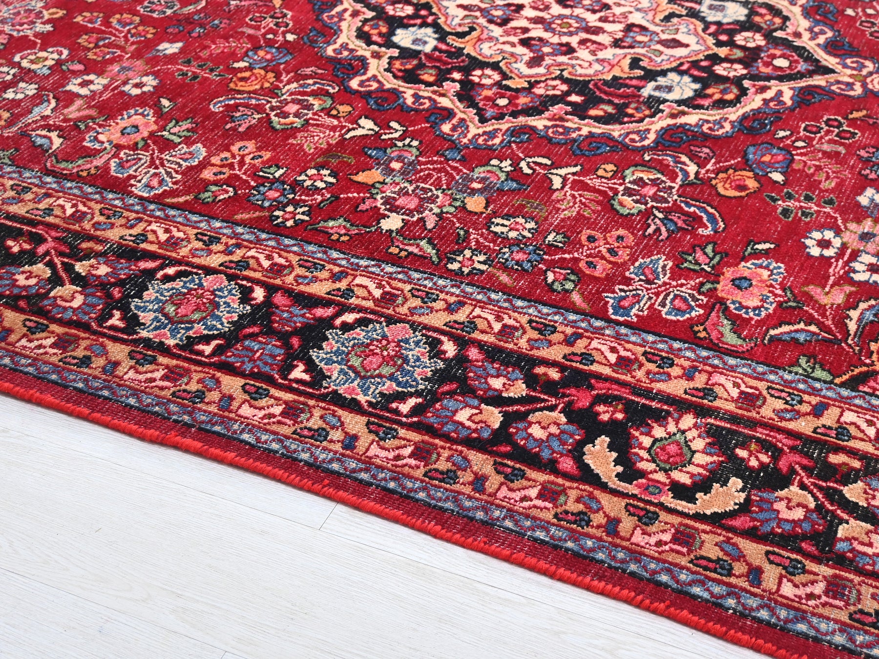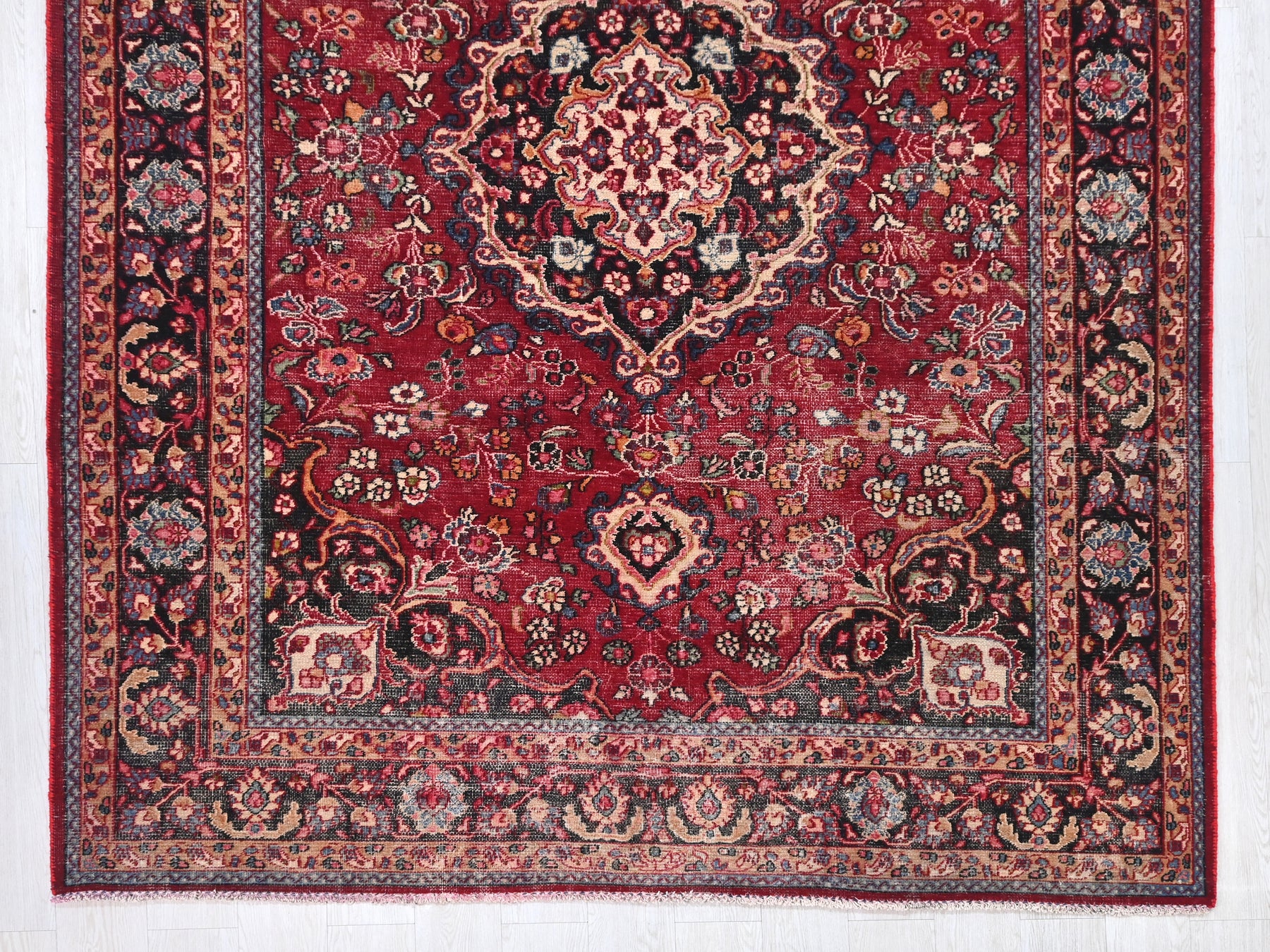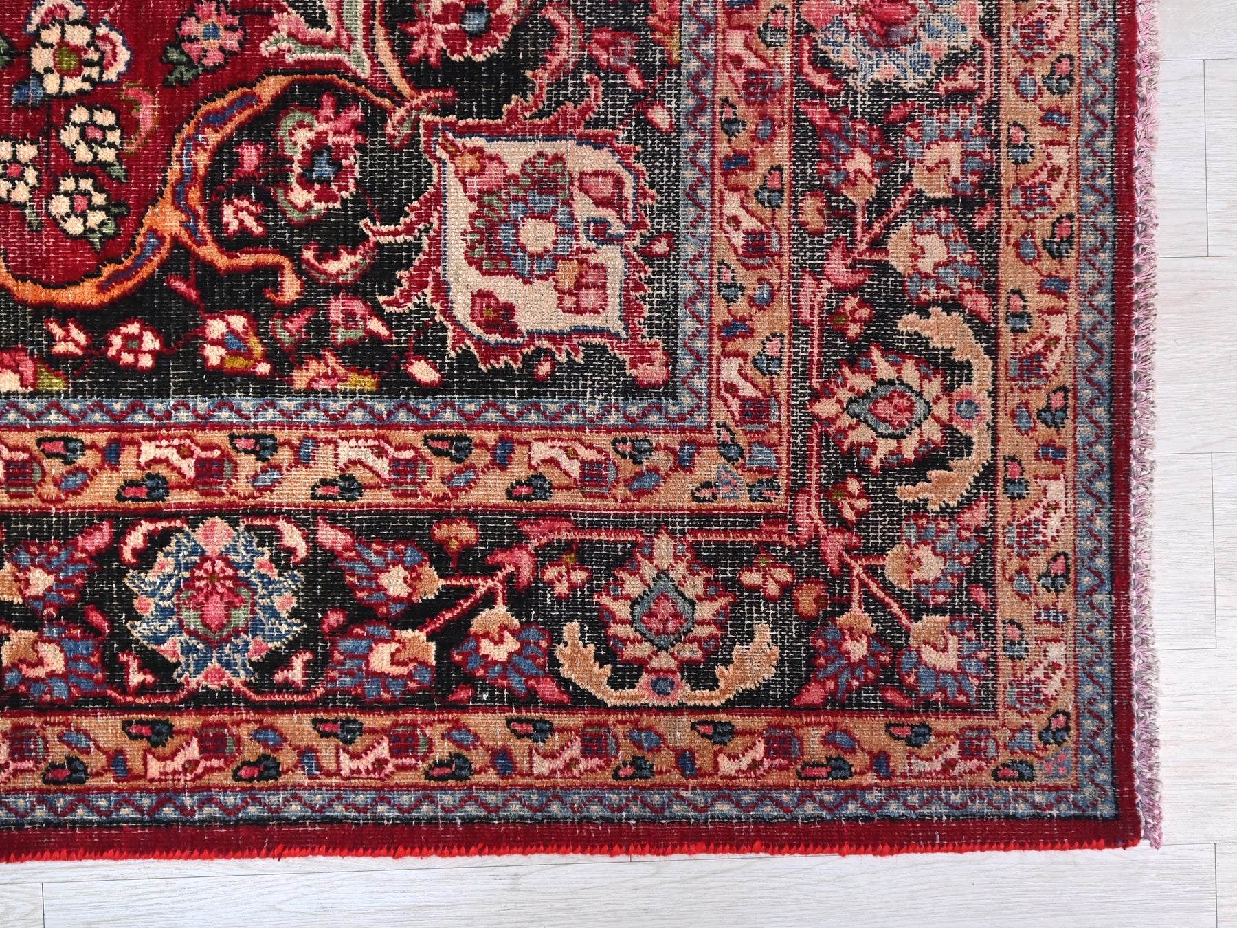 This is a hand-knotted, one-of-a-kind vintage rug. Due to the nature of this piece, there may be slight imperfections in its wear, shape, dimensions, and color. All of our rugs are professionally cleaned and repaired.
