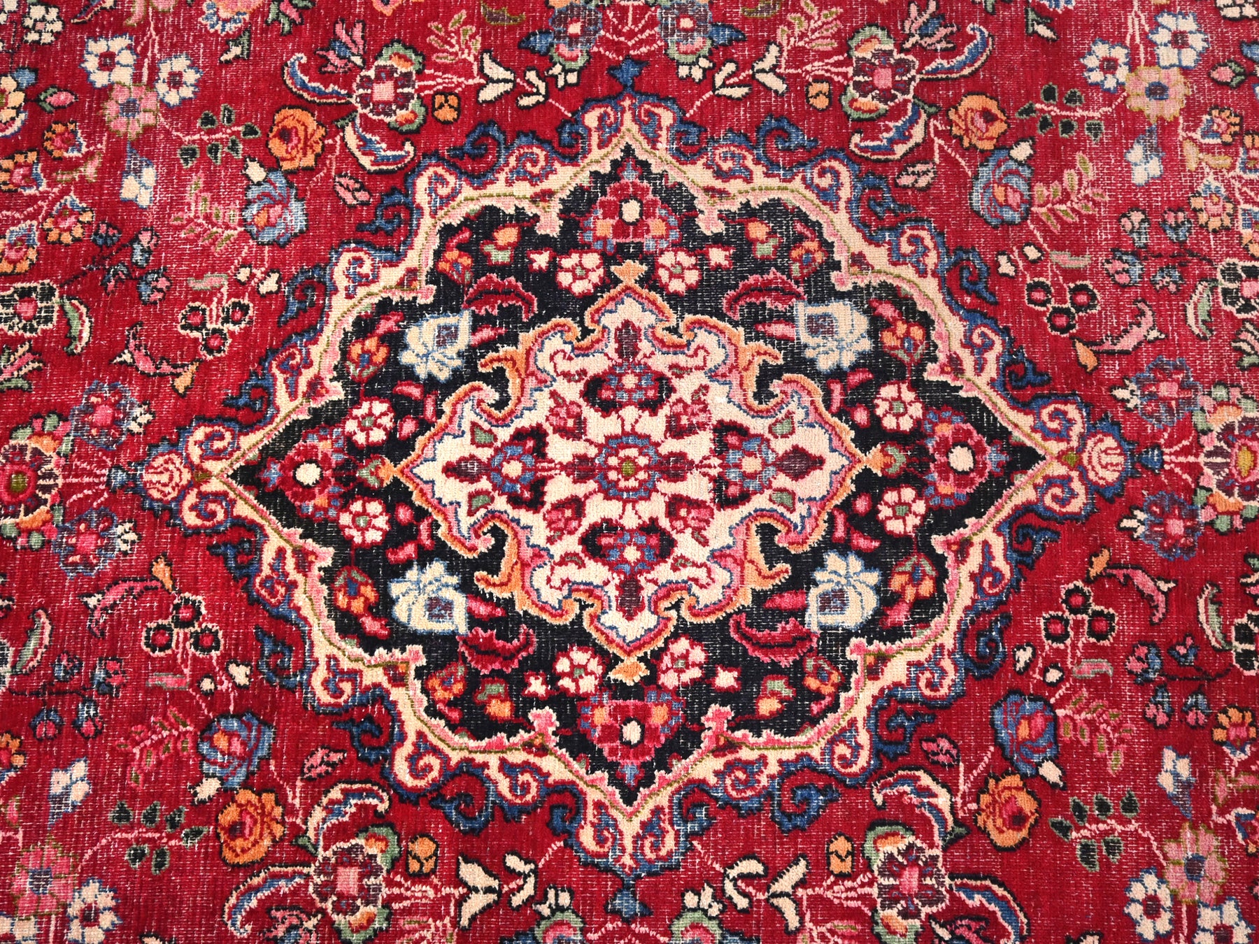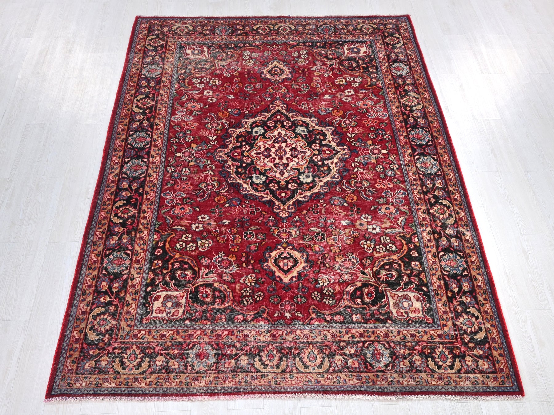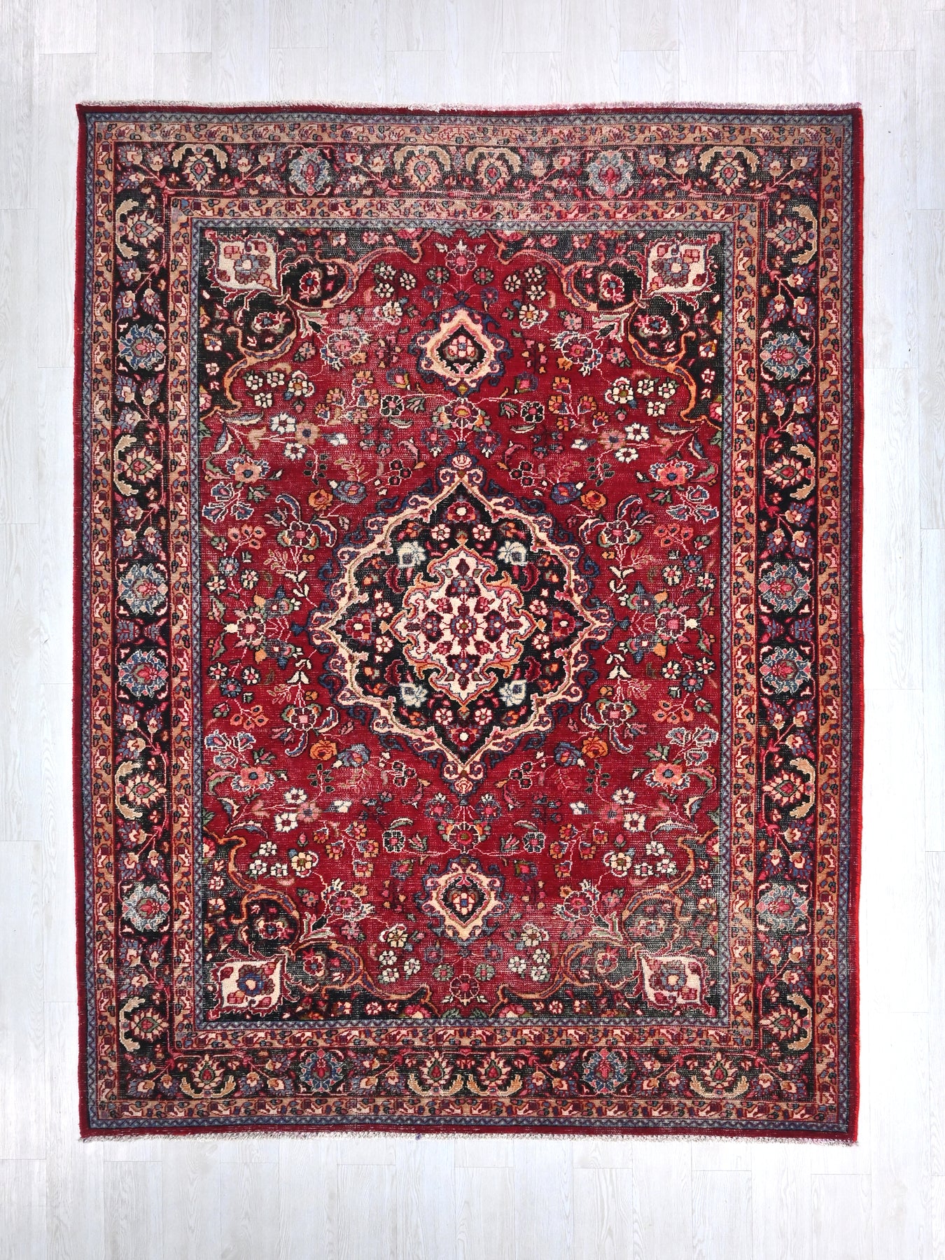 This is a hand-knotted, one-of-a-kind vintage rug. Due to the nature of this piece, there may be slight imperfections in its wear, shape, dimensions, and color. All of our rugs are professionally cleaned and repaired.