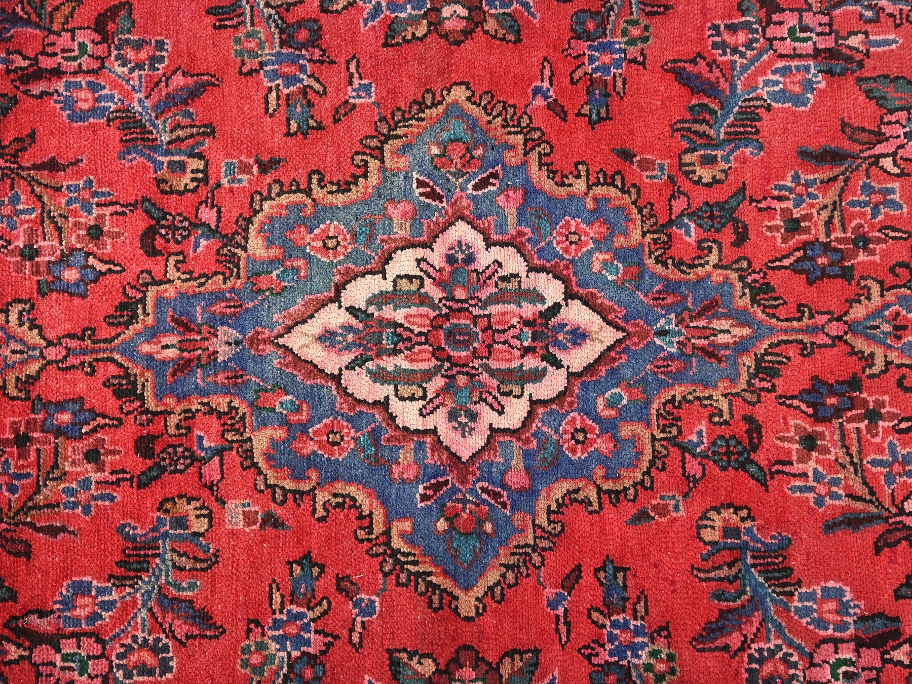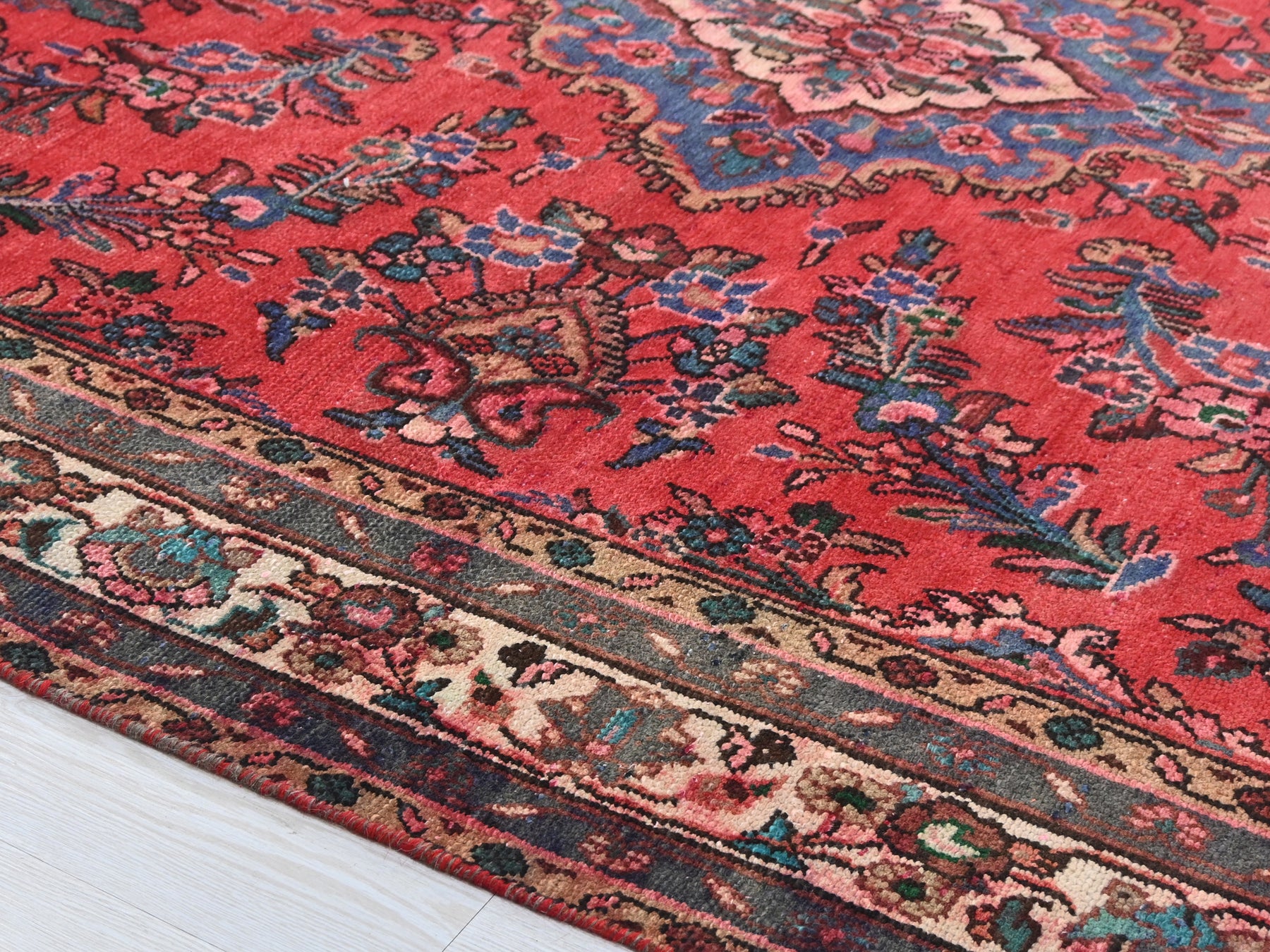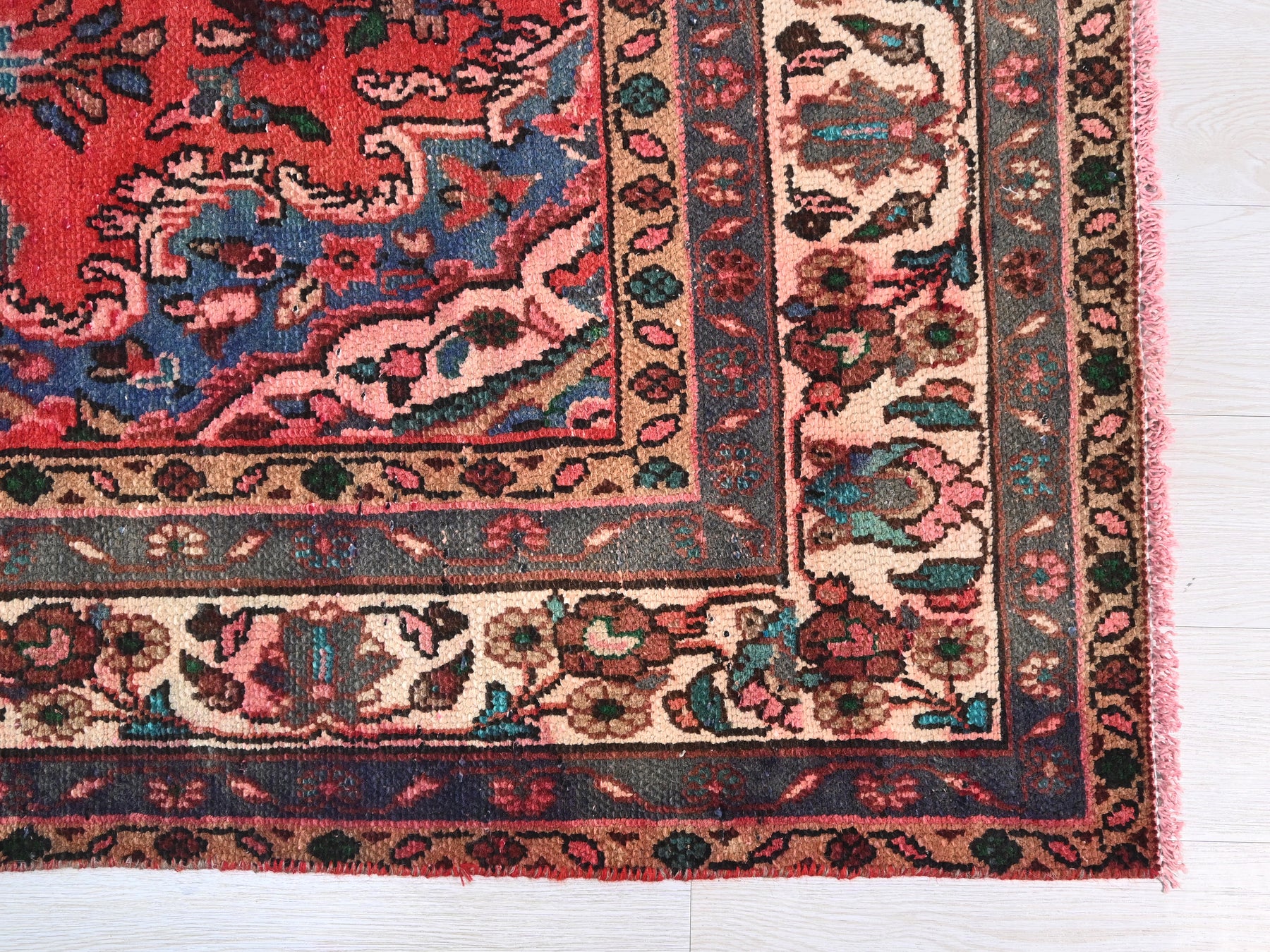 This is a hand-knotted, one-of-a-kind vintage rug. Due to the nature of this piece, there may be slight imperfections in its wear, shape, dimensions, and color. All of our rugs are professionally cleaned and repaired.