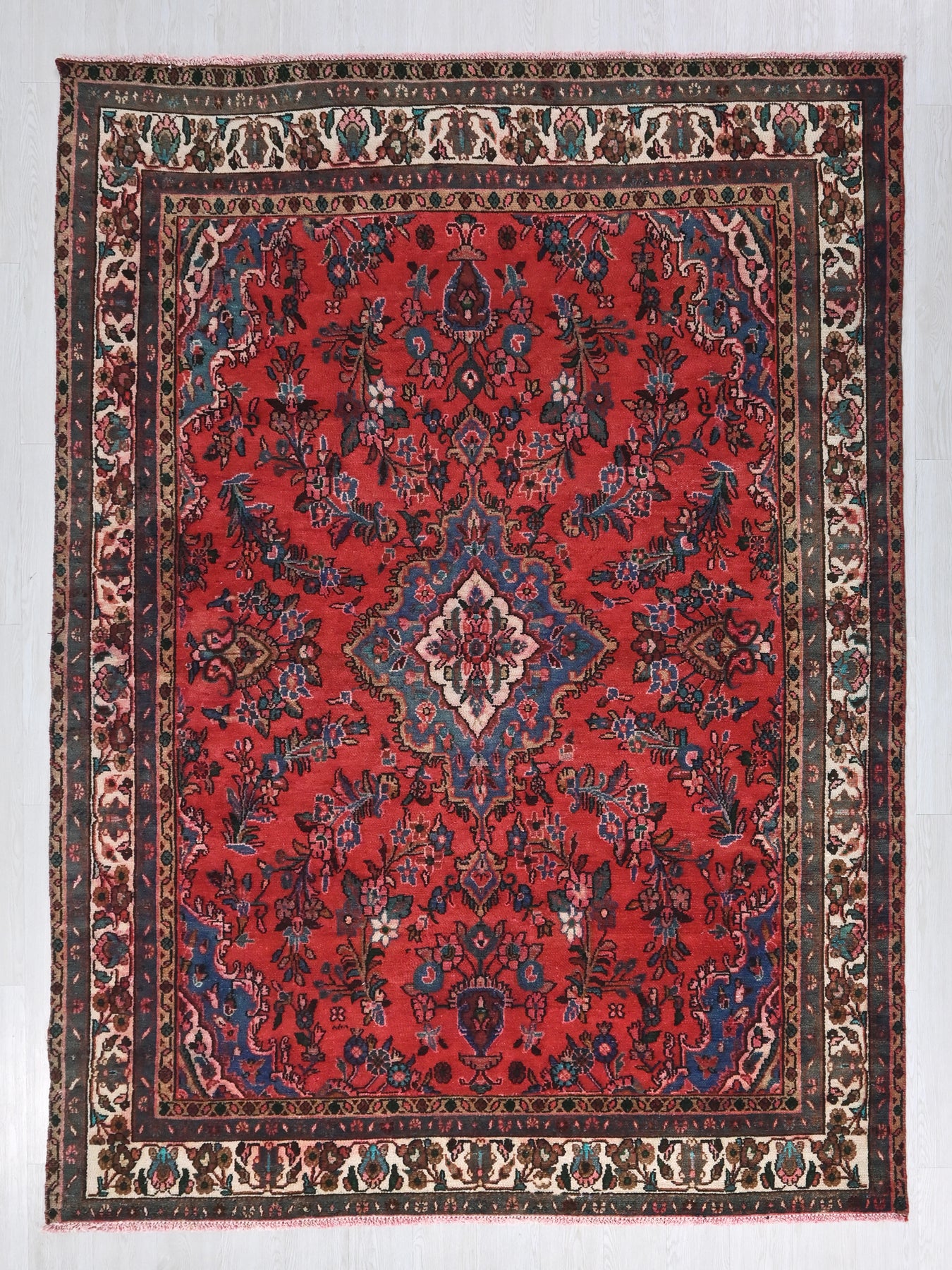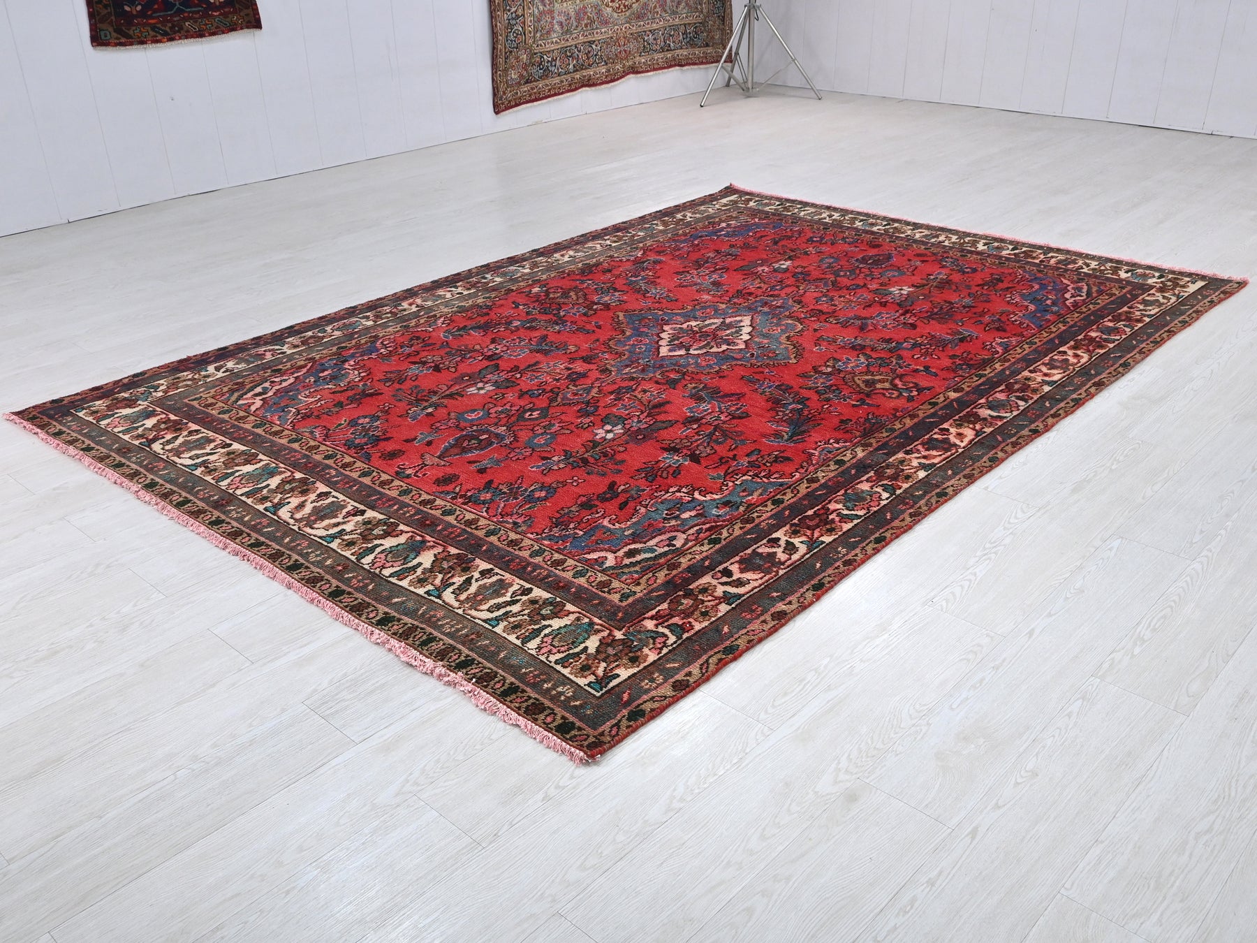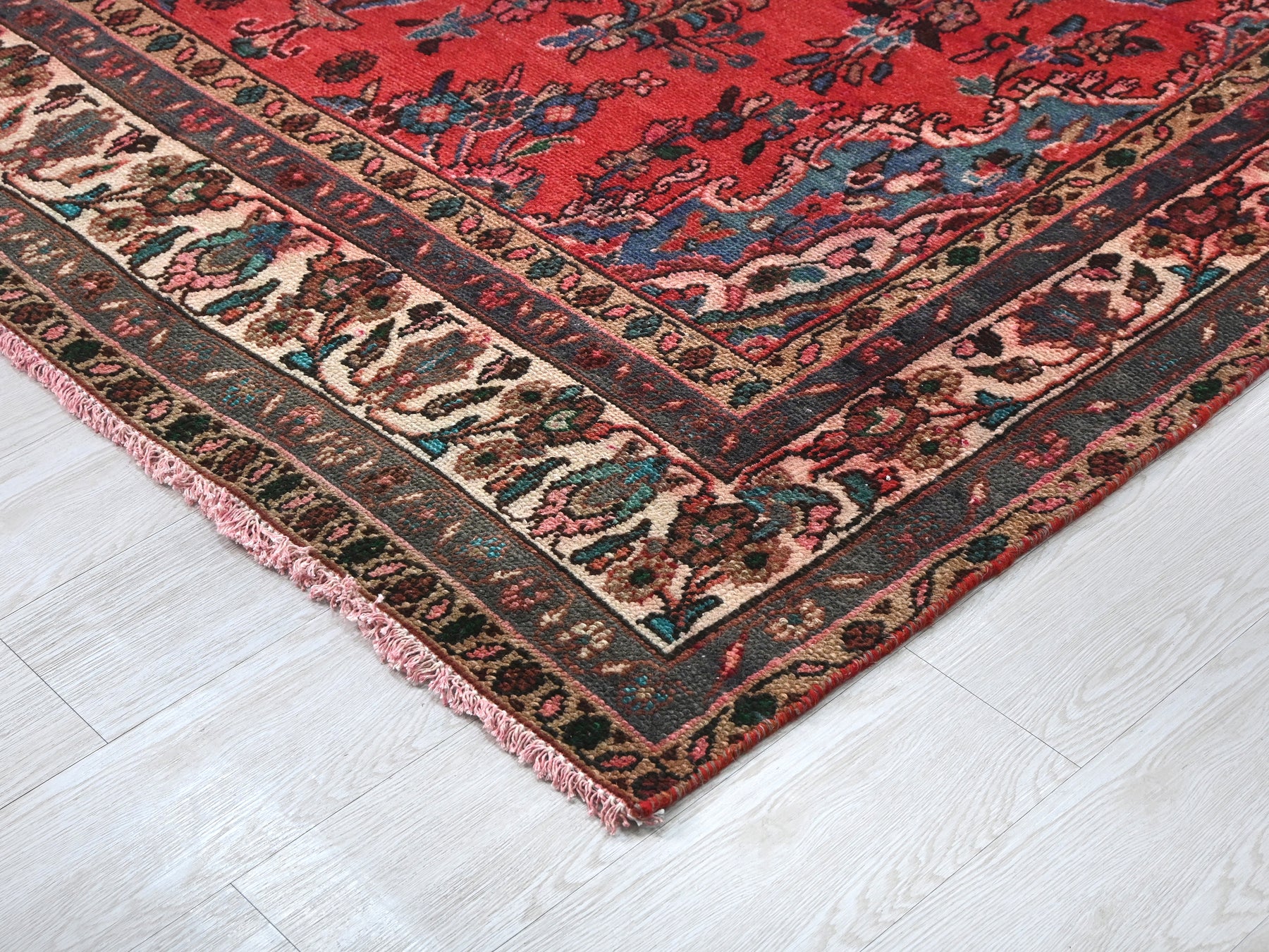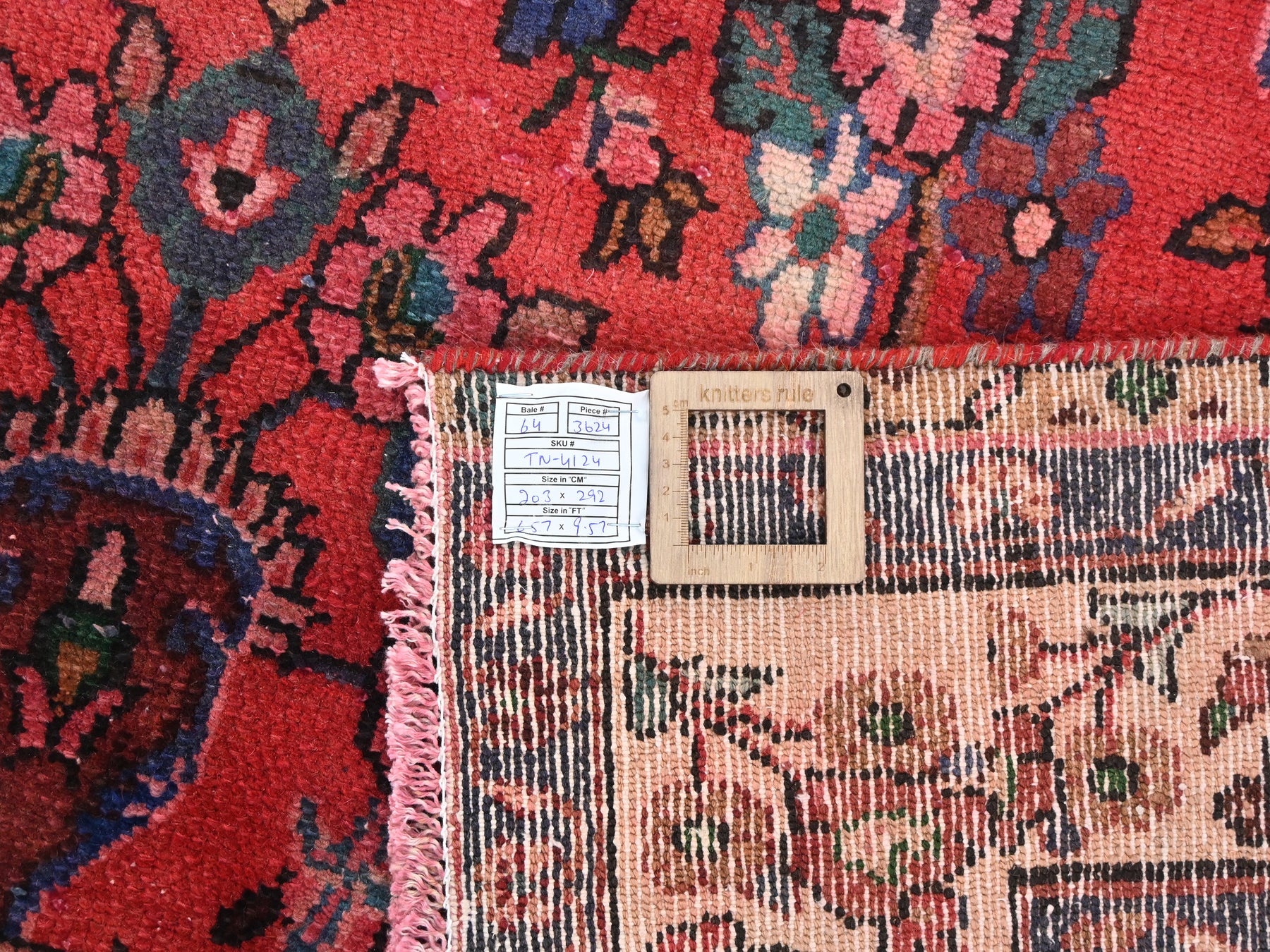 This is a hand-knotted, one-of-a-kind vintage rug. Due to the nature of this piece, there may be slight imperfections in its wear, shape, dimensions, and color. All of our rugs are professionally cleaned and repaired.