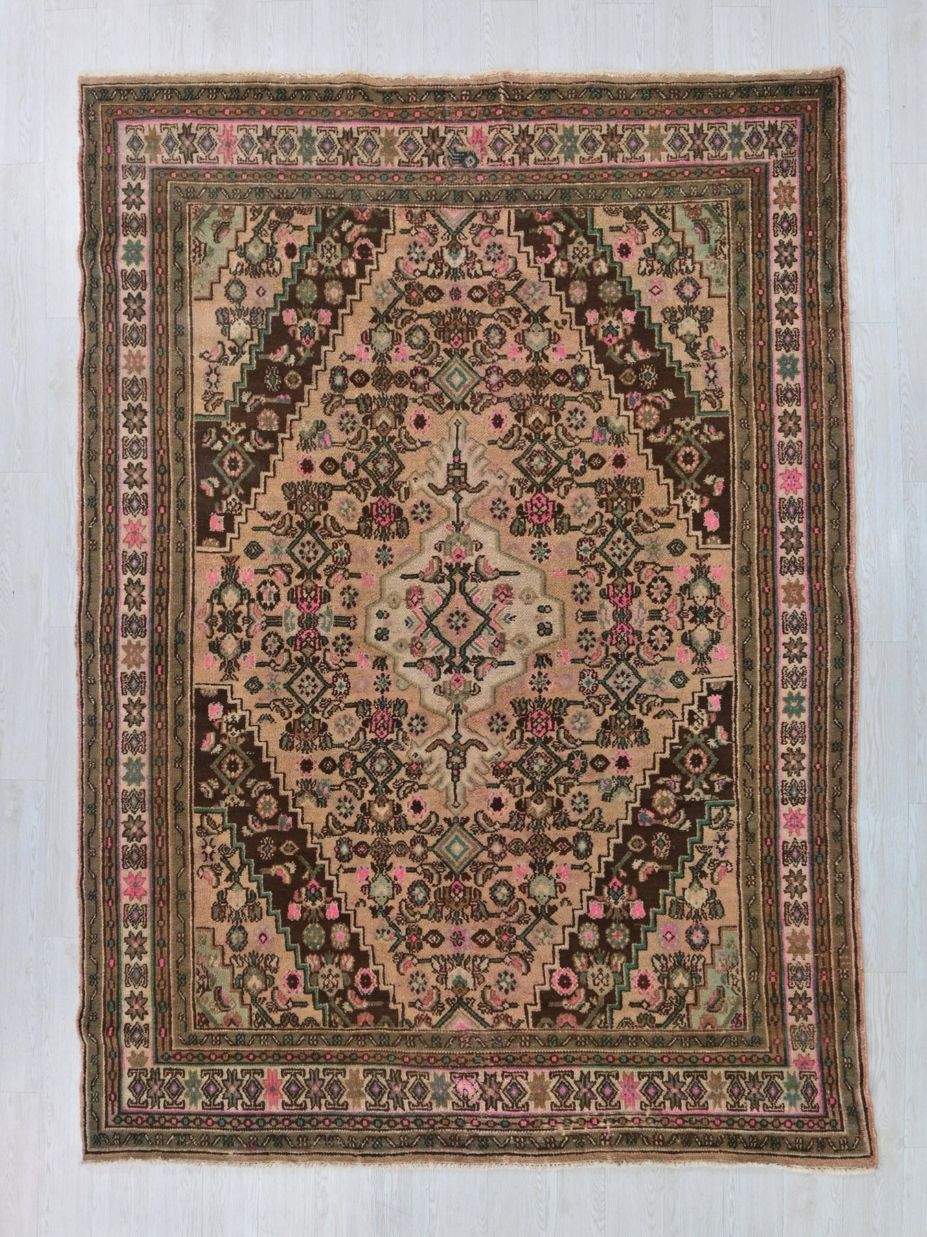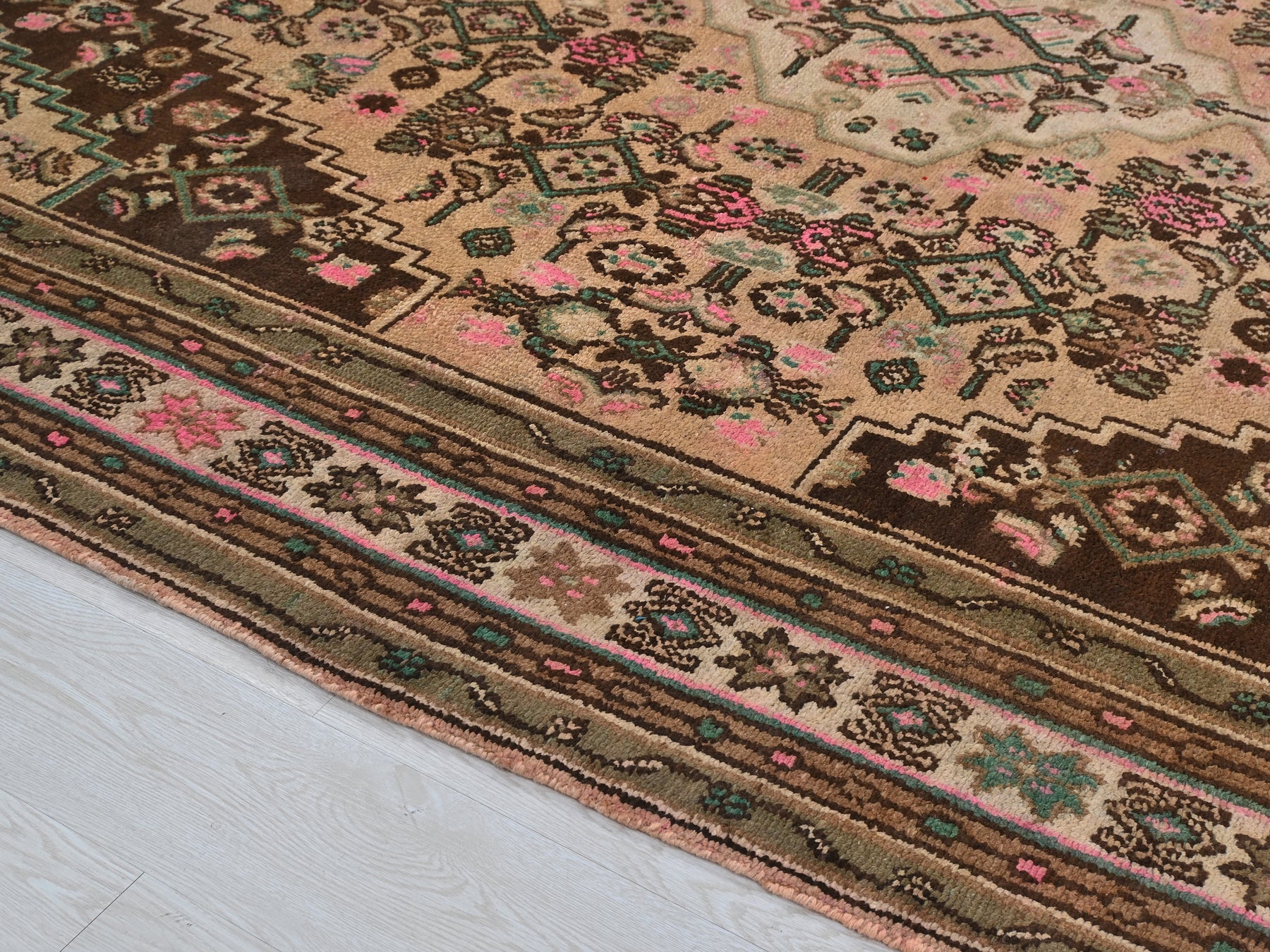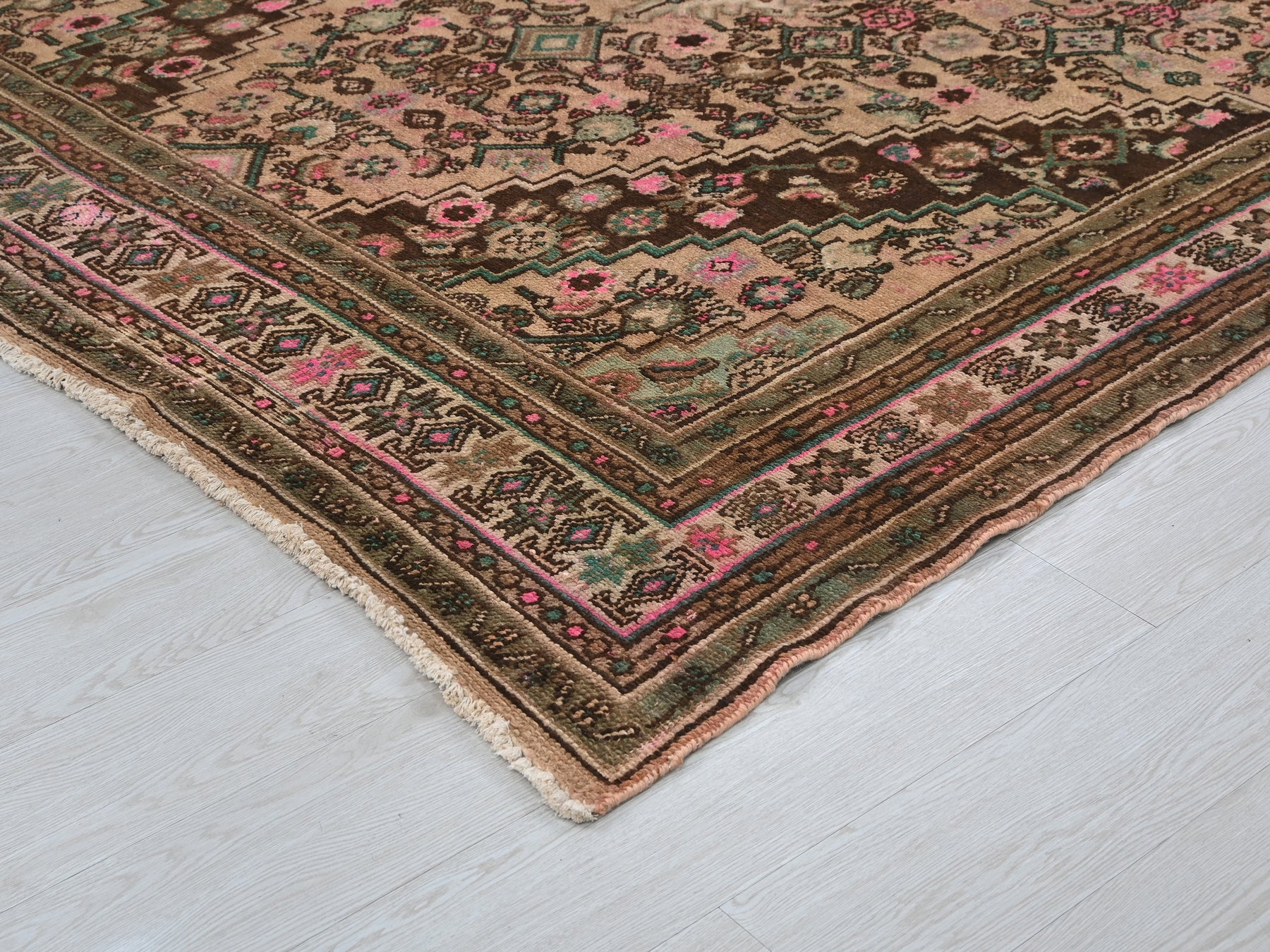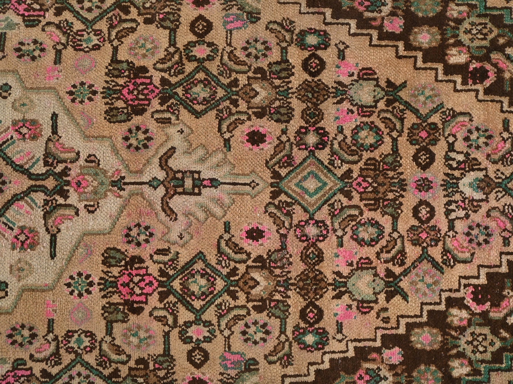 This is a hand-knotted, one-of-a-kind vintage rug. Due to the nature of this piece, there may be slight imperfections in its wear, shape, dimensions, and color. All of our rugs are professionally cleaned and repaired.