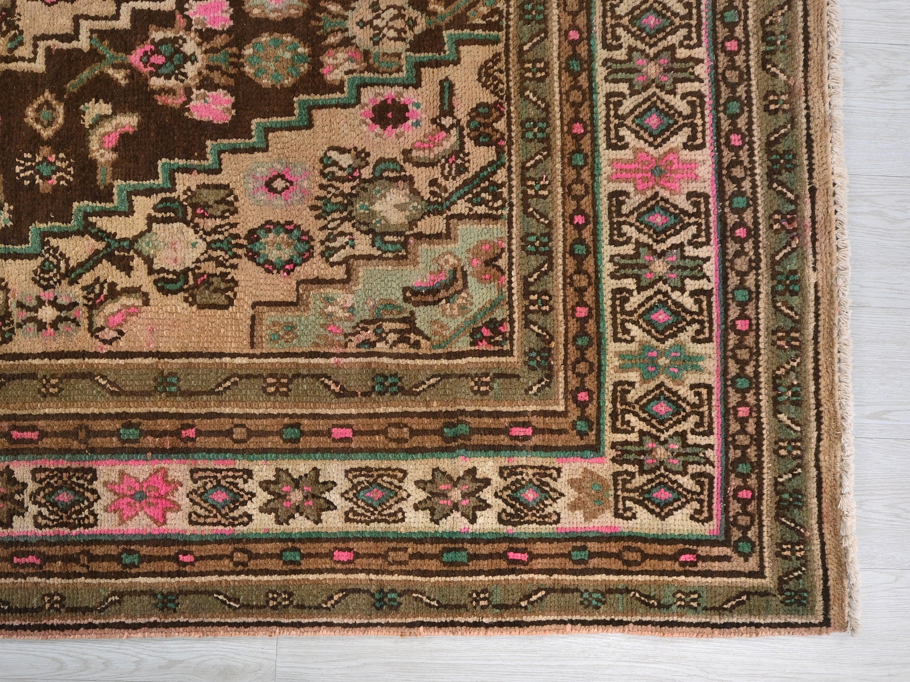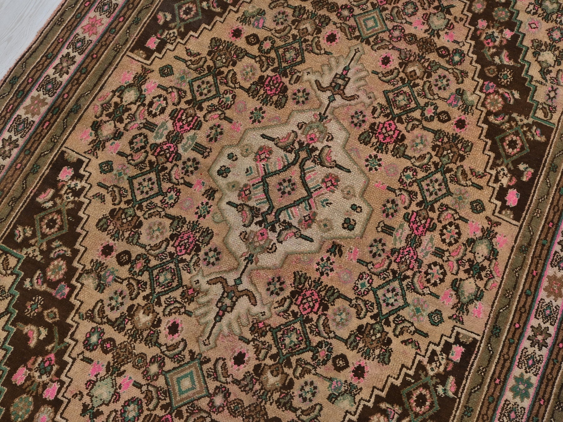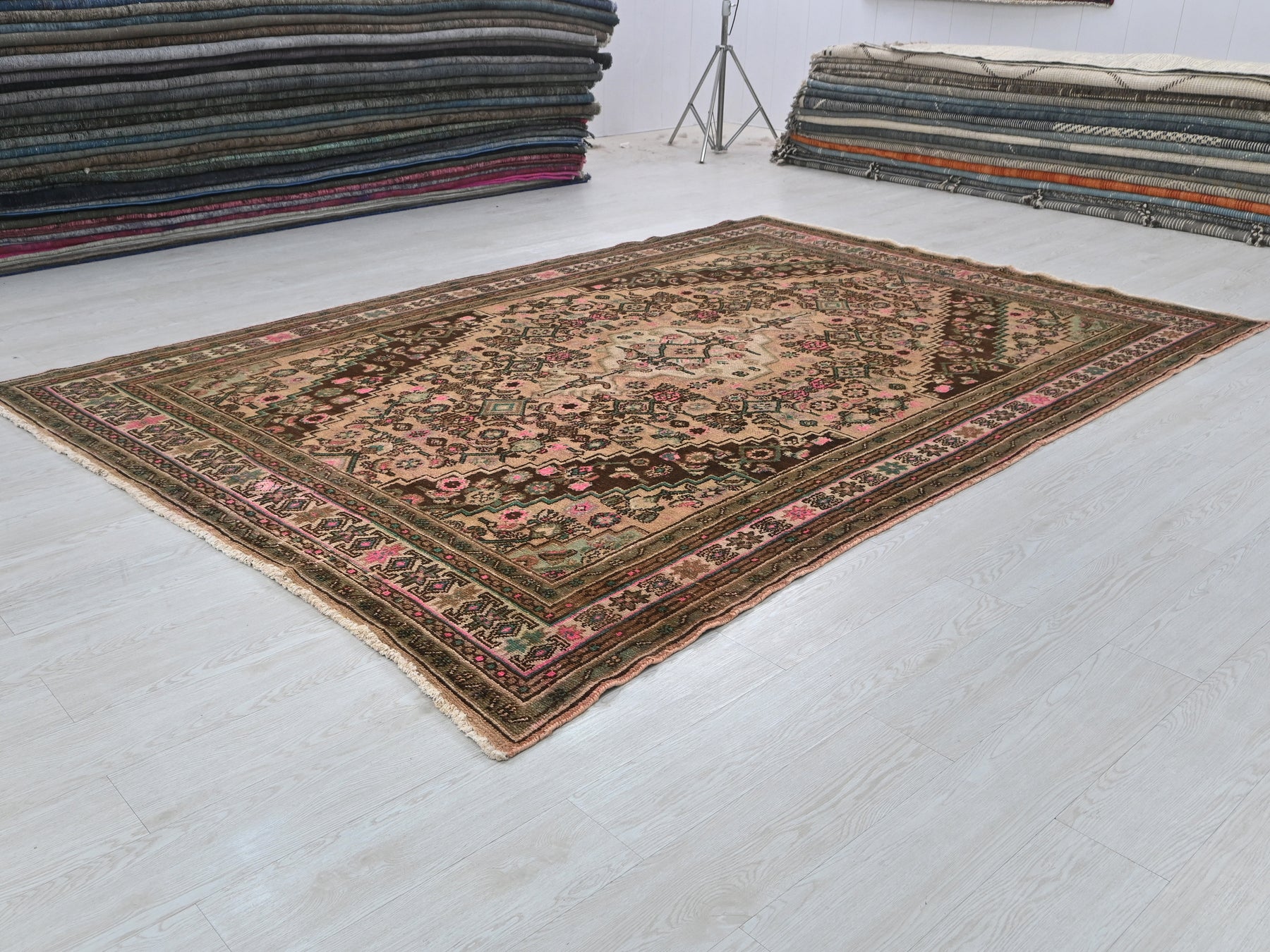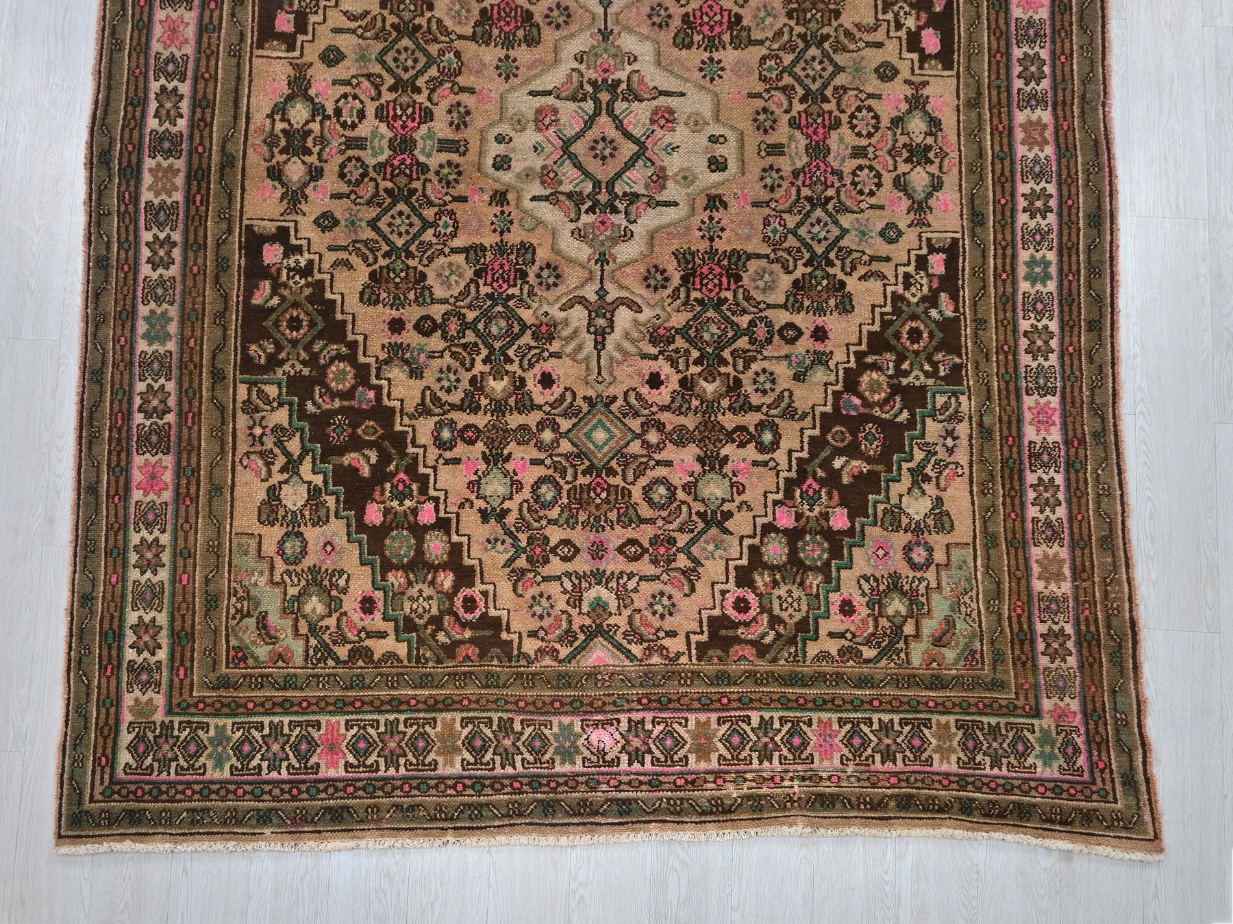 This is a hand-knotted, one-of-a-kind vintage rug. Due to the nature of this piece, there may be slight imperfections in its wear, shape, dimensions, and color. All of our rugs are professionally cleaned and repaired.