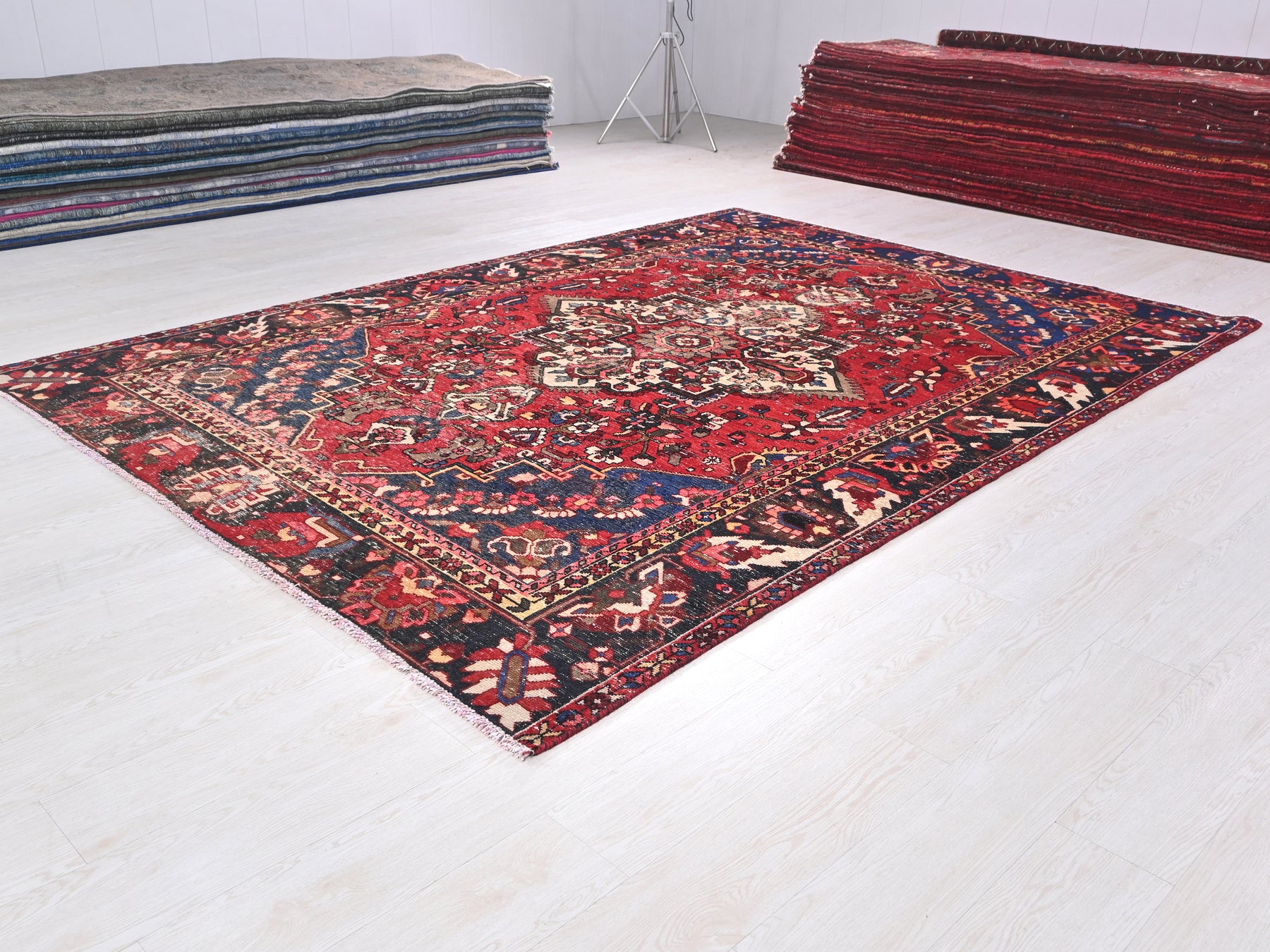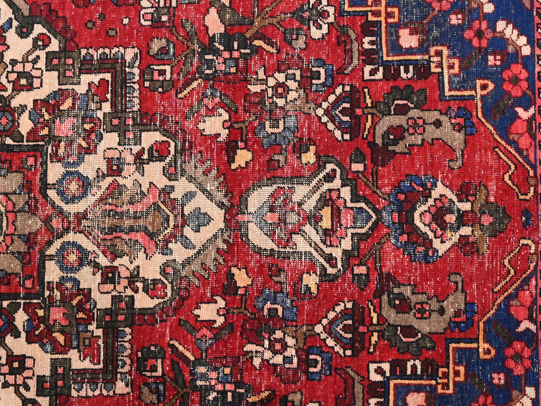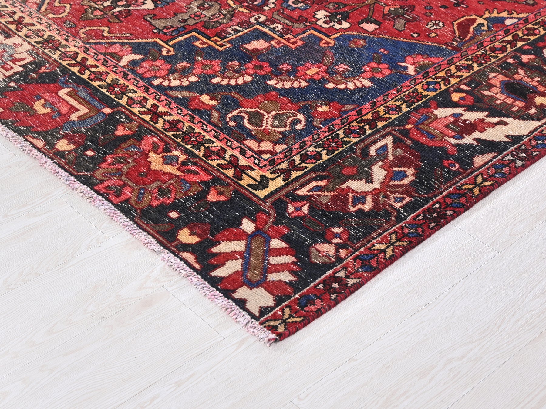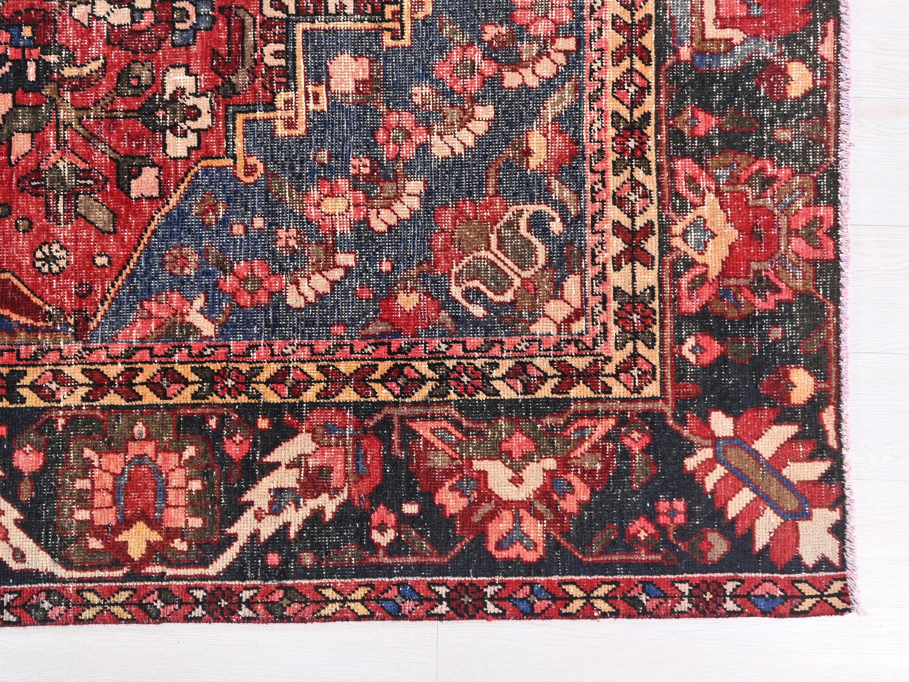 This is a hand-knotted, one-of-a-kind vintage rug. Due to the nature of this piece, there may be slight imperfections in its wear, shape, dimensions, and color. All of our rugs are professionally cleaned and repaired.