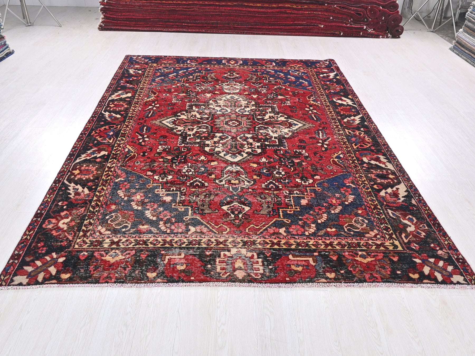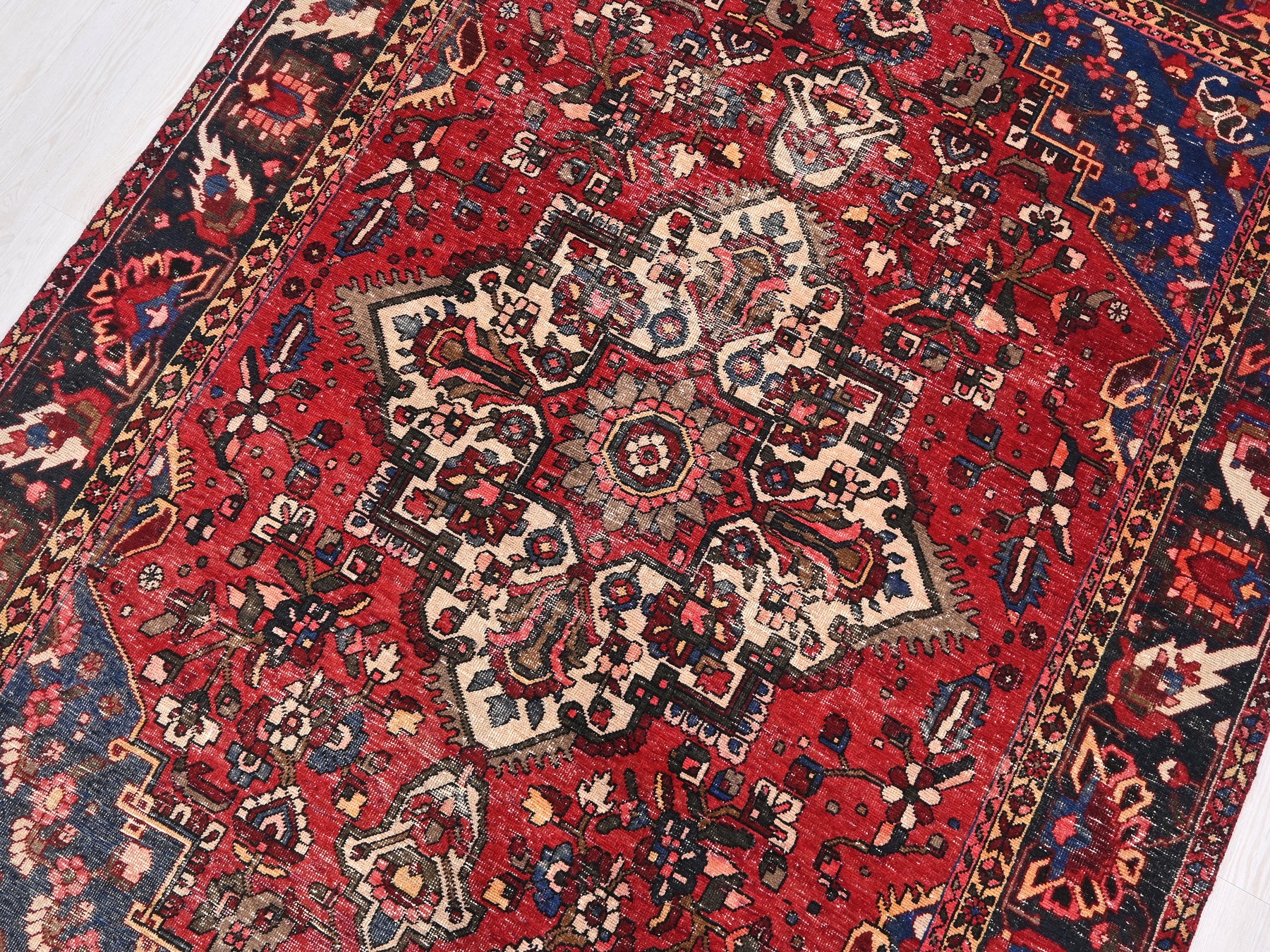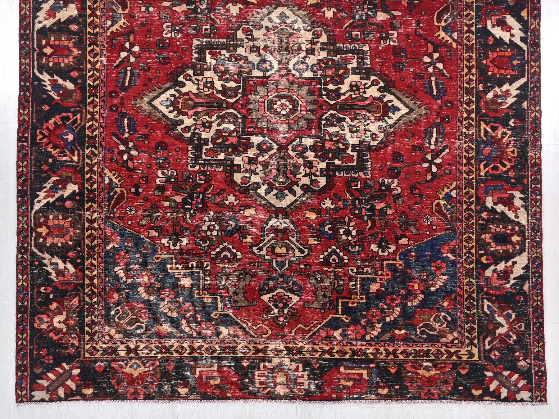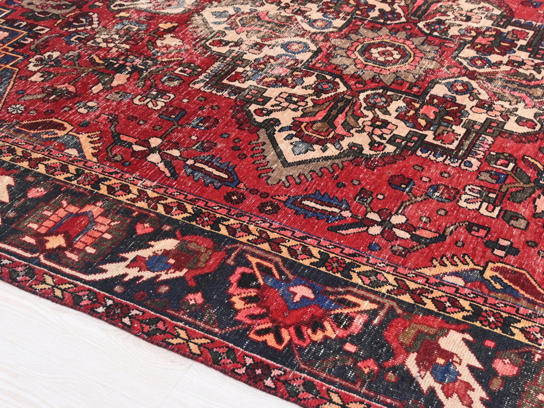 This is a hand-knotted, one-of-a-kind vintage rug. Due to the nature of this piece, there may be slight imperfections in its wear, shape, dimensions, and color. All of our rugs are professionally cleaned and repaired.