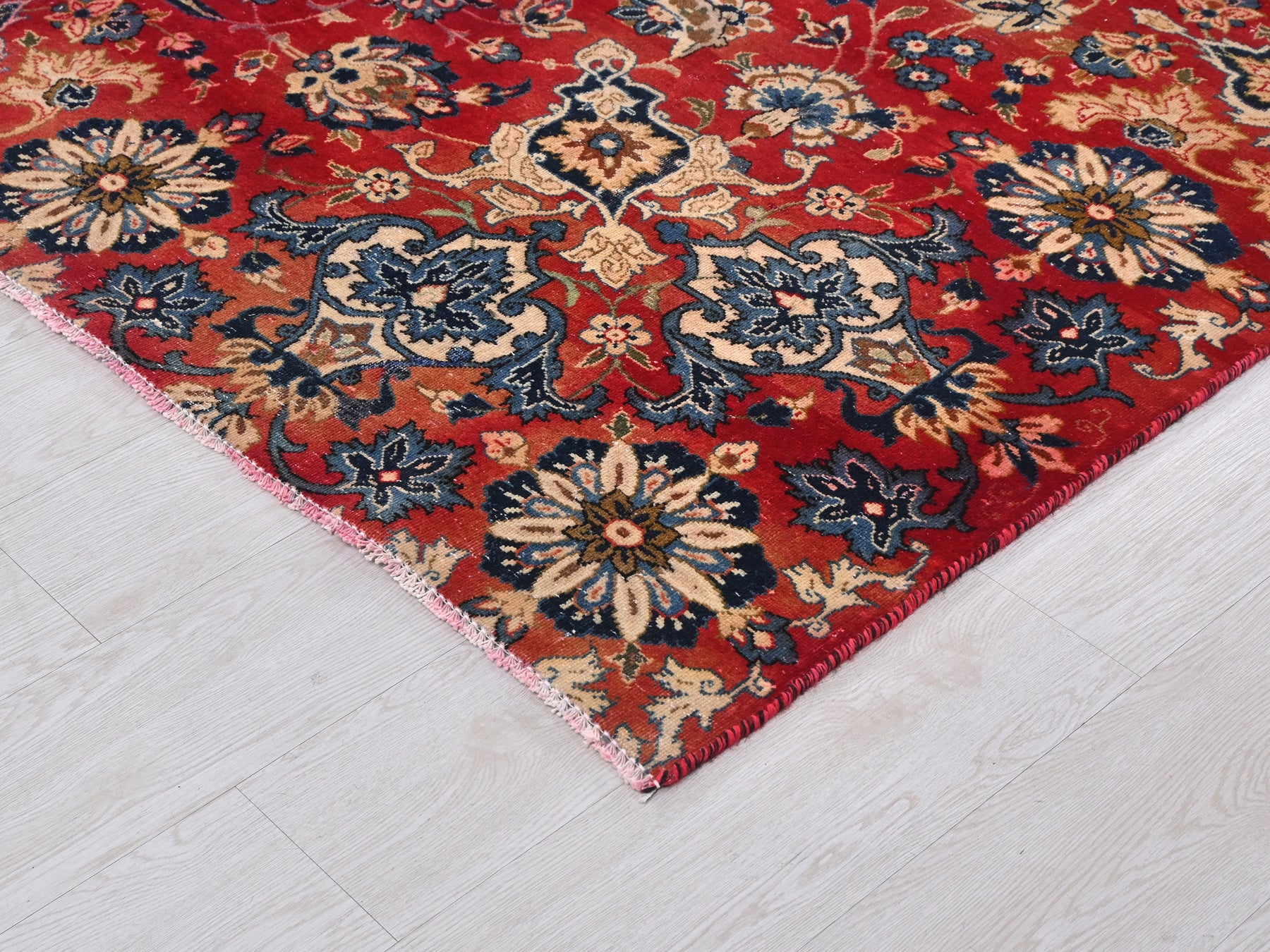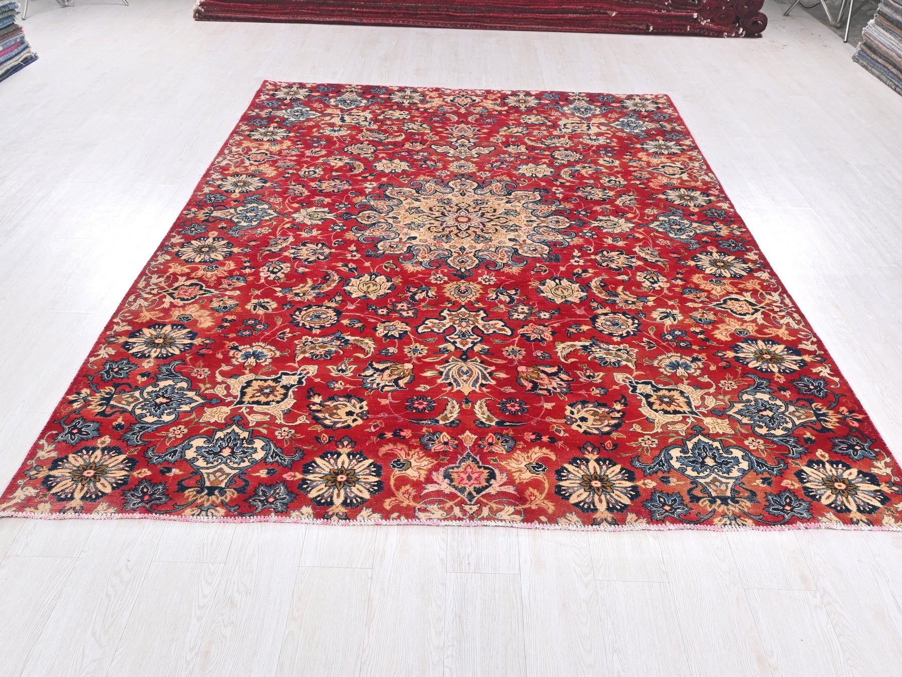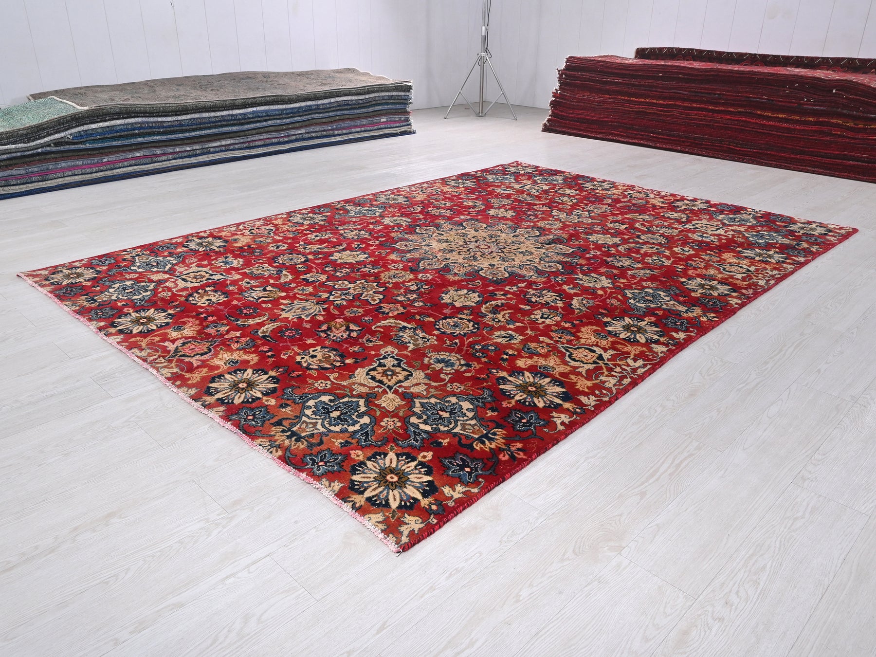 This is a hand-knotted, one-of-a-kind vintage rug. Due to the nature of this piece, there may be slight imperfections in its wear, shape, dimensions, and color. All of our rugs are professionally cleaned and repaired.