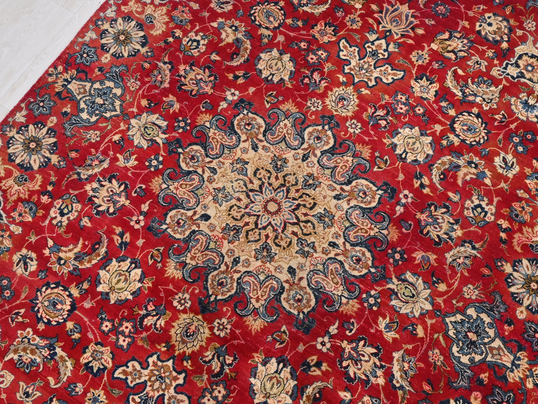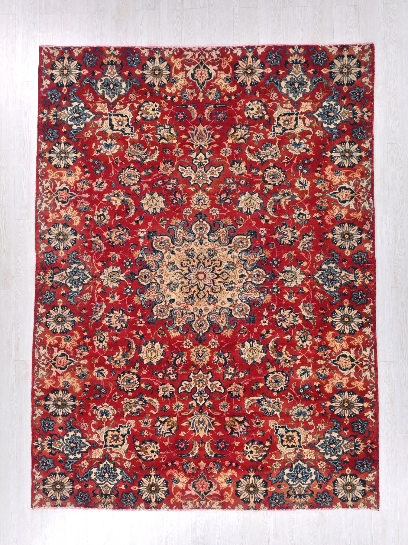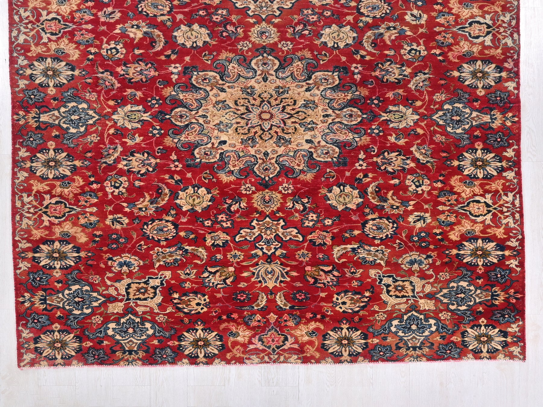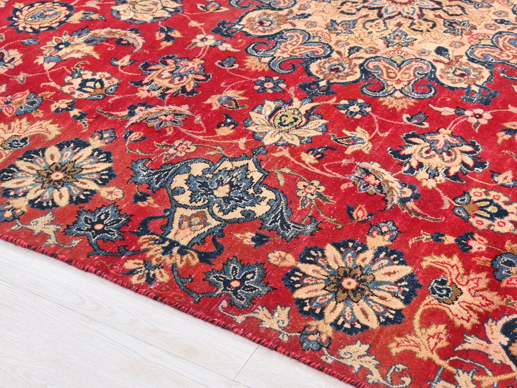 This is a hand-knotted, one-of-a-kind vintage rug. Due to the nature of this piece, there may be slight imperfections in its wear, shape, dimensions, and color. All of our rugs are professionally cleaned and repaired.
