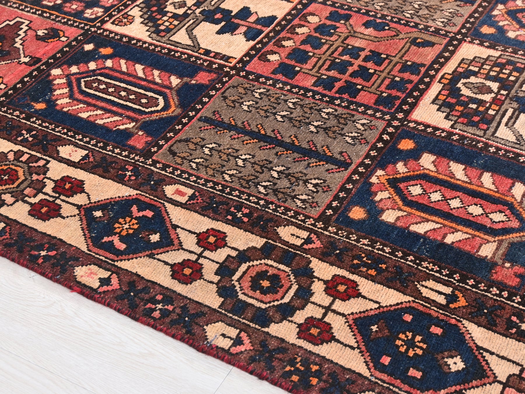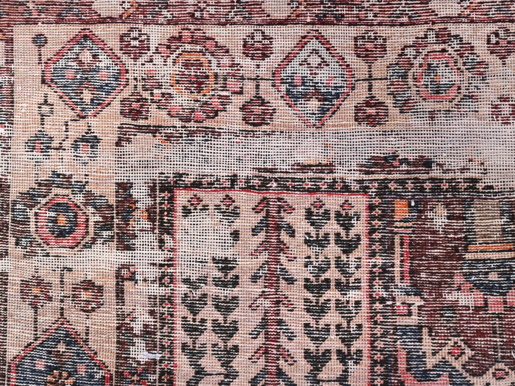 This is a hand-knotted, one-of-a-kind vintage rug. Due to the nature of this piece, there may be slight imperfections in its wear, shape, dimensions, and color. All of our rugs are professionally cleaned and repaired.